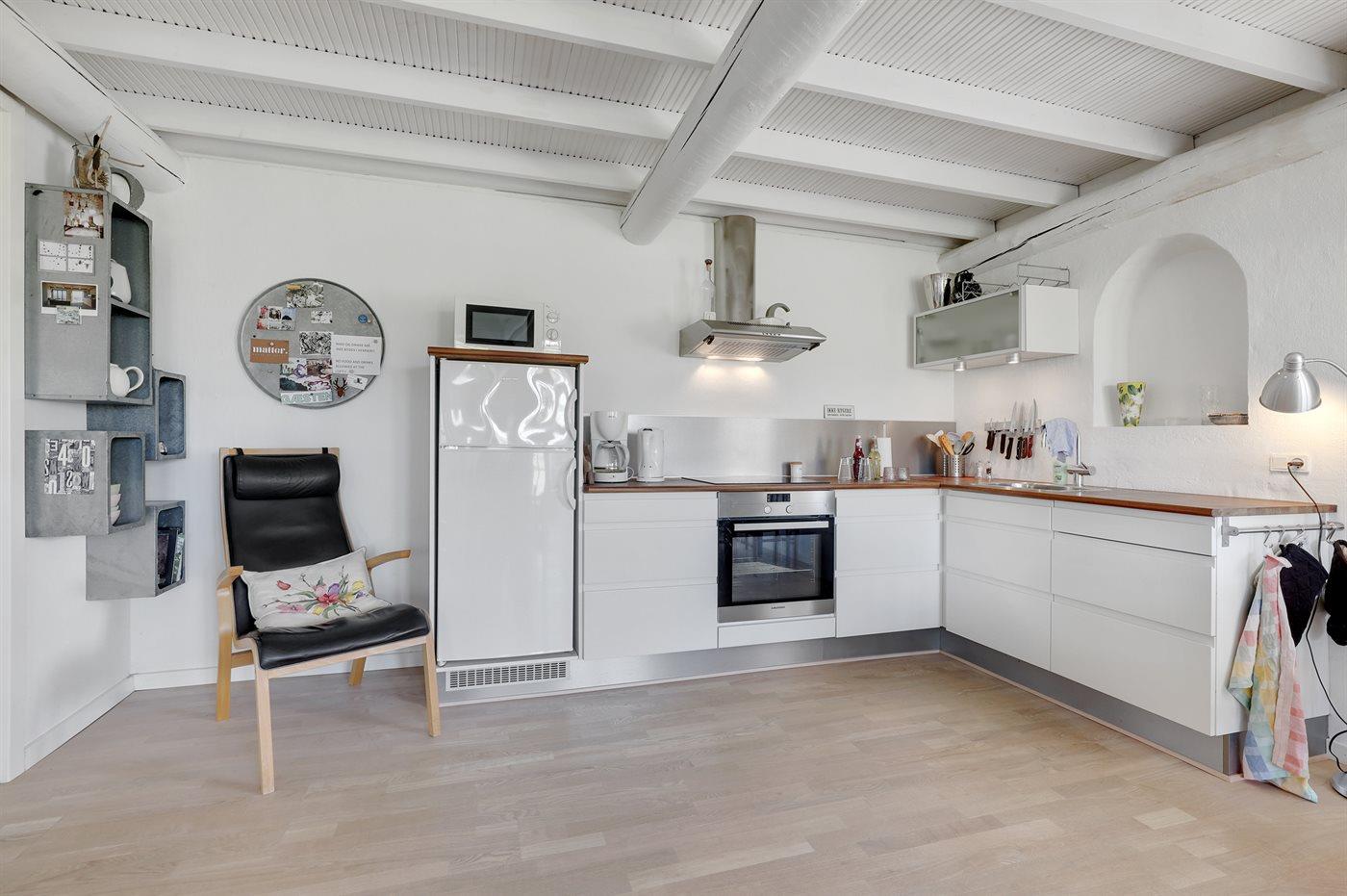 De keuken is uitgerust met koelkast Er is 4 inductiekookplaten, heteluchtoven, magnetron.