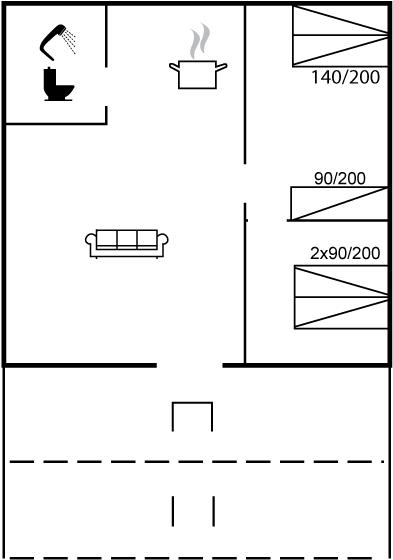 Er zijn in totaal 2 slaapkamers. De slaapplaatsen zijn als volgt verdeeld: 4 slaapplaatsen in tweepersoonsbedden.1 slaapplaats in eenpersoonsbed.