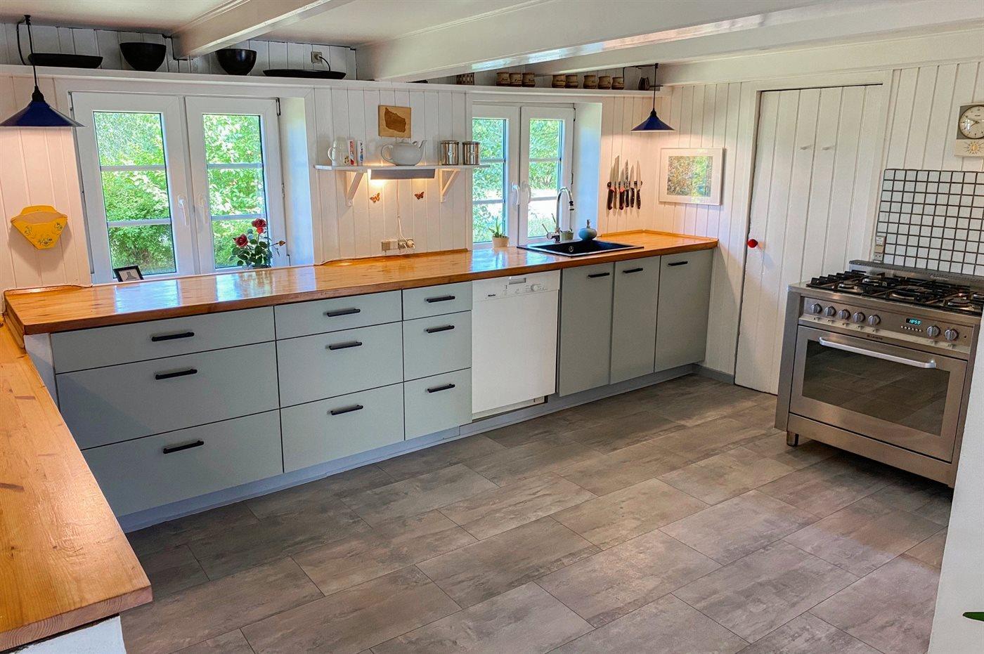 Authentieke, volledig gerenoveerde boerderij in Aakirkeby met moderne faciliteiten en ruime buitenruimte.