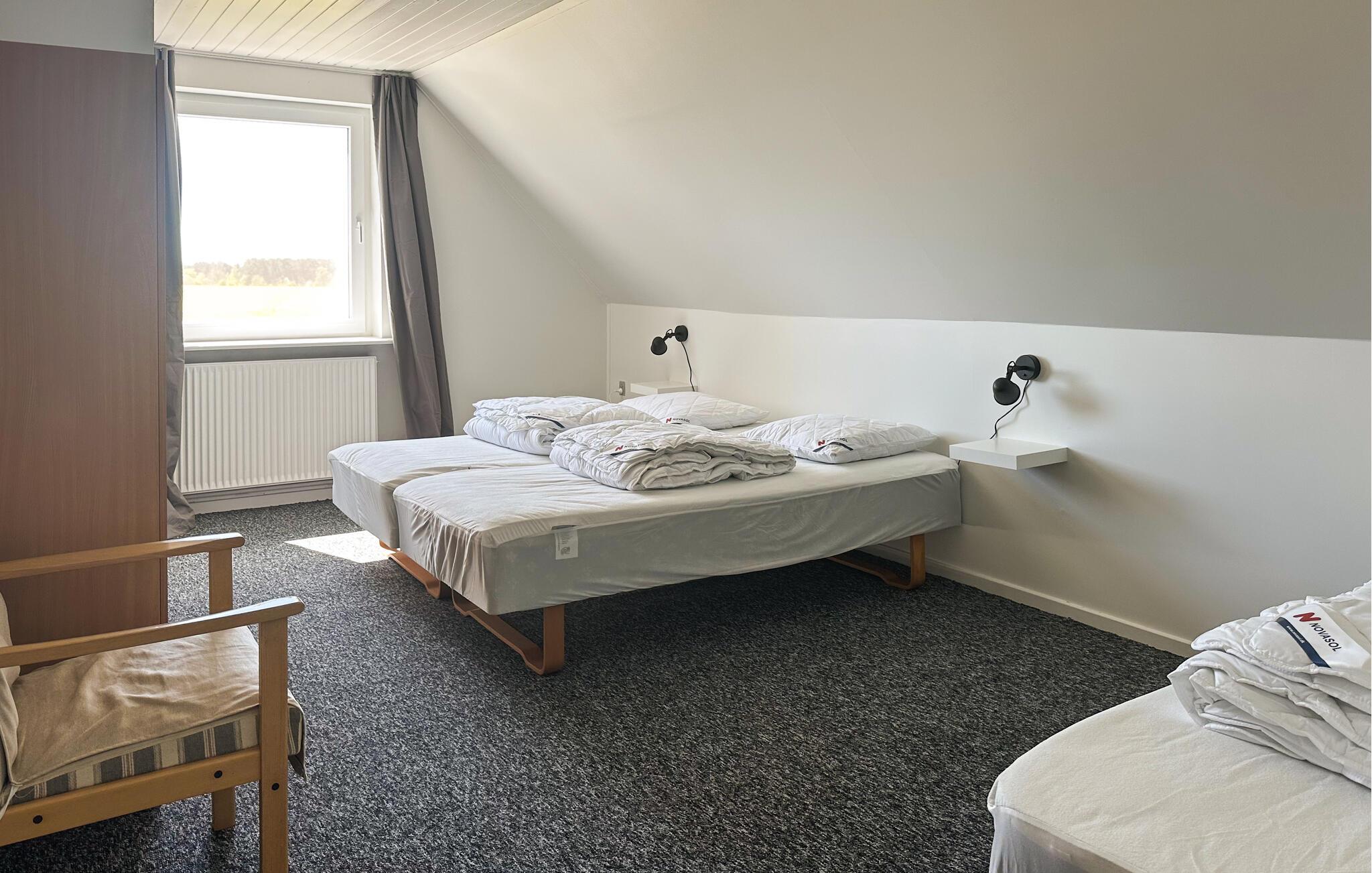 Rust, ontspanning en een echte vakantiesfeer wachten op je aan de zuidkust van Bornholm. Je vakantiehuis biedt genoeg ruimte voor een grotere groep. Hier kun je gezellig samenzijn of je opsplitsen in kleinere groepen. Of neem af en toe een pauze en trek je even terug. Dek samen de tafel voor het diner in de woonkamer en geniet van het uitzicht op de uitgestrekte velden. Later kun je samen een bordspel spelen of het jezelf gemakkelijk maken in de zacht gestoffeerde meubels.
