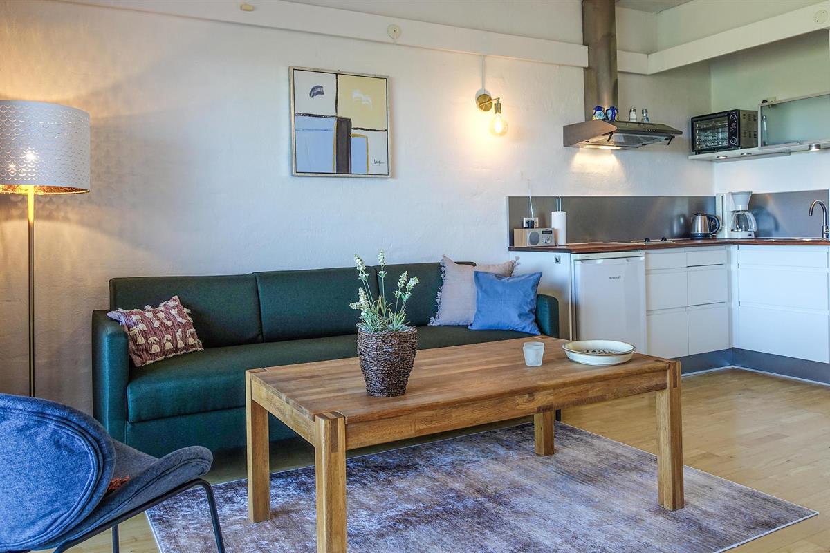 Direct naast de flat ligt het NaturBornholm belevingscentrum en op 4,5 km afstand vindt u prachtige zandstranden. De omgeving biedt geweldige wandelmogelijkheden, evenals plezier en spelletjes direct voor de deur. Naast bekende bezienswaardigheden als het Hammershus, Dueodde Strand, de ronde kerk van Østerlars, het Echodal (Ekkodalen), de kliffen Helligdomsklipperne en andere, heeft Bornholm nog ongelooflijk veel te bieden. Huur fietsen en verken de prachtige en fascinerende natuur van het eiland. Stop bij een haven of strand en geniet van een Krølle-Bølle-ijsje, genoemd naar de nationale eilandtrol. Bornholm staat ook bekend om zijn unieke keramiek en glaskunst, die u kunt bewonderen en kopen in de vele mooie winkels op het hele eiland.