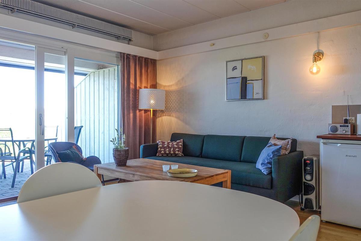 Deze mooie flat is geschikt voor maximaal 4 gasten dankzij een slaapkamer met een tweepersoonsbed en een tweepersoonsslaapbank van 140 cm in de woonkamer. De flat maakt deel uit van het vakantiecomplex Dams på Bakken, dat onder andere een groot buitenzwembad met een ondiep gedeelte, een grote trampoline, schommels, zandbak, kampvuurplaats, jeu de boulesbaan en een voetbalveld biedt. De woonkamer heeft een smart-tv met Chromecast, radio/Bluetooth en toegang tot een gedeeltelijk overdekt terras met tuinmeubilair waar u kunt ontspannen. De open keuken van de flat is uitgerust met onder andere een mini-oven, een elektrische kookplaat (2 platen), een afzuigkap en een eethoek. In de badkamer bevindt het bad zich direct onder de douche.