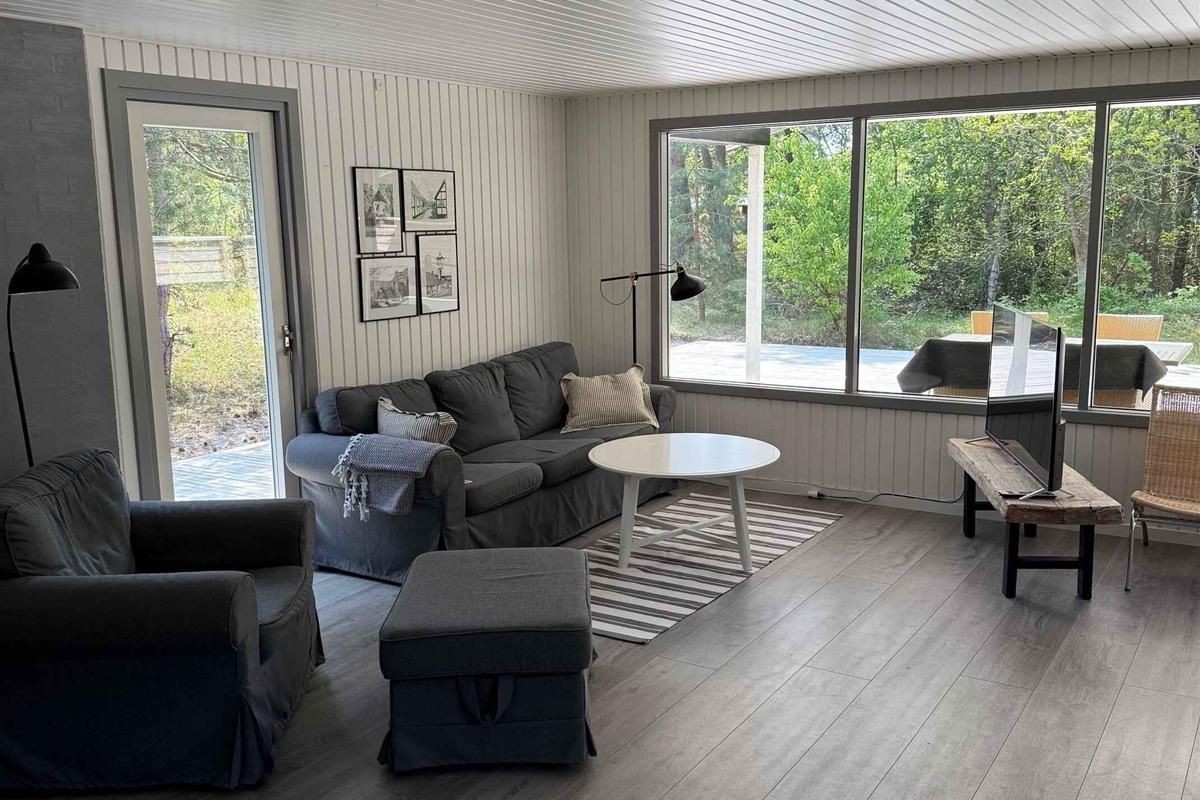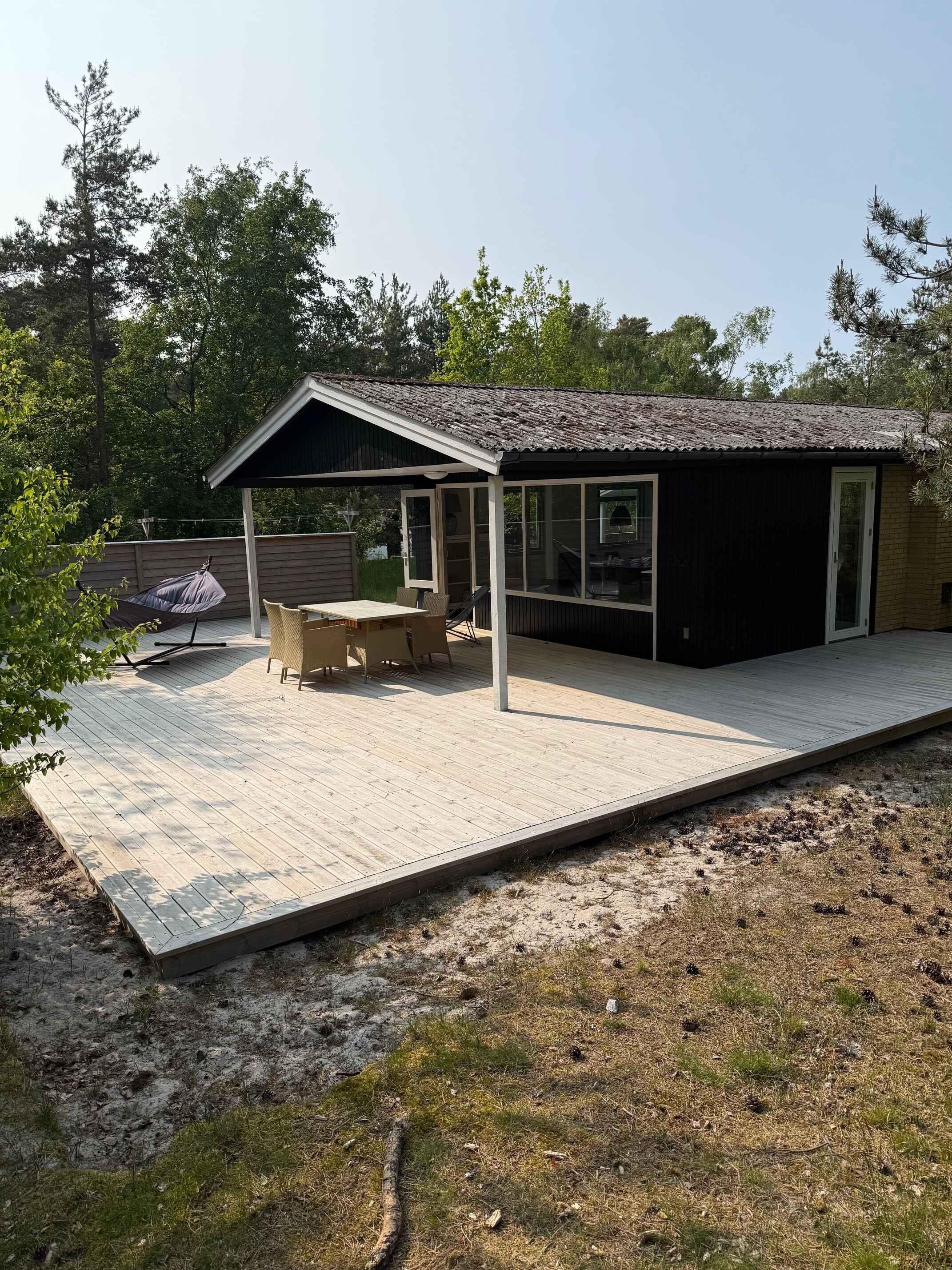 Indbydende og charmerende sommerhus med en rolig beliggenhed på en skovklædt naturgrund, kun 200 meter fra en skøn og børnevenlig sandstrand. Husets hjerte er den hyggelige opholdsstue, som ligger i åben forbindelse til det lille køkken, således at feriekokken/kokkene kan holdes med selskab mens maden tilberedes. Stuen er udstyret med komfortable møbler at slænge sig i, en spiseplads samt et TV til hyggelige filmaftener. Fra stuen er der udgang til en delvist overdækket, stor træterrasse. Her finder I en dejlig spiseplads i skyggen samt liggestole til solbadning. I har også en grill til rådighed, så I kan tilberede lækre grillretter. I haven er der gynger til børnenes underholdning og god plads til leg og aktiviteter som fx dåseskjul. Sommerhuset ligger kun 250 meter til den fantastiske Restaurant Kadeau, og en kort gåtur fører jer til en dejlig, børnevenlig sandstrand, hvilket gør sommerhuset ideelt som base til en strandferie. Men selvom I har et skønt sommerhus i et populært sommerhusområde med alt inden for kort rækkevidde, så kan det kraftigt anbefales at tage rundt på øen med bil eller cykler og opleve nogle af hovedattraktionerne som Hammershus, Dueodde Strand, Østerlars rundkirke, Ekkodalen eller Helligdomsklipperne, samt nogle af dens ekstremt charmerende byer såsom Aakirkeby, Snogebæk og Svaneke. Nyd en afslappende og oplevelsesrig ferie med base i dette skønne, strandnære sommerhus.