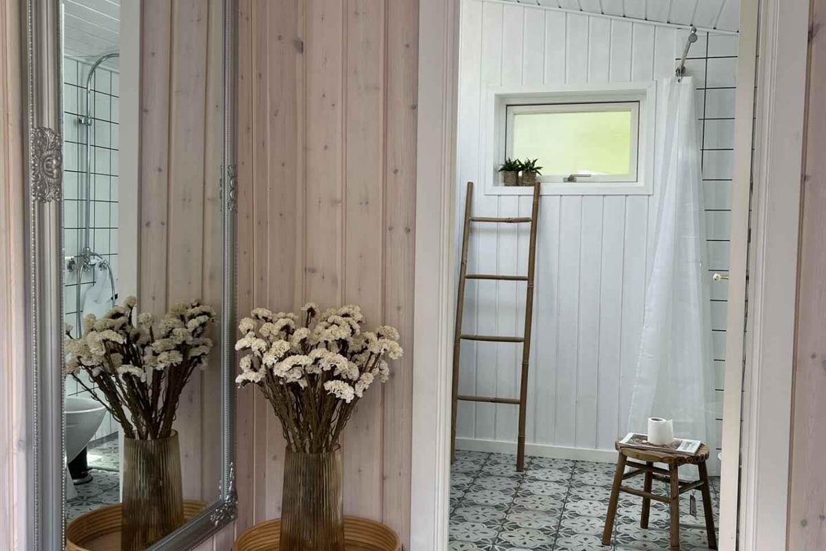 Welkom in dit betoverende zomerhuis op Bornholm, dat in het voorjaar van 2022 een uitgebreide renovatie onderging en nu verschijnt als een glimmende nieuwe oase. Dit charmante toevluchtsoord biedt een oase van comfort. Een elegante slaapkamer met een uitnodigend tweepersoonsbed en een knusse kamer met een stapelbed zijn ideaal voor zowel volwassenen als kinderen. Verheug u op twee met elkaar verbonden woonkamers, waar een ontspannen woonkamer u verleidt met een luxe 3-zitsbank, knusse stoelen en een indrukwekkende 55-inch smart-tv voor entertainment. De nabijgelegen eetkamer lokt met zonlicht en directe toegang tot het nieuw gebouwde houten terras. Hier vindt u een idyllisch toevluchtsoord, waar tuinmeubelen, ligbedden, een uitnodigende buitenhaard en een houtskoolgrill u uitnodigen voor lange avonden en gezellige bijeenkomsten. De badkamer straalt praktische elegantie uit, ook al is hij compact - hier is alles wat u nodig heeft binnen handbereik. Met een plafondhoogte van ongeveer 180 cm voelt u zich veilig en ontspannen in deze goed ingerichte kamer. Het nieuw geplaatste toilet, douche en wastafel zijn zowel functioneel als modern. Ervaar unieke natuurlijke schoonheid, want het zomerhuis is gehuld in een royaal bosperceel van 2500 m2. U bevindt zich op slechts 300 meter van het adembenemende badstrand, dat uitnodigt tot zonnige dagen en verfrissende duiksessies. Als u afwisseling wilt, liggen Bakkarøgeriet en de golfbaan Nexø op slechts 1,5 kilometer afstand. Om aan uw winkelbehoeften te voldoen, ligt Pedersker Brugs op slechts 3 kilometer afstand. En niet in de laatste plaats, de geneugten van de gastronomie wachten op u, want het beroemde Kadeau ligt ook op korte afstand. Trek u terug in dit prachtige zomerhuis, waar modern comfort de wilde schoonheid van Bornholm ontmoet. Direct voor de deur wacht een wereld van opwindende ervaringen, dus omarm het beste van zowel de natuur als de cultuur op deze fantastische bestemming.