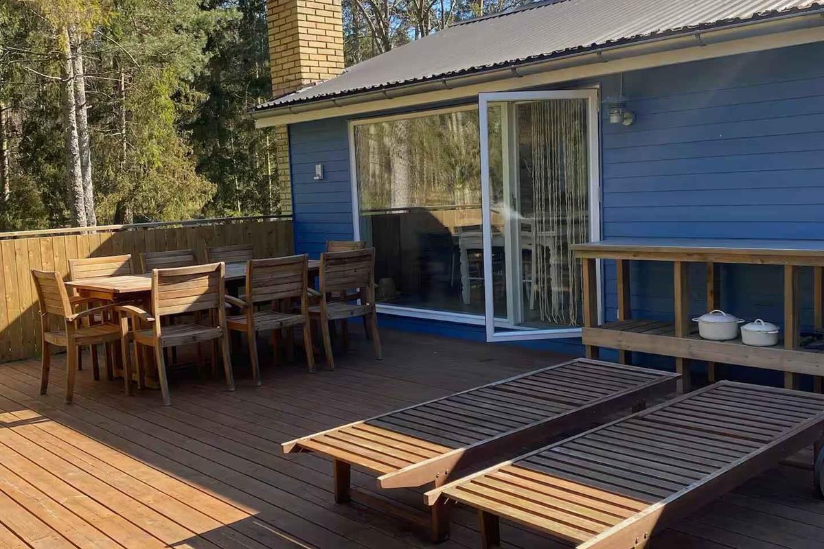 Modern gerenoveerd zomerhuis op Bornholm, dichtbij strand en natuur, met luxe voorzieningen en gezellige buitenruimte.