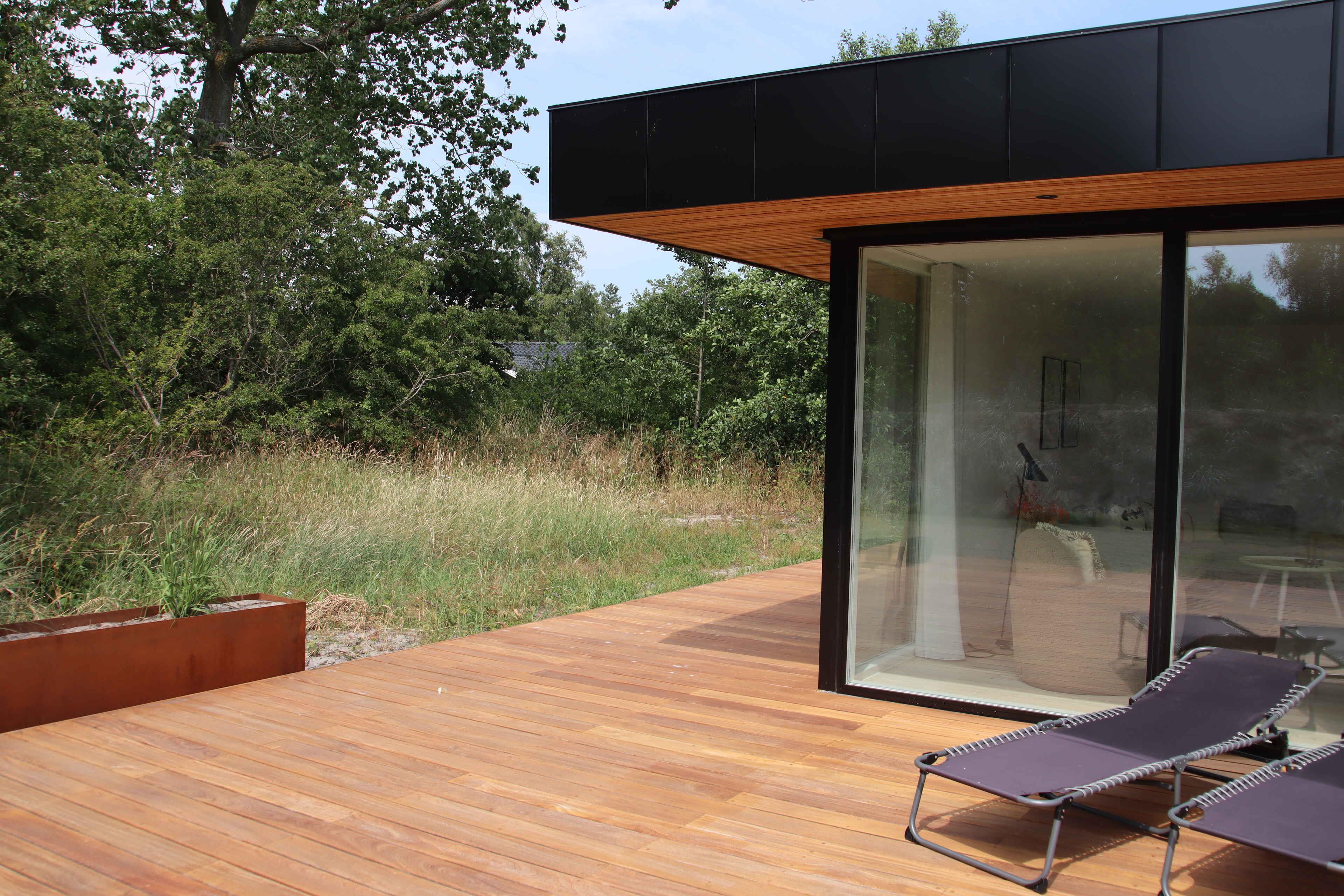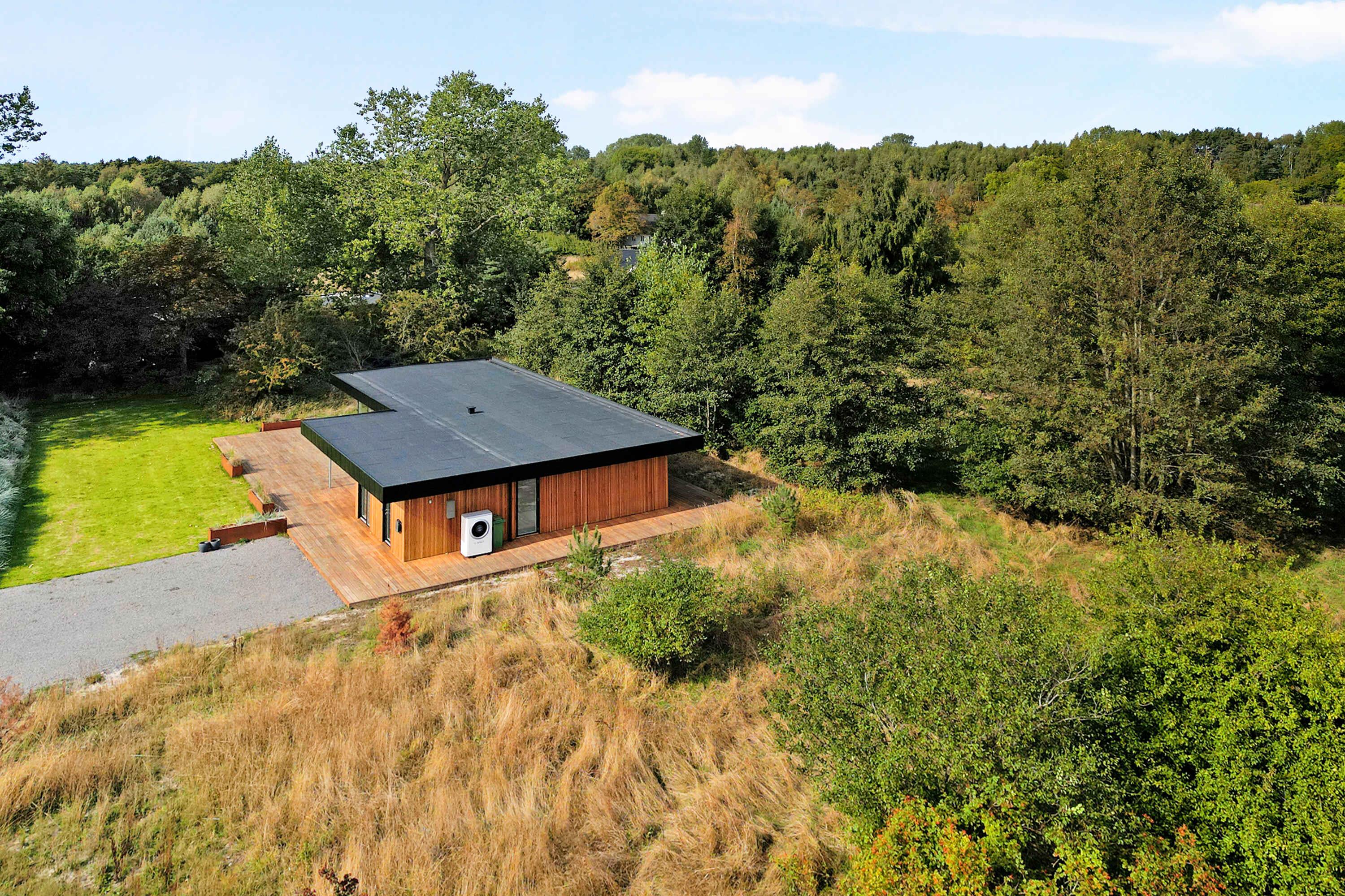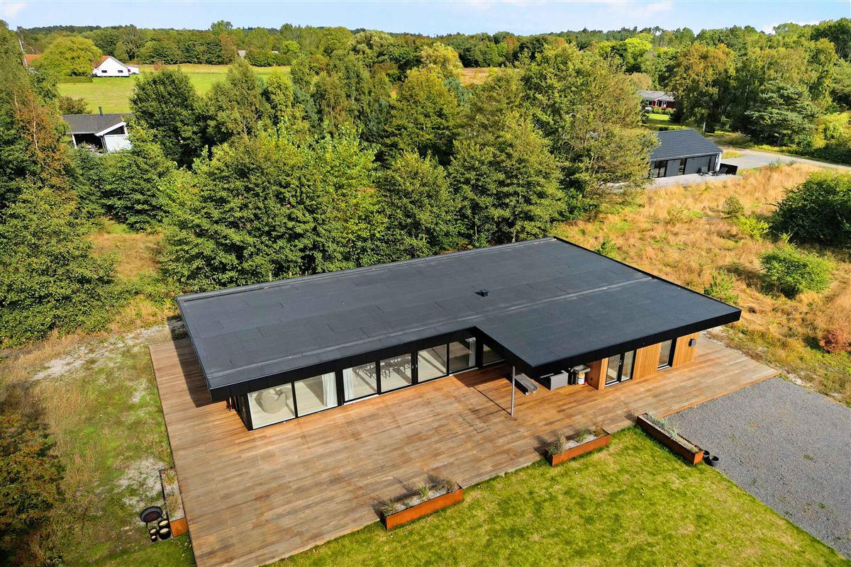 Modern vakantiehuis op Bornholm nabij strand met luxe voorzieningen en grote terrassen.