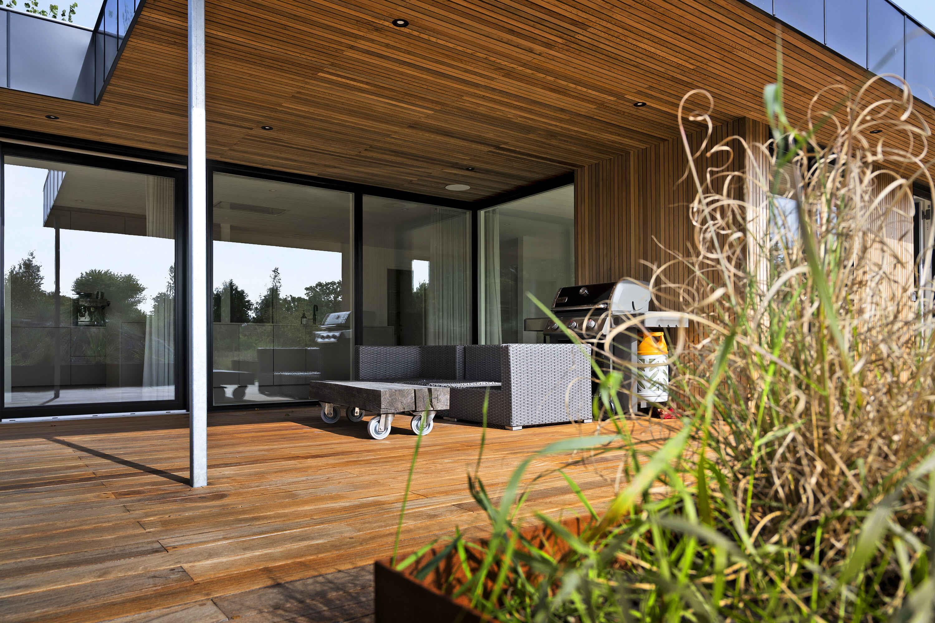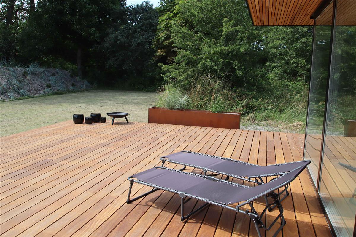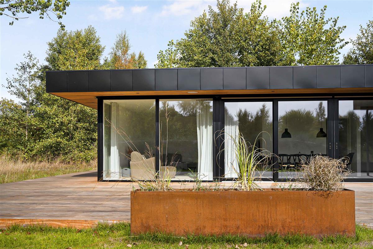 Modern vakantiehuis op Bornholm nabij strand met luxe voorzieningen en grote terrassen.