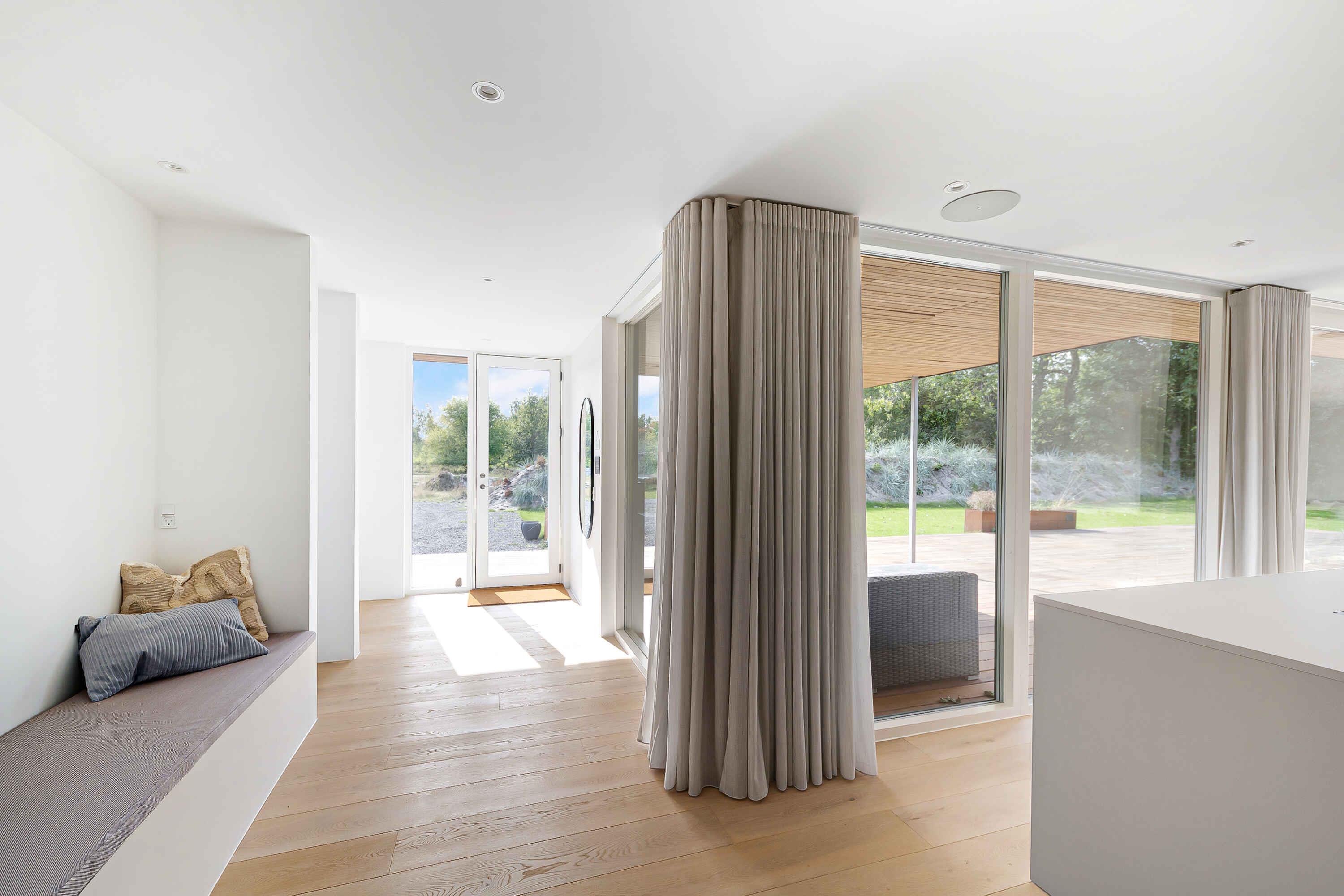 Welkom in dit moderne vakantiehuis op het prachtige eiland Bornholm, waar rust en comfort worden gecombineerd op een prachtige locatie. Stap binnen en ervaar het gevoel thuis te zijn in deze lichte ruimte, waar kamerhoge ramen de natuur binnenlaten als onderdeel van uw vakantie-ervaring. Deze oase is voorzien van moderne techniek, waaronder vloerverwarming met een energiezuinige warmtepomp die op die warme dagen zelfs voor een verkoelend briesje kan zorgen. Het interieur is ontworpen met een luxueuze mentaliteit die u omhult met comfort en elegantie. Met vier slaapkamers, elk met een eigen uitgang naar het omliggende terras, is er een prachtige verbinding tussen binnen- en buitenruimtes. Gebruik de elektrische oplader voor uw voertuig en laat hem opladen terwijl u uw batterijen oplaadt tijdens de vakantie. Praktische voorzieningen zoals een wasmachine en droger zijn natuurlijk aanwezig, zodat je in alle vrijheid kunt genieten van alles wat je nodig hebt. De moderne keuken is voorzien van voorzieningen die uitnodigen om met het hele gezin samen te koken, dankzij het grote keukenblok dat ruimte biedt aan iedereen. Twee van de tweepersoonsbedden zijn 180x200 cm en de andere twee zijn 140x200 cm. Maar op het grote, gedeeltelijk overdekte terras op het zuiden wachten de meest ontspannende momenten. Hier kunt u heerlijke avonden doorbrengen terwijl u geniet van de geluiden van de natuur en de geur van een heerlijke barbecue van de grote Weber gasgrill. Het loungemeubilair nodigt u uit om te ontspannen onder de blote hemel, waar u zich kunt onderdompelen in gesprekken en vallende sterren. En wanneer u de drang voelt om de omgeving te verkennen, wachten de vele ervaringsmogelijkheden van Bornholm op u. Bezoek de charmante stadjes, verken de dramatische kustlijnen en ontdek de culturele schatten van het eiland. Ga wandelen in de ongerepte natuur of bezoek de lokale markten om de lekkernijen van het eiland te proeven. Dit vakantiehuis is meer dan alleen een plek om te verblijven - het is het startpunt voor een onvergetelijke vakantie-ervaring op Bornholm. Let op: Niet te huur voor commercieel gebruik.