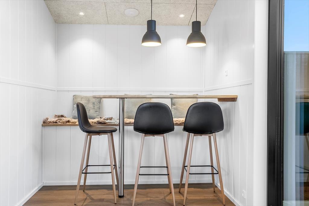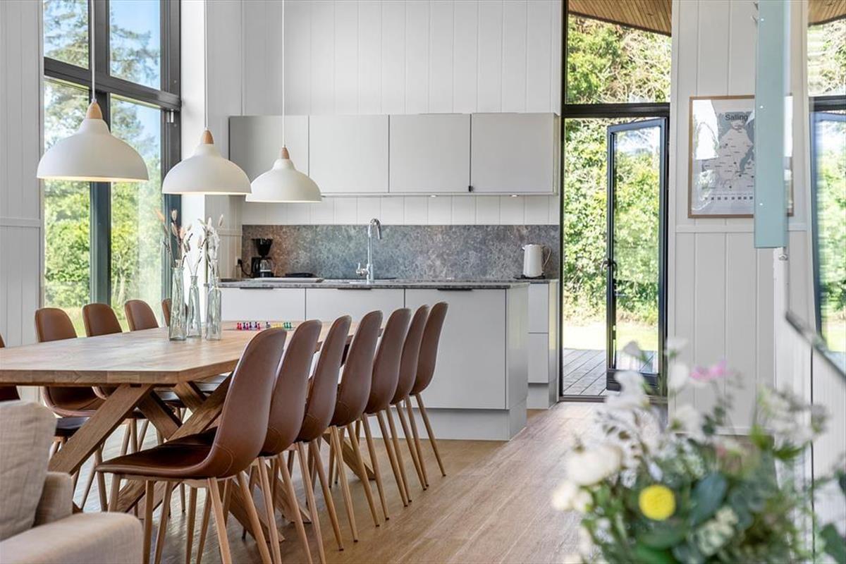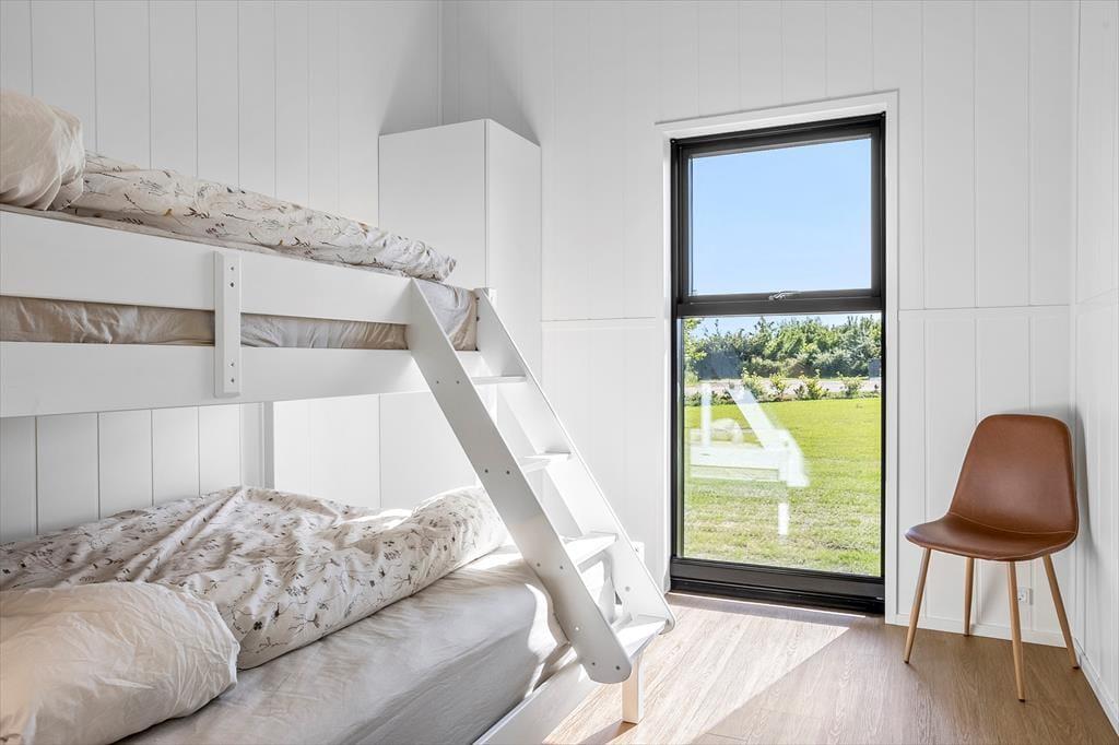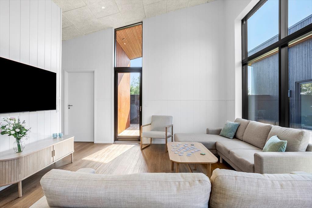 Nur 500 Meter vom Strand entfernt, ist es ein Leichtes, den Morgenkaffee mit ans Wasser zu nehmen oder den ganzen Tag mit Sand zwischen den Zehen und Salz im Haar zu verbringen. Süd-Salling bietet eine Vielzahl an Naturerlebnissen, kleinen gemütlichen Häfen und schönen Ausflugszielen – und ganz gleich, ob ihr Lust auf Radtouren durch die hügelige Landschaft habt, auf Eiswaffeln unter freiem Himmel oder einen stillen Abend am Fjord – hier werdet ihr fündig. Der Strand lädt zu Badefreuden und Entspannung ein, und die Gegend rund um Mølleparken ist ruhig und familienfreundlich. Wenn ihr davon träumt, gemeinsam mit Familie oder Freunden Urlaub zu machen, solltet ihr wissen, dass sich direkt nebenan ein identisches Ferienhaus befindet. Wenn ihr beide Häuser bucht, bekommt ihr die perfekte Kombination aus Gemeinschaft und Privatsphäre – ideal für alle, die zusammen sein möchten und sich dennoch auch mal zurückziehen wollen.