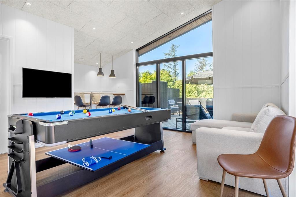 Träumst du davon, die ganze Familie – oder vielleicht ein befreundetes Paar – in einem modernen, komfortablen Rahmen mit Wellness, Trampolin und kurzer Entfernung zum Strand zu versammeln? Dann wirf einen Blick auf dieses neu gebaute Ferienhaus in der Mølleparken 15. Hier erwartet dich ein Urlaub voller Entspannung, Spiel und gemeinsamer Zeit inmitten der wunderschönen Natur Süd-Sallings – und mit Platz für Groß und Klein lassen sich mühelos gemeinsame Erinnerungen schaffen.