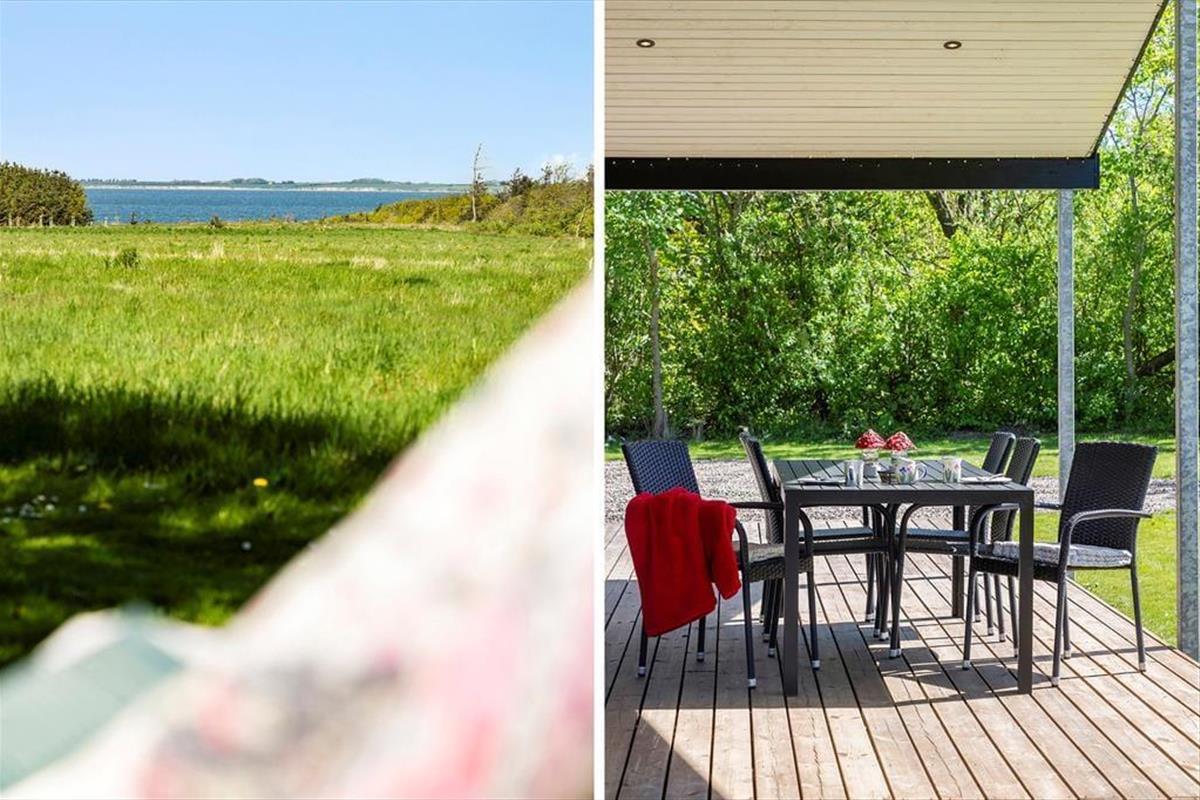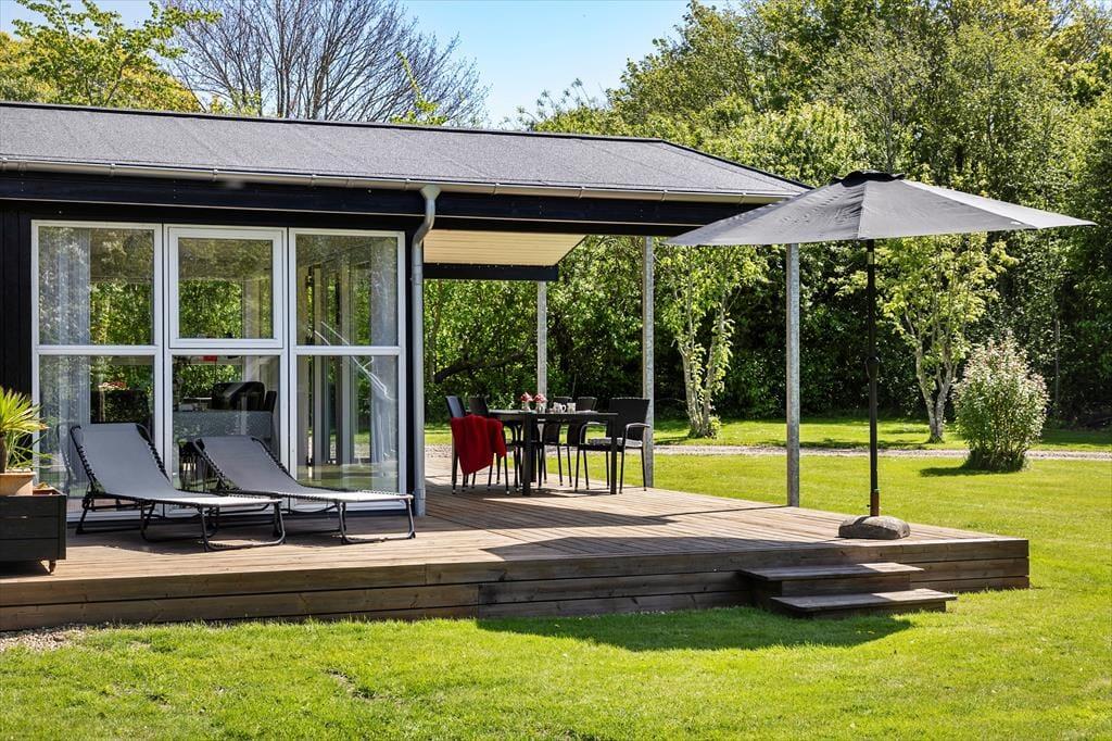 Vom Wohnraum und vom Wintergarten gelangen Sie direkt hinaus auf eine große und teilweise überdachtes Terrassenareal, das sich in östliche, südliche und westliche Richtung an das Urlaubsdomizil schmiegt. Gen Norden lockt eine kleinere Terrasse. Somit werden Sie - unabhängig von der Tageszeit und ganz nach persönlicher Vorliebe - stets ein sonniges oder auch angenehm schattiges Plätzchen unter dem hohen nordischen Himmel finden. Das Grundstück umfasst eine Fläche von 2.608 m² und bietet Dank der opulenten Größe viel Platz zum Umhertollen und Spielen.