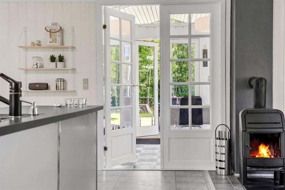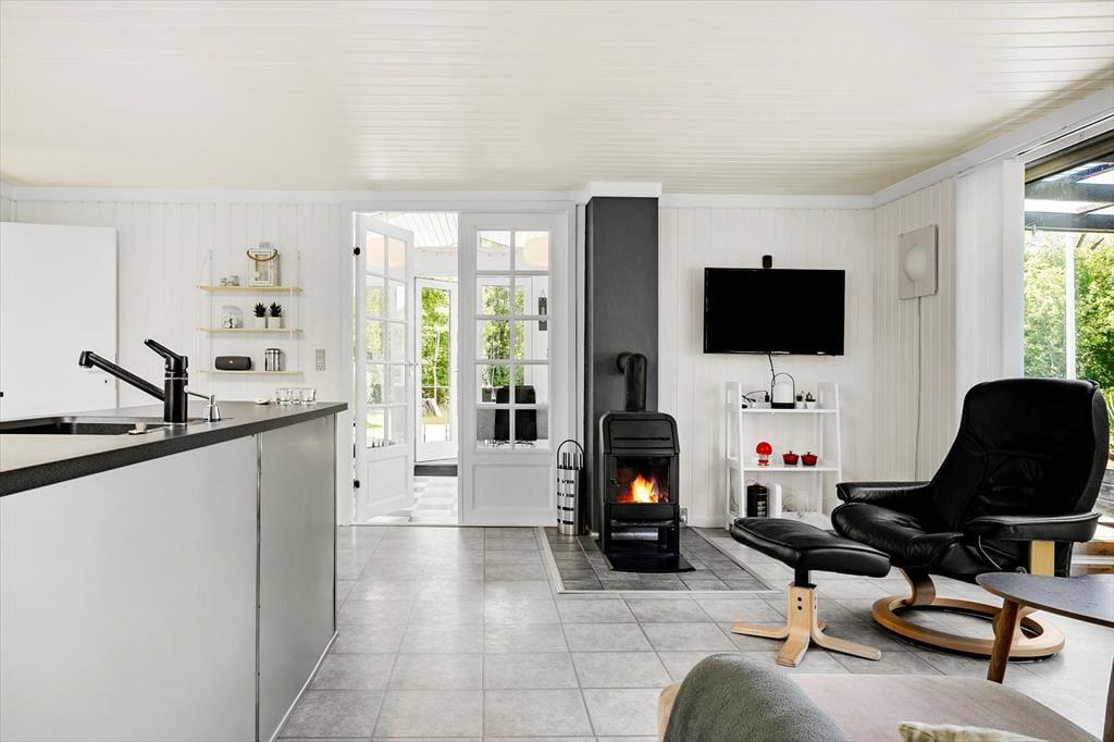 Dieses im Jahr 1995 erbaute Urlaubsdomizil wurde in 2021 einer umfassenden Renovierung unterzogen und präsentiert sich Ihnen daher in einem beinahe neuwertigen Zustand. Die Räumlichkeiten sind wunderbar hell und einladend eingerichtet. Das Hausinnere bietet Ihnen alles, was Sie für komfortable und gemütliche Urlaubstage im Kreise Ihrer Lieben benötigen. Im stimmungsvollen Aufenthaltsraum, der die Küche und den Wohnraum in sich vereint, sorgen ein romantisch knisternder Kaminofen und eine Wärmepumpe mit zusätzlicher Kühlfunktion für eine stets angenehme Raumtemperatur. Der Fernseher mit Chromecast verspricht zudem ein wenig Unterhaltung und Abwechslung. In der gut ausgestatteten Küche, dürfen Sie sich auf gute Arbeitsbedingungen freuen. In Verlängerung des Aufenthaltsraums treffen Sie auf einen schönen Wintergarten, der mit einem attraktiven Lichteinfall und einem freien Blick in den grünen Garten zu verzücken weiß. Im Wintergarten ist ein doppeltes Schlafsofa platziert, das eine schöne Ergänzung zum Doppelbett im Schlafraum und zu den beiden Einzelbetten im Nebengebäude darstellt.