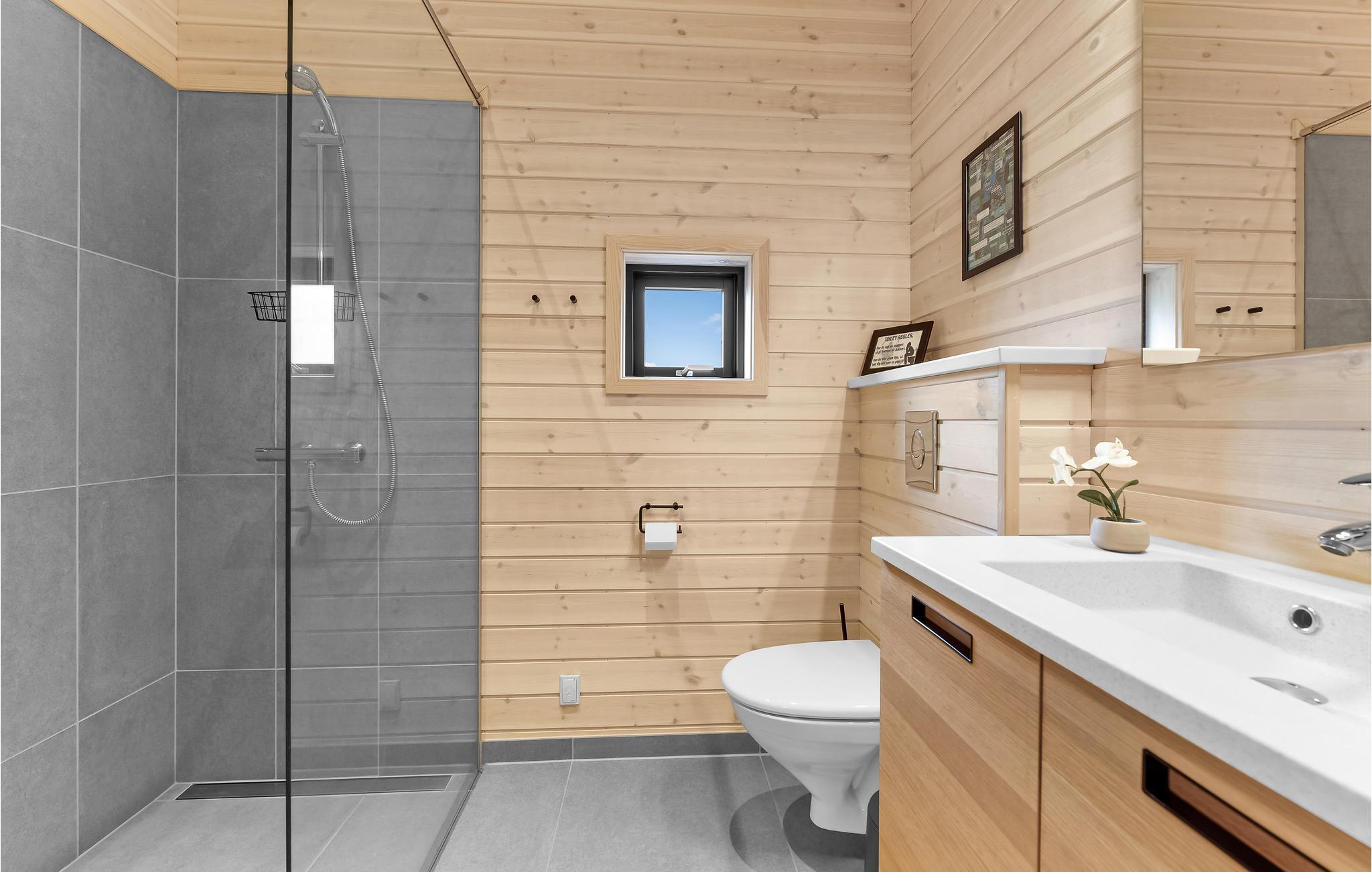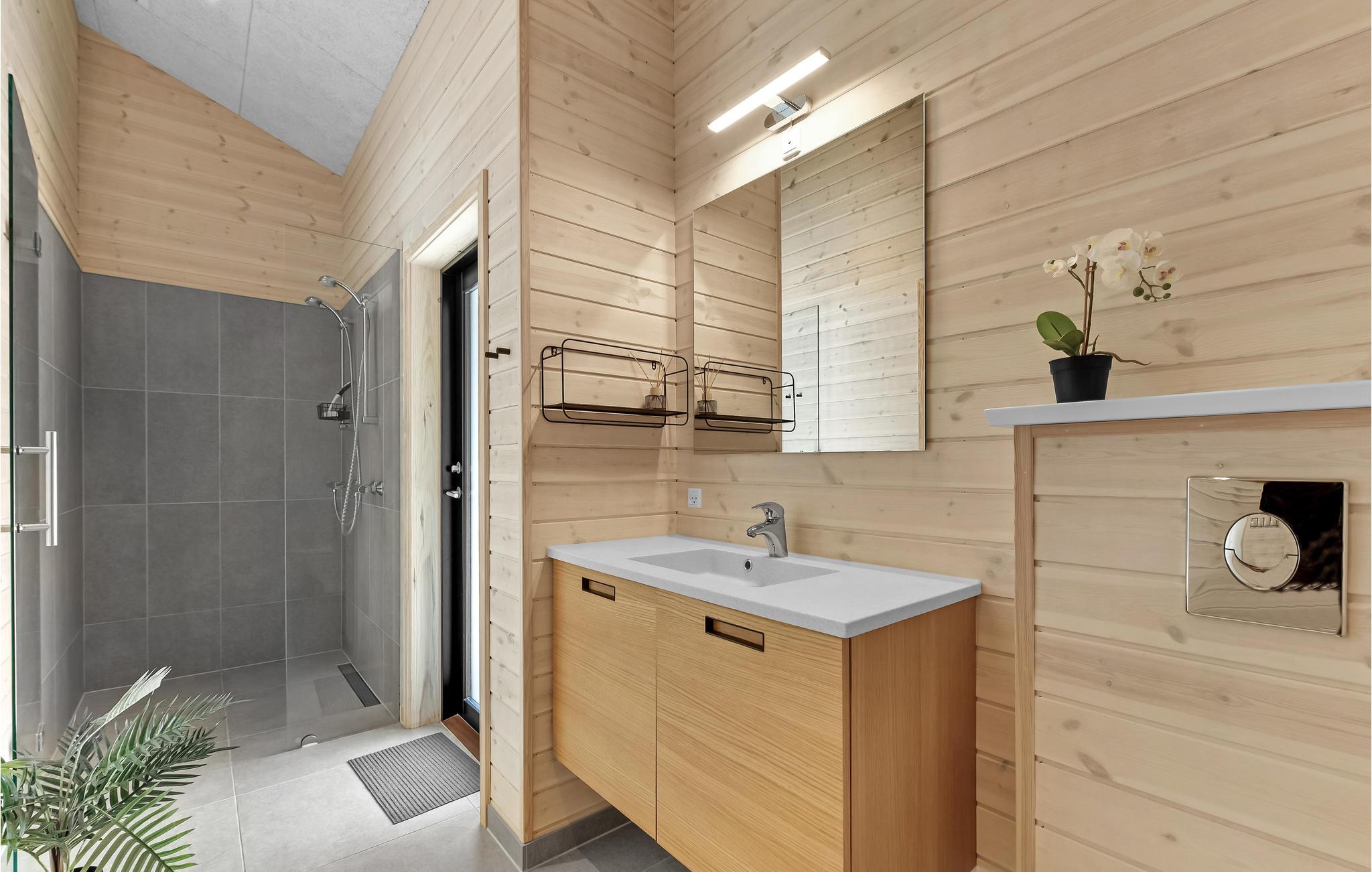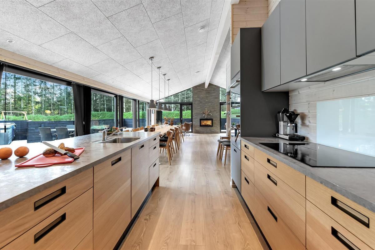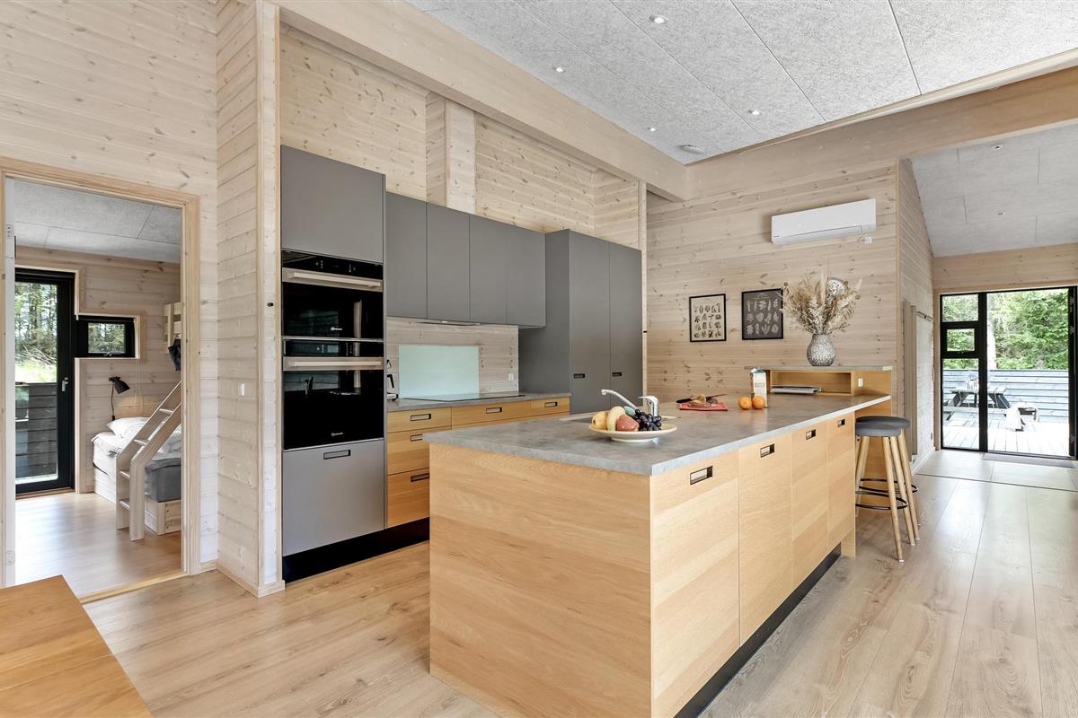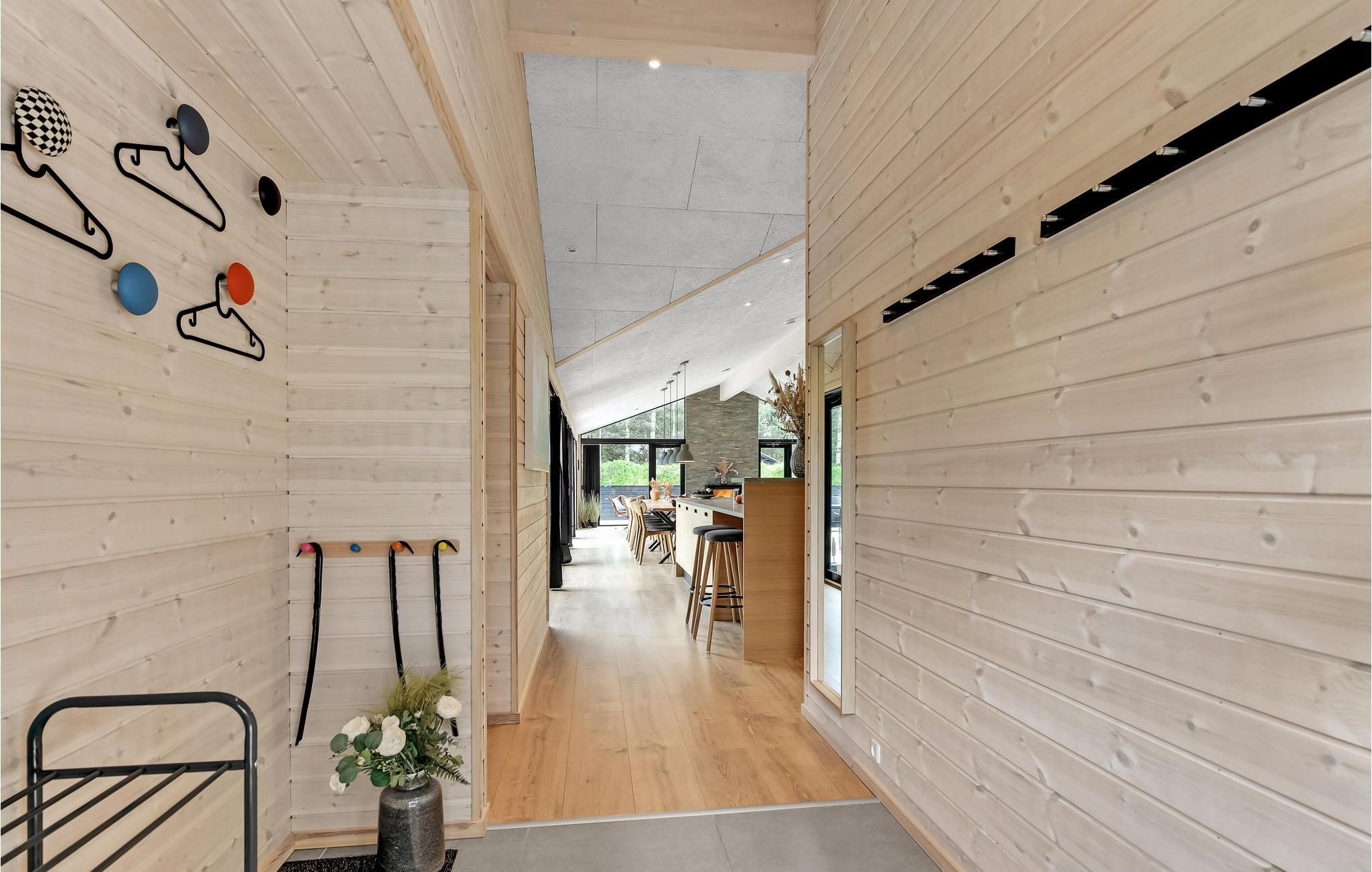 Hier vindt u een zeer aantrekkelijk vakantiehuis met ruimte voor meerdere gezinnen of een groter reisgezelschap. Het biedt een hoogwaardig interieur, moderne en comfortabele faciliteiten en vele, mooie details van hout, die samen de ideale voorwaarden scheppen voor een ontspannende vakantie. Breng gezellige avonden door in de aangename sfeer van de woonkamer en verwarm uzelf voor de bio-open haard in het koele seizoen. Vanuit de woonkamer en vanuit elke slaapkamer heeft u toegang tot het terras.