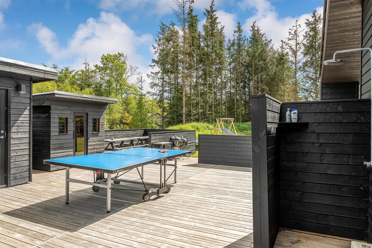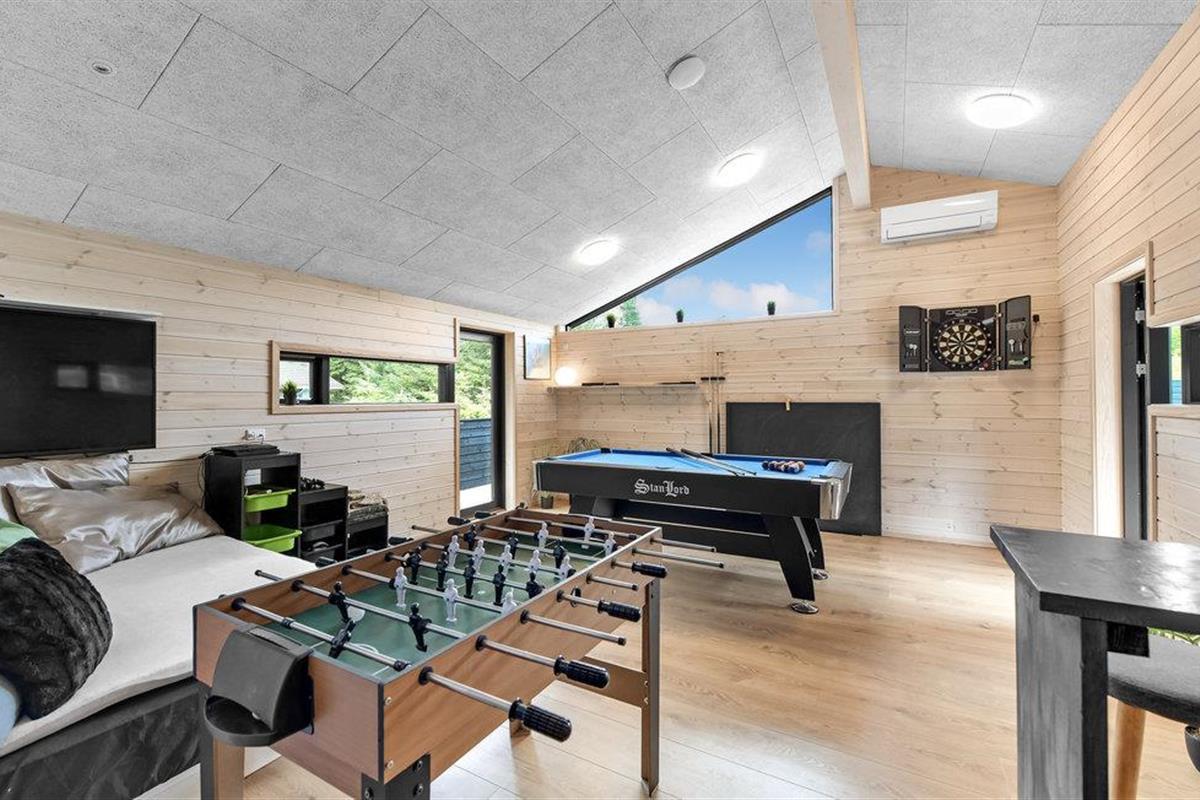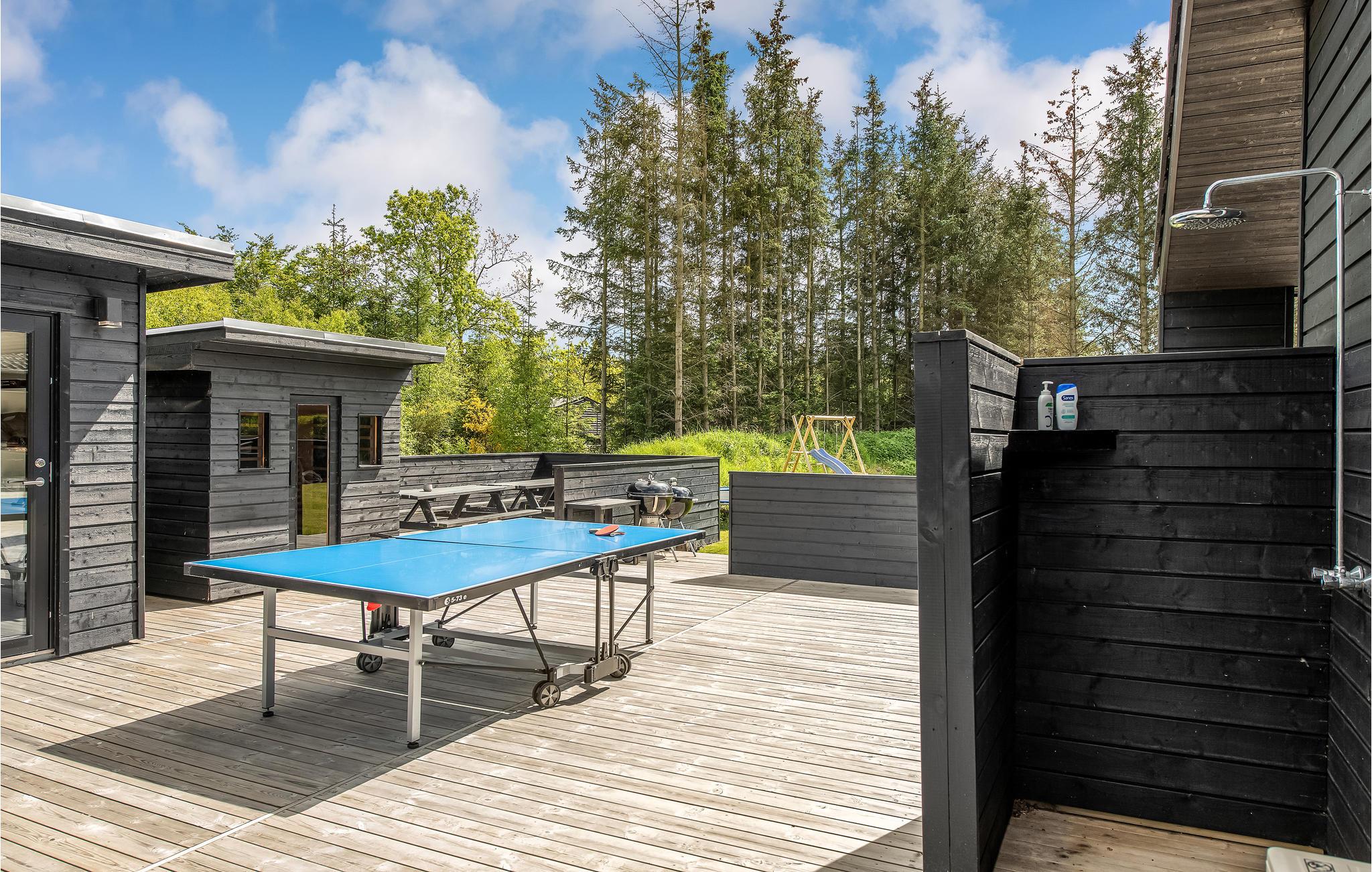 Niet alleen binnen maar ook buiten maakt het huis indruk met zijn hoogwaardige voorzieningen. Geniet van uw ochtendkoffie op het terras of ontspan in de hot tub terwijl de kinderen op het terrein spelen. Tafeltennis, schommel, jeu de boules baan, kampvuurplaats - alles staat hier klaar voor vele, heerlijke uren buiten. De stijlvolle infraroodsauna zorgt voor behaaglijke warmte.