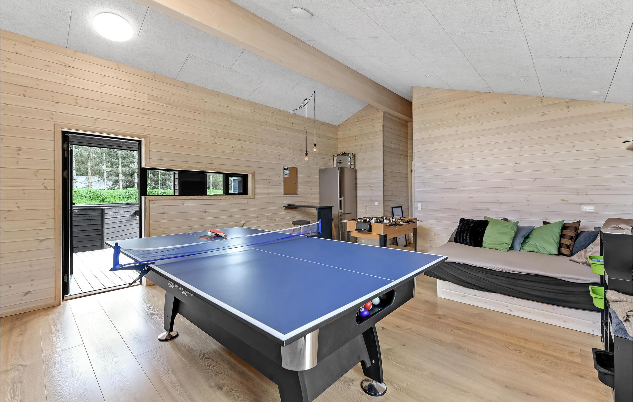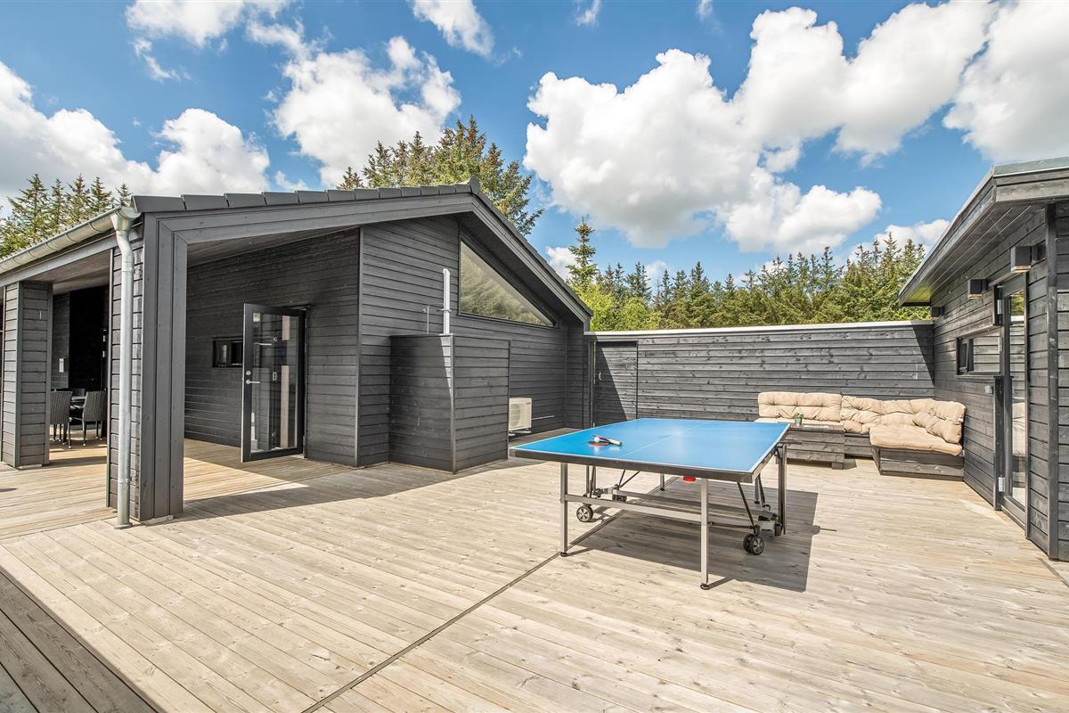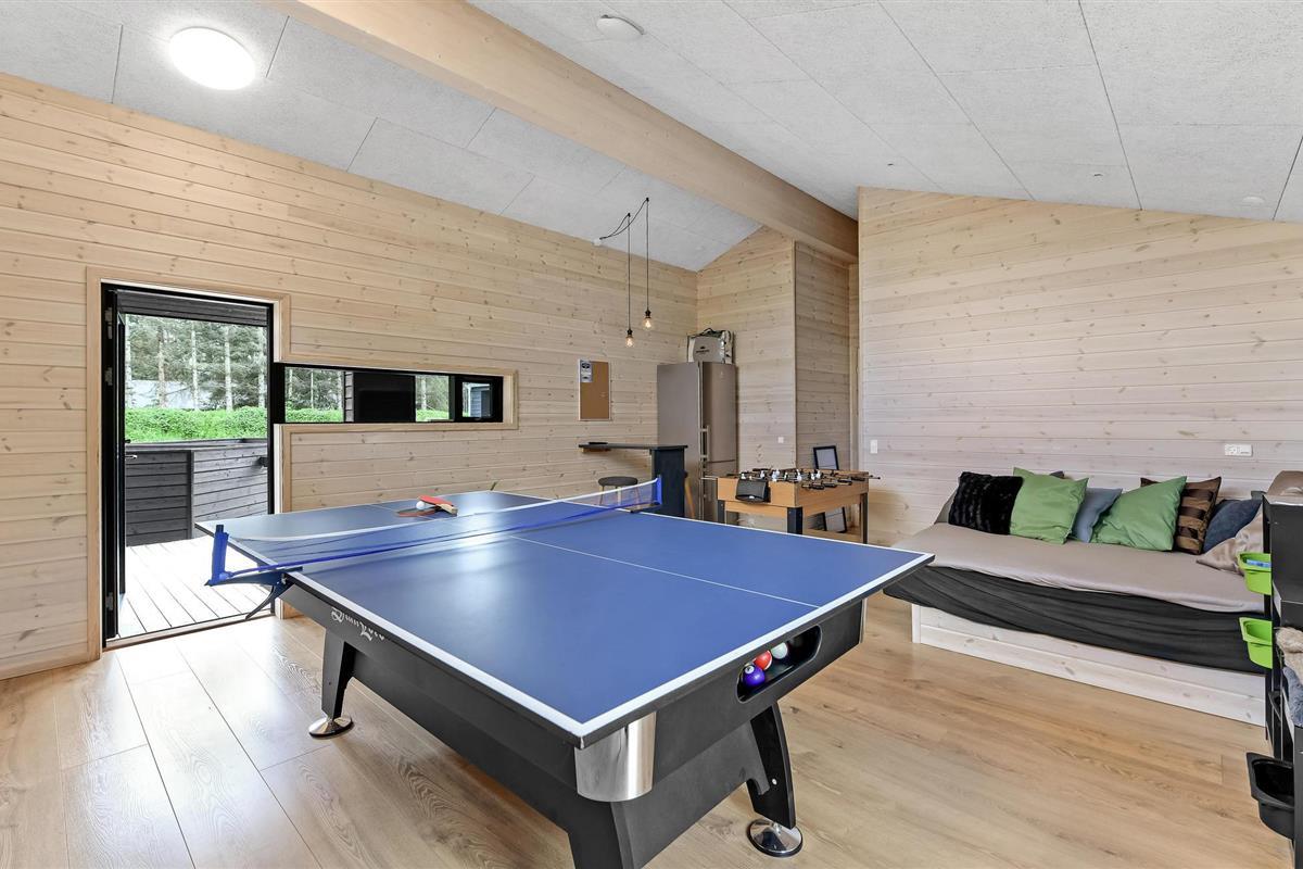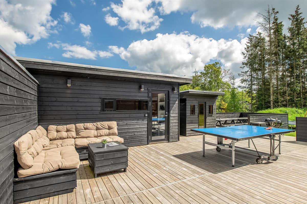 Niet alleen binnen maar ook buiten maakt het huis indruk met zijn hoogwaardige voorzieningen. Geniet van uw ochtendkoffie op het terras of ontspan in de hot tub terwijl de kinderen op het terrein spelen. Tafeltennis, schommel, jeu de boules baan, kampvuurplaats - alles staat hier klaar voor vele, heerlijke uren buiten. De stijlvolle infraroodsauna zorgt voor behaaglijke warmte.