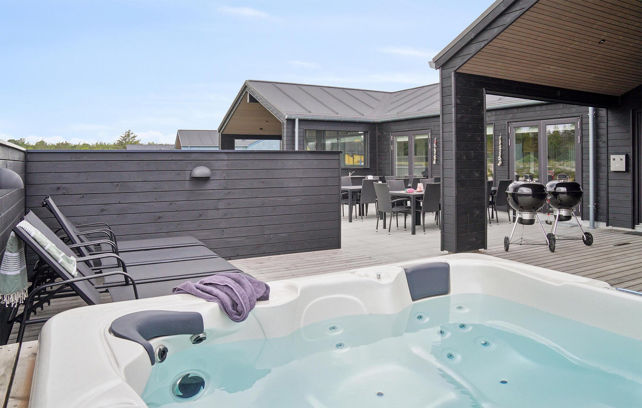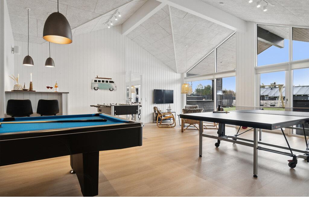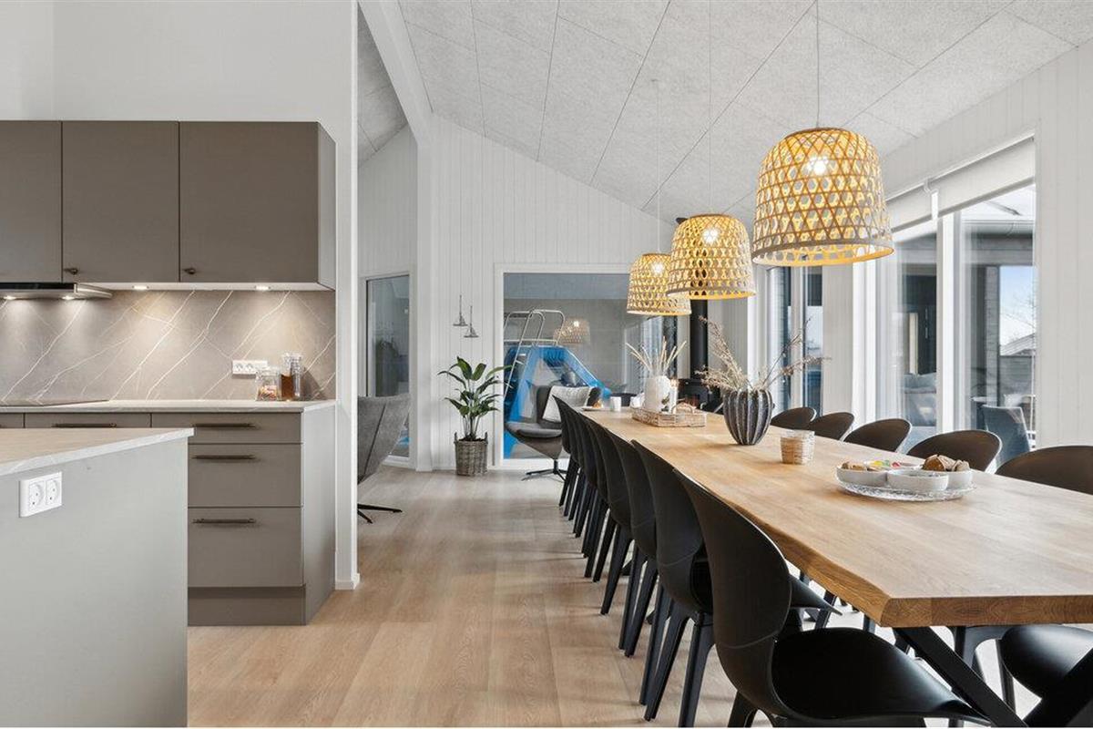 Welkom in Ålbæk Strand in het noordelijkste deel van Jutland. Begin je dag hier met een stevig ontbijt aan de eettafel, die direct grenst aan de open, moderne keuken. Hier kun je in een gezellige sfeer de plannen van de dag bespreken en uitkijken naar de avonturen die voor je liggen. De woonkamer nodigt je uit om te ontspannen op de banken en fauteuils terwijl de kinderen kleuren of jullie samen spelletjes spelen. Het binnenzwembad biedt de hele dag waterpret, terwijl de whirlpool en sauna zorgen voor ontspannende momenten.