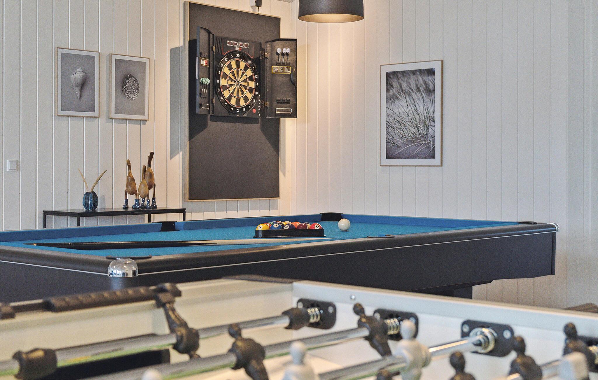 Het ruime terras is de ideale plek voor gezellige barbecues terwijl je kinderen stuiteren op de trampoline of gebruik maken van de andere speeltoestellen. Er is ook ruimte om te voetballen of badmintonnen. Binnen is er biljart, tafeltennis, tafelvoetbal of darts.