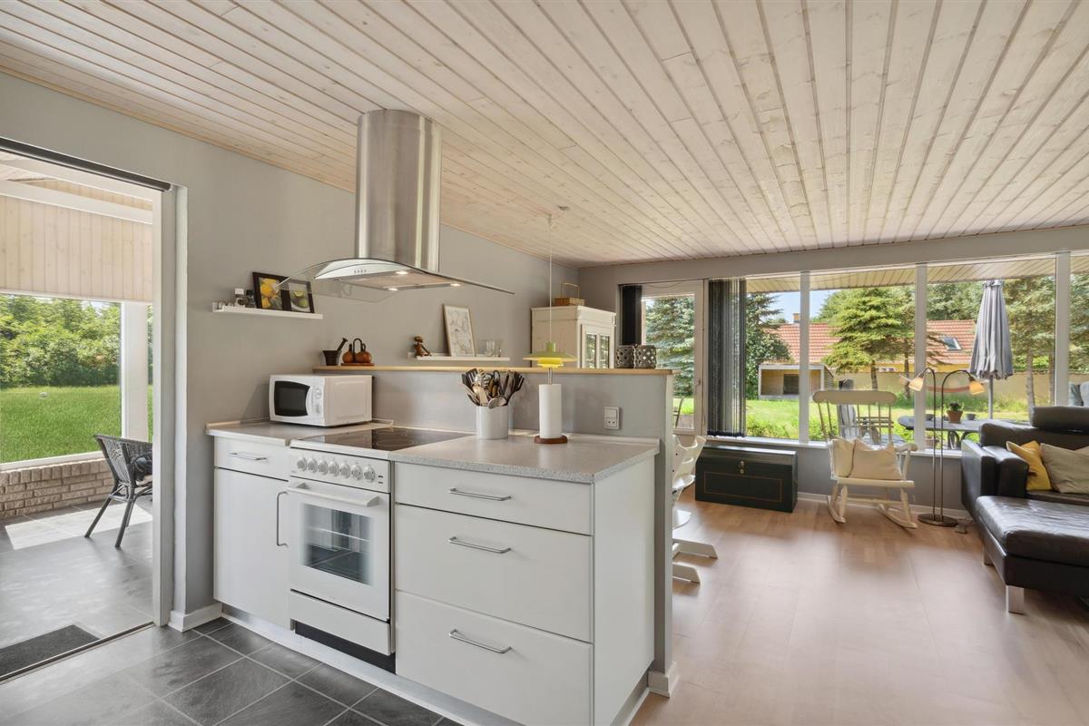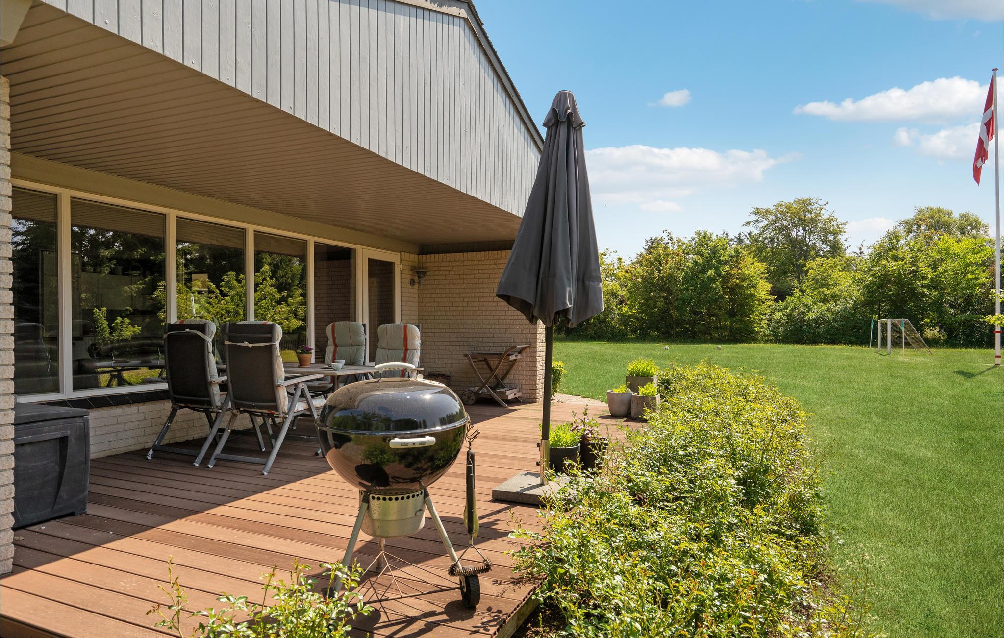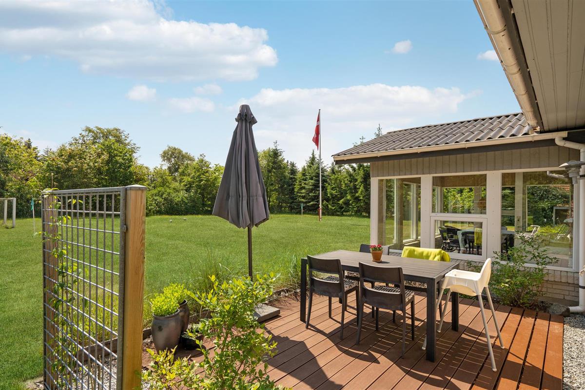 Licht vakantiehuis in Ålbækparken met terras, tuin en fjord dichtbij voor watersport en ontspanning.