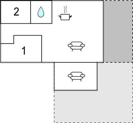 Woonkamer met open keuken - 1 Slaapplaatsen. (Matras).