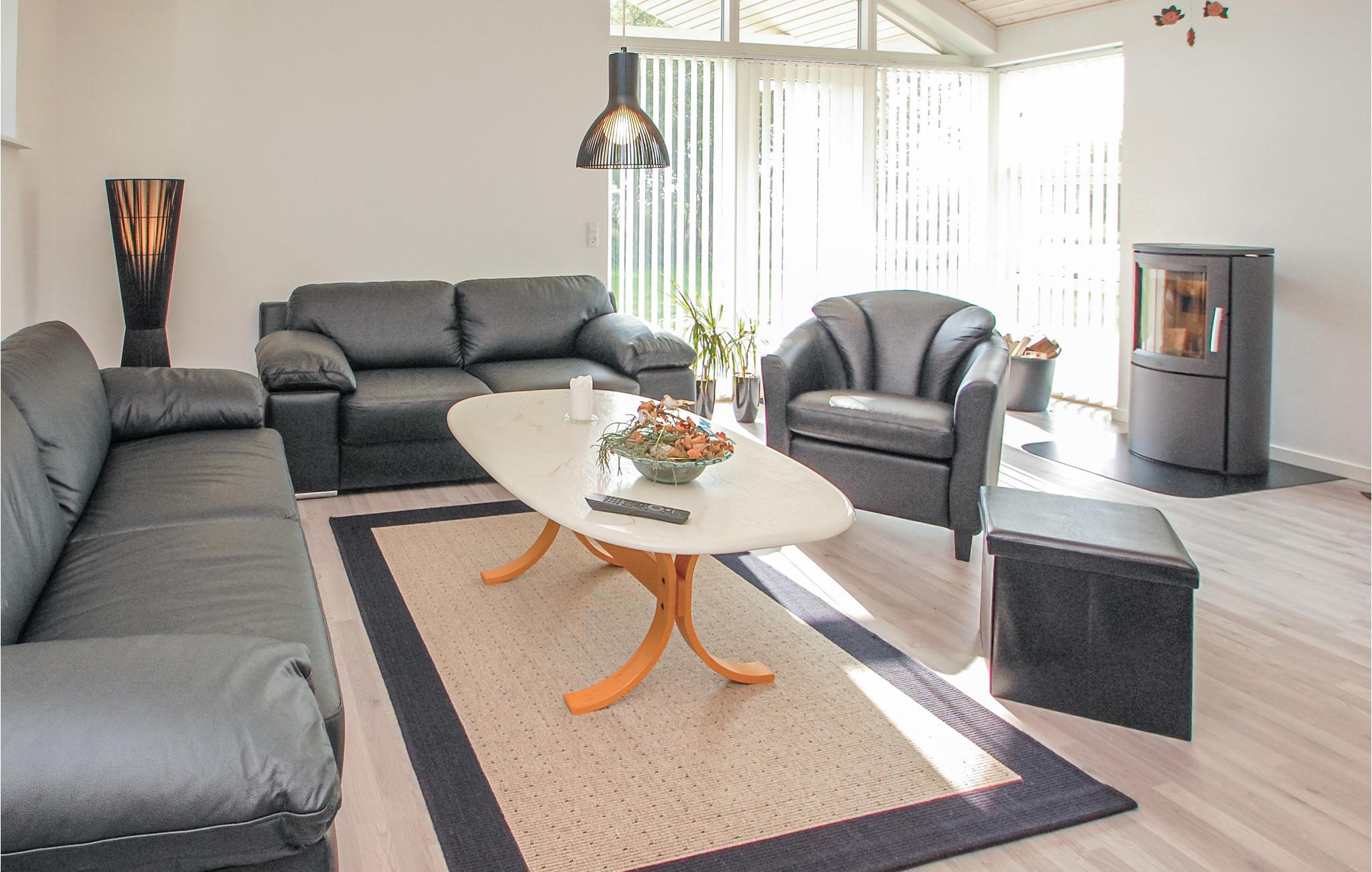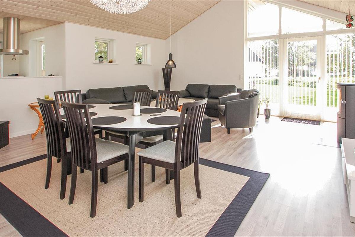 Mooi vakantiehuis op het eiland Aarø, gebouwd in 2014. Een plafond dat open is naar de nok laat veel licht binnen en er zijn ook grote ramen. Een halve muur scheidt de keuken van de woonkamer, waar het hele gezin samen van de vakantie kan genieten. Warmtepompen zorgen voor een laag energieverbruik en dus lage kosten, en er is ook een gezellige houtkachel. Er zijn goede bedden in het huis en de inrichting weerspiegelt de goede smaak van de eigenaren. Op het deels overdekte terras heb je de mogelijkheid om van verschillende seizoenen te genieten. Je kunt goed zwemmen op het eiland, zoals typisch is voor een eiland, het is nooit ver naar de zee. Er zijn maar een paar auto's op het eiland. Zelfs de jongere leden van het gezin kunnen het hele eiland rondfietsen. Onderweg kun je de leuke avonturenspeeltuin bezoeken, die niet ver van het huis ligt. Je kunt ook gaan winkelen op het eiland. Een bezoek aan de boerderij Brummers Gård is een echte belevenis, waar specialiteiten van de Deense eilanden worden aangeboden. In het restaurant kun je ook genieten van het vlees van de exclusieve Galloway runderen. Bij Brummers kun je ook fietsen, zeekajaks, een visnet voor kinderen en bolderkarren huren - alles wat je nodig zou kunnen hebben op een echte eilandtrip. De wijnmaker van het eiland biedt ook lokaal geproduceerde wijn aan bij het diner. Je kunt ook een wijnproeverij met de wijnboer regelen. De veerboot Helene brengt je van Aarø op een prachtige tocht door het 12 kilometer lange fjord naar Haderslev. Haderslev is een mooie oude stad met goede speciaalzaken en musea. Als je bij de veerhaven aankomt, krijg je te horen dat de veerboot één keer per uur vertrekt en indien nodig vaker, zodat je binnen 15 minuten op het eiland bent. Er liggen vissersboten en plezierboten in de haven. Overal op het eiland kun je goed vissen.