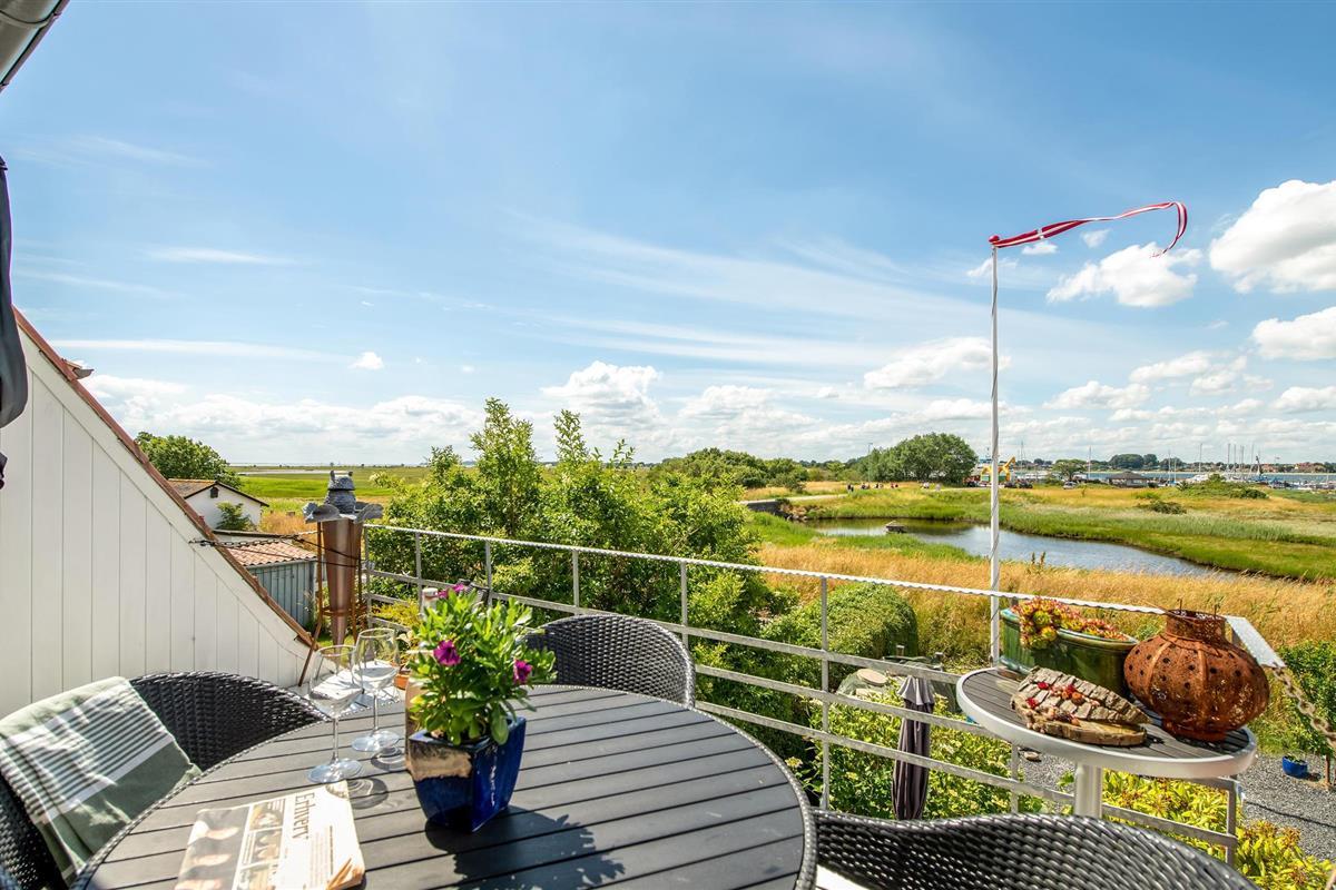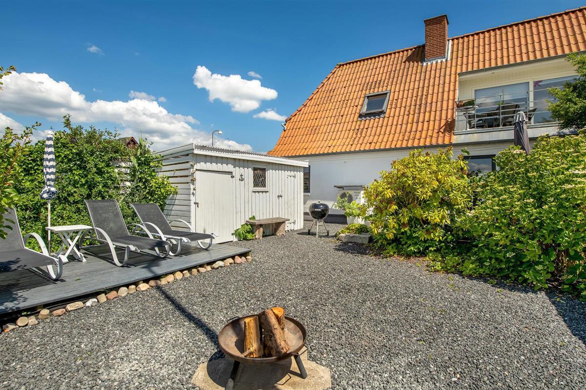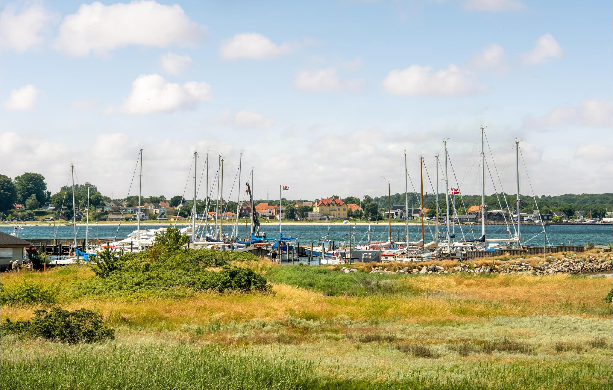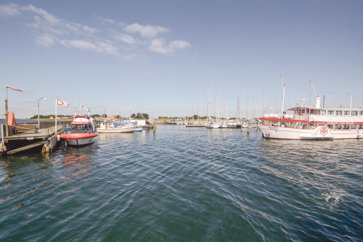 Al op de veerboot naar Aarø kom je in de vakantiestemming. Ook al duurt de overtocht maar 7 minuten, je merkt dat je op weg bent naar een stukje paradijs. Het vakantiehuis is ook een echte parel met zijn panoramisch uitzicht op de haven van Aarø en de Kleine Belt. Het rijtjeshuis op twee verdiepingen herbergt op de begane grond een goed uitgeruste keuken in landelijke stijl. Een houtkachel en de warmtepomp zorgen voor de verwarming. U kunt slapen in de slaapkamer of in de alkoof, beide met tweepersoonsbedden. Twee badkamers. De kleine tuin voor het woongedeelte is omheind en privé. Een omkeerbare trap leidt naar de bovenverdieping, waar nog een woonkamer is met panoramisch uitzicht en toegang tot het dakterras. Op deze verdieping bevindt zich ook de tweede badkamer van het huis. Op het eiland is het nooit ver naar het water en mooie stranden, ook zijn er weinig auto's en geen stress. U kunt onder andere winkelen in boerderijwinkels. Een bezoek aan de boerderij Brummers Gaard belooft een echte belevenis, u kunt er genieten van een lekkere biefstuk van een Galloway rund. Bij Brummers Gaard kunt u fietsen, zeekajaks, visnetten en handkarren huren. Aarø Vingård, een wijnhuis, heeft een goed restaurant en serveert zijn eigen wijn. Ter plaatse kan een wijnproeverij worden geboekt. De natuur van het eiland is indrukwekkend, een groot en ongerept gebied is een vogelreservaat en zeer bezienswaardig. De veerboot Helene meert ook aan op het eiland en u kunt deze nemen naar Haderslev, 12 km verderop. Haderslev is een mooie oude stad met winkels en musea. De veerboot naar het eiland Aarø vertrekt eens per uur, maar als er een wachtrij is, vertrekt de veerboot ook vaker. Dan bent u in hooguit 15 minuten op het eiland. Het havengebied met de vissersboten en zeiljachten heeft een bijzondere charme. Als u van vissen houdt, dan kunt u uw ruime vangst goed schoonmaken en bewaren, want er is een visschoonmaakplaats en een grote vriezer in het huis.