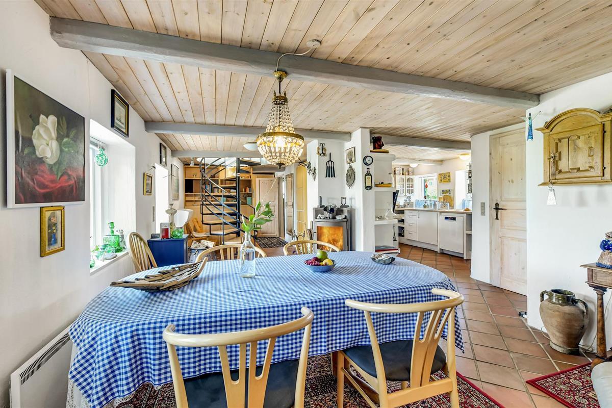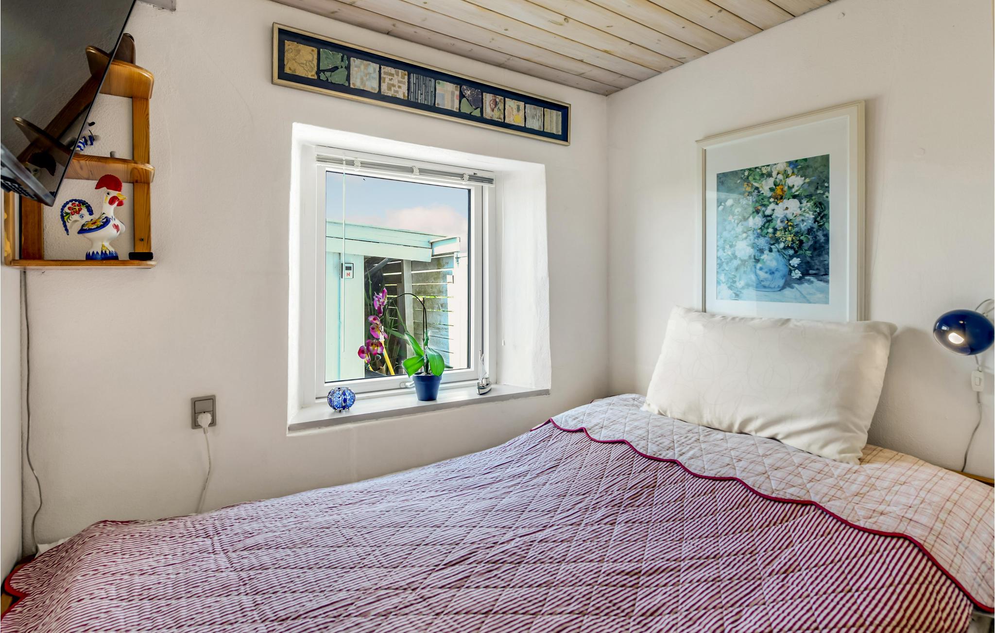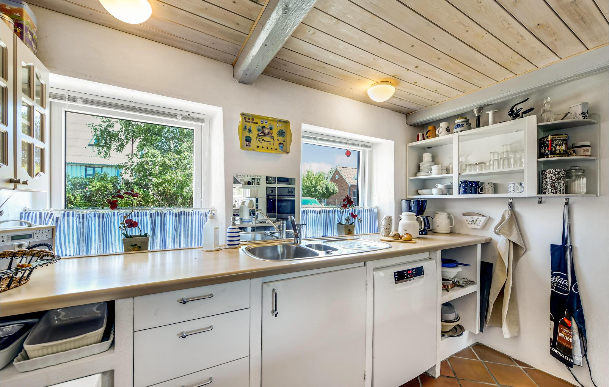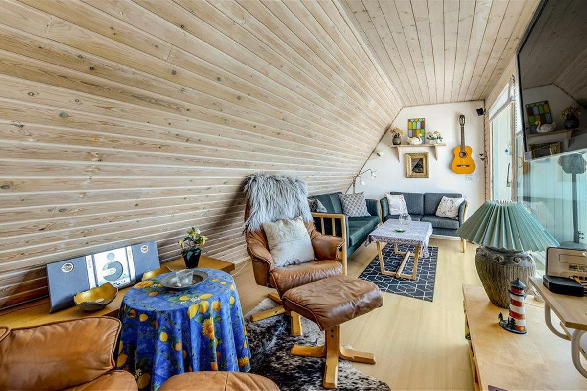 Al op de veerboot naar Aarø kom je in de vakantiestemming. Ook al duurt de overtocht maar 7 minuten, je merkt dat je op weg bent naar een stukje paradijs. Het vakantiehuis is ook een echte parel met zijn panoramisch uitzicht op de haven van Aarø en de Kleine Belt. Het rijtjeshuis op twee verdiepingen herbergt op de begane grond een goed uitgeruste keuken in landelijke stijl. Een houtkachel en de warmtepomp zorgen voor de verwarming. U kunt slapen in de slaapkamer of in de alkoof, beide met tweepersoonsbedden. Twee badkamers. De kleine tuin voor het woongedeelte is omheind en privé. Een omkeerbare trap leidt naar de bovenverdieping, waar nog een woonkamer is met panoramisch uitzicht en toegang tot het dakterras. Op deze verdieping bevindt zich ook de tweede badkamer van het huis. Op het eiland is het nooit ver naar het water en mooie stranden, ook zijn er weinig auto's en geen stress. U kunt onder andere winkelen in boerderijwinkels. Een bezoek aan de boerderij Brummers Gaard belooft een echte belevenis, u kunt er genieten van een lekkere biefstuk van een Galloway rund. Bij Brummers Gaard kunt u fietsen, zeekajaks, visnetten en handkarren huren. Aarø Vingård, een wijnhuis, heeft een goed restaurant en serveert zijn eigen wijn. Ter plaatse kan een wijnproeverij worden geboekt. De natuur van het eiland is indrukwekkend, een groot en ongerept gebied is een vogelreservaat en zeer bezienswaardig. De veerboot Helene meert ook aan op het eiland en u kunt deze nemen naar Haderslev, 12 km verderop. Haderslev is een mooie oude stad met winkels en musea. De veerboot naar het eiland Aarø vertrekt eens per uur, maar als er een wachtrij is, vertrekt de veerboot ook vaker. Dan bent u in hooguit 15 minuten op het eiland. Het havengebied met de vissersboten en zeiljachten heeft een bijzondere charme. Als u van vissen houdt, dan kunt u uw ruime vangst goed schoonmaken en bewaren, want er is een visschoonmaakplaats en een grote vriezer in het huis.
