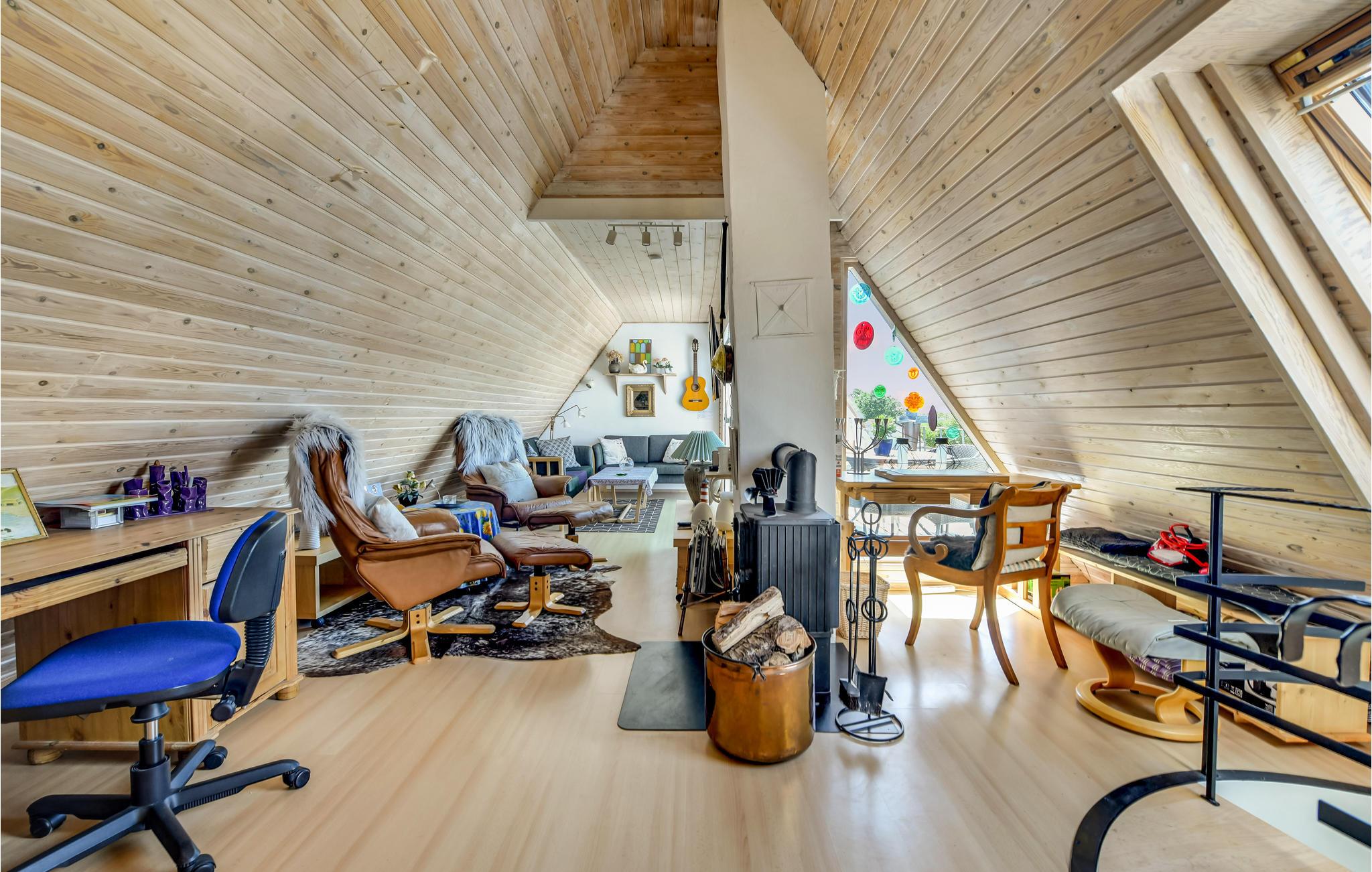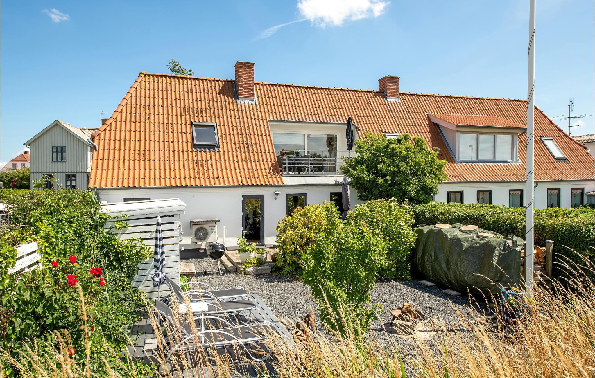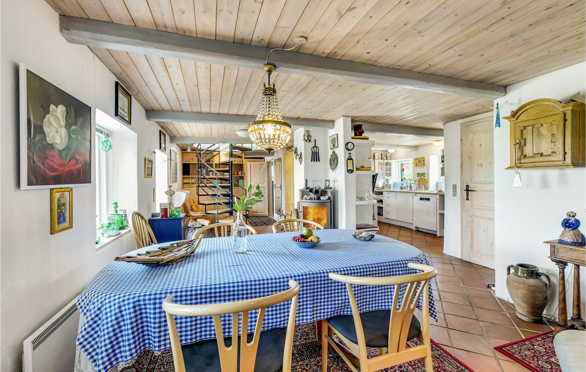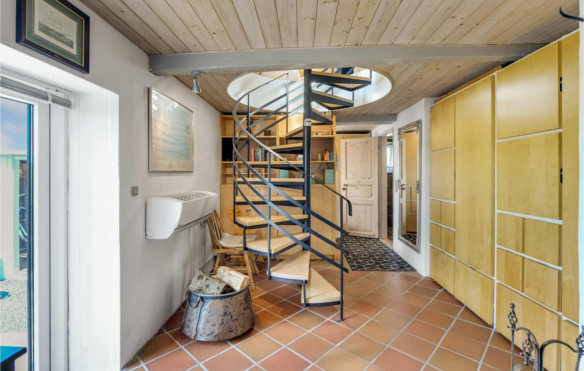 Al op de veerboot naar Aarø kom je in de vakantiestemming. Ook al duurt de overtocht maar 7 minuten, je merkt dat je op weg bent naar een stukje paradijs. Het vakantiehuis is ook een echte parel met zijn panoramisch uitzicht op de haven van Aarø en de Kleine Belt. Het rijtjeshuis op twee verdiepingen herbergt op de begane grond een goed uitgeruste keuken in landelijke stijl. Een houtkachel en de warmtepomp zorgen voor de verwarming. U kunt slapen in de slaapkamer of in de alkoof, beide met tweepersoonsbedden. Twee badkamers. De kleine tuin voor het woongedeelte is omheind en privé. Een omkeerbare trap leidt naar de bovenverdieping, waar nog een woonkamer is met panoramisch uitzicht en toegang tot het dakterras. Op deze verdieping bevindt zich ook de tweede badkamer van het huis. Op het eiland is het nooit ver naar het water en mooie stranden, ook zijn er weinig auto's en geen stress. U kunt onder andere winkelen in boerderijwinkels. Een bezoek aan de boerderij Brummers Gaard belooft een echte belevenis, u kunt er genieten van een lekkere biefstuk van een Galloway rund. Bij Brummers Gaard kunt u fietsen, zeekajaks, visnetten en handkarren huren. Aarø Vingård, een wijnhuis, heeft een goed restaurant en serveert zijn eigen wijn. Ter plaatse kan een wijnproeverij worden geboekt. De natuur van het eiland is indrukwekkend, een groot en ongerept gebied is een vogelreservaat en zeer bezienswaardig. De veerboot Helene meert ook aan op het eiland en u kunt deze nemen naar Haderslev, 12 km verderop. Haderslev is een mooie oude stad met winkels en musea. De veerboot naar het eiland Aarø vertrekt eens per uur, maar als er een wachtrij is, vertrekt de veerboot ook vaker. Dan bent u in hooguit 15 minuten op het eiland. Het havengebied met de vissersboten en zeiljachten heeft een bijzondere charme. Als u van vissen houdt, dan kunt u uw ruime vangst goed schoonmaken en bewaren, want er is een visschoonmaakplaats en een grote vriezer in het huis.