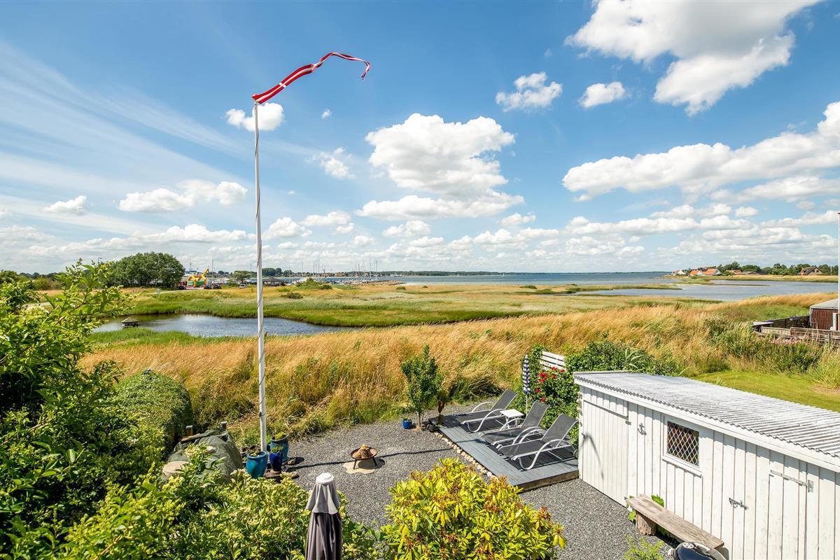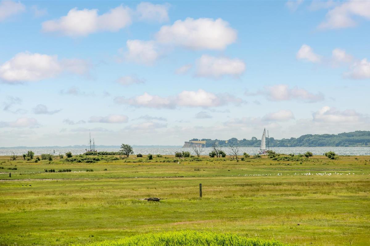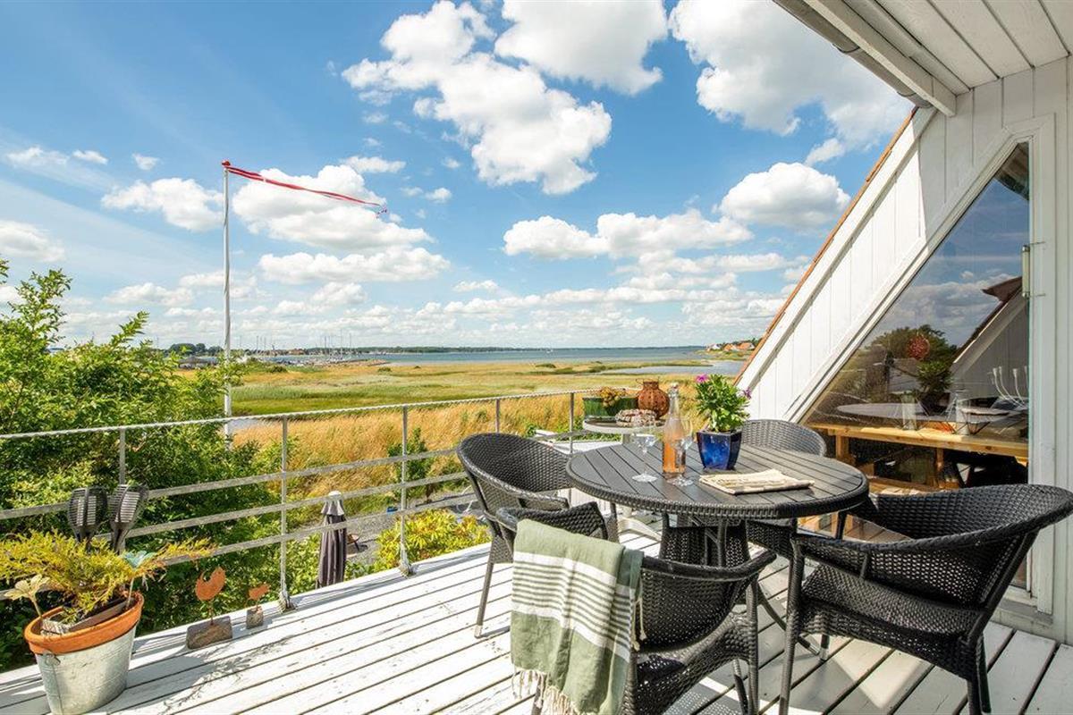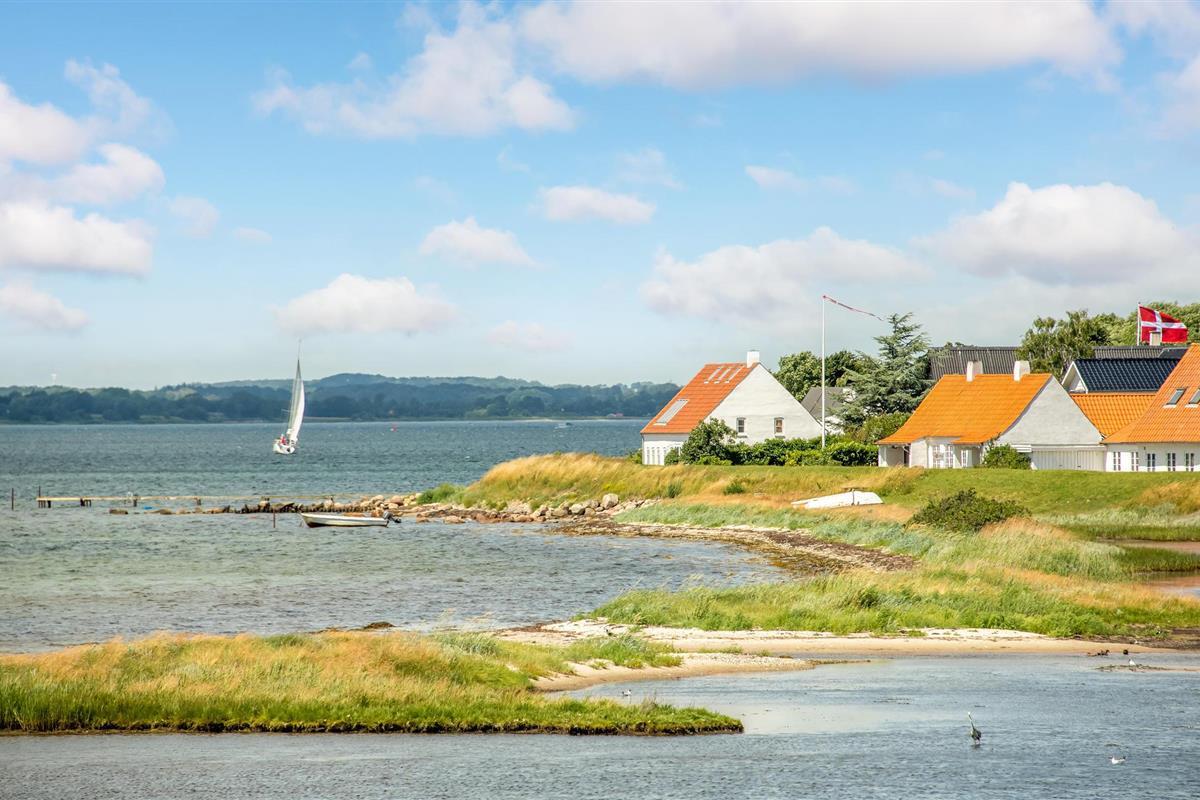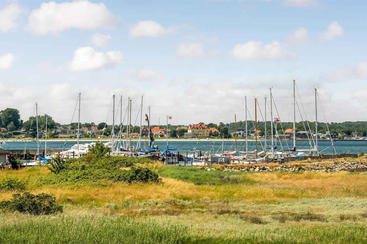 Geniet van een eco-vriendelijk vakantiehuis met panoramisch uitzicht op Aarøs haven en de Kleine Belt.