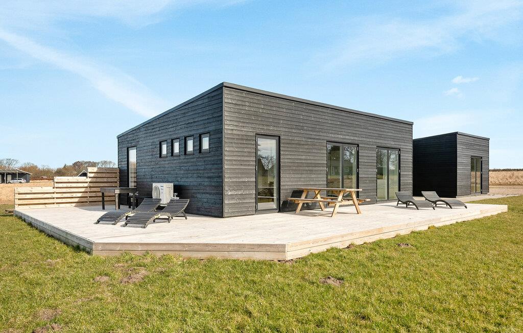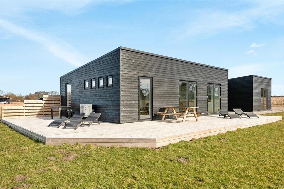 Modern vakantiehuis op Arö eiland met terras, vlak bij zee en natuur, perfect voor rust en ontspanning.