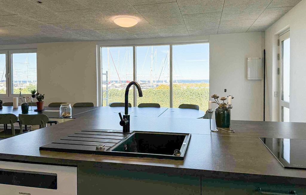 Verheug je op een stijlvol verblijf in je moderne vakantiehuis, dat direct aan het water ligt en een heel bijzondere flair biedt dankzij de ligging aan de haven. Het huis is royaal ontworpen en biedt genoeg ruimte voor een grote groep reizigers. Geniet van de open, lichte woonkamer met grote ramen en uitzicht op de boten in de haven. Ontspan op de zachte bank, kijk een film of lees een boek in de gezellige zithoek. De moderne keuken met hoogwaardige apparatuur biedt alles wat je nodig hebt om te koken en gezellig samen te zijn. Of je nu ontbijt met de ochtendzon of dineert met uitzicht op de zonsondergang, elke maaltijd is hier een genot.