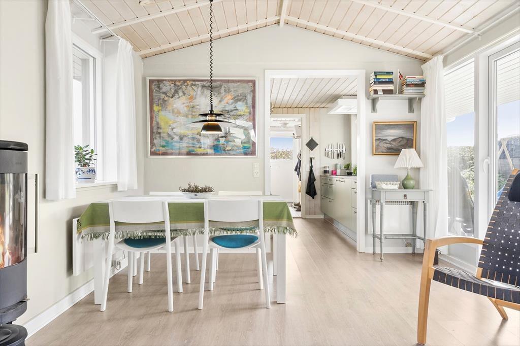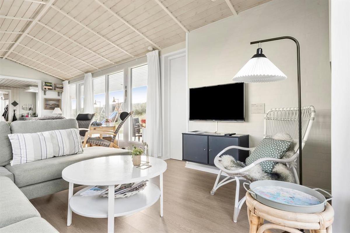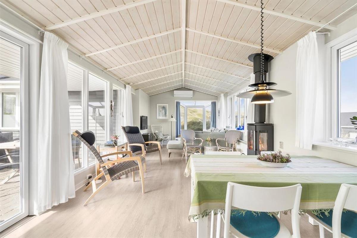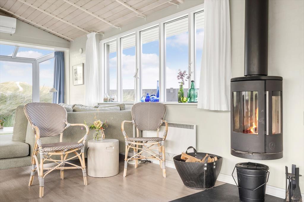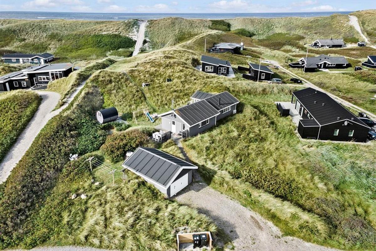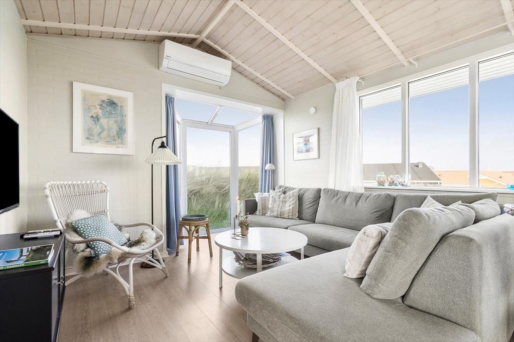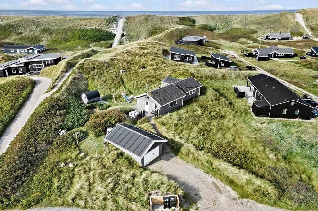 Nur wenige Schritte von der Nordsee entfernt, begrüßt Sie dieses attraktive Ferienhaus für fünf Personen. Das Haus ruht auf einem gemütlichen, hügeligen Dünengrundstück, auf dem Sie mit einem reizvollen Blick über Holmsland Klit und den Fjord verwöhnt werden.