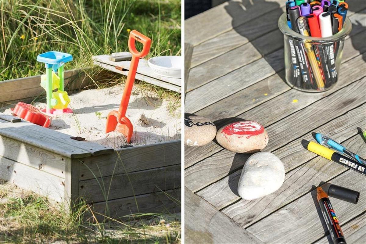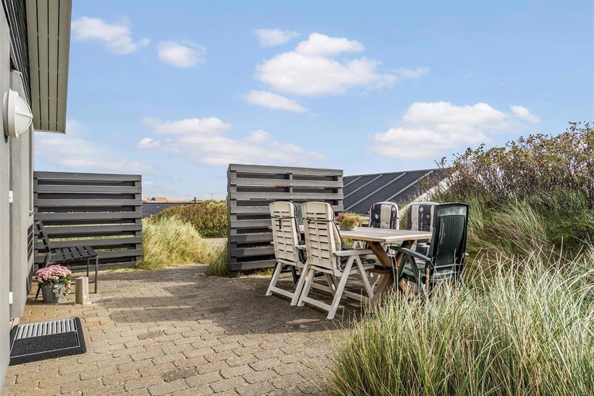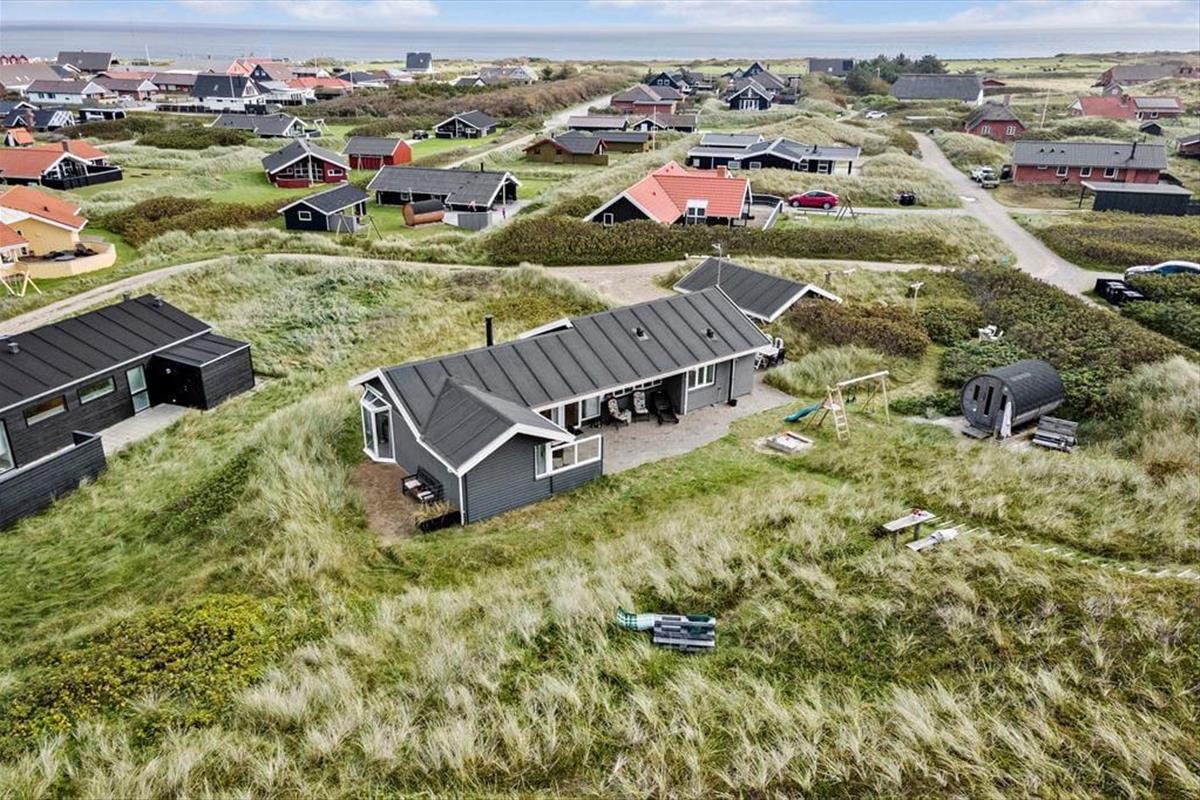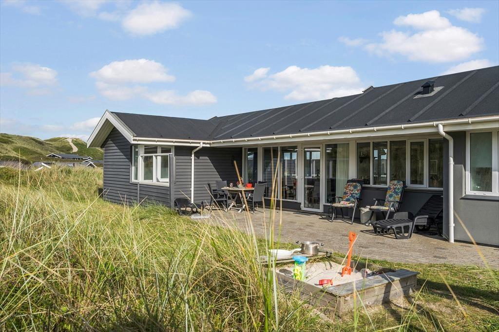 Die Terrassen gen Südosten und Südwesten bieten Ihnen optimale Bedingungen, warme Sommertage in der Sonne zu verleben. Die jüngsten Urlauber dürfen sich auf eine Schaukel und eine Sandkiste freuen. Begeistern werden Sie die Außendusche und die Saunatonne mit Platz für alle Mitreisenden. Auf der Düne des Grundstücks eröffnet sich Ihnen ein reizvoller Ausblick über die Umgebung und den Ringkøbing Fjord. Auf der Düne werden Sie Zeuge fantastischer Sonnenauf- und Sonnenuntergänge.