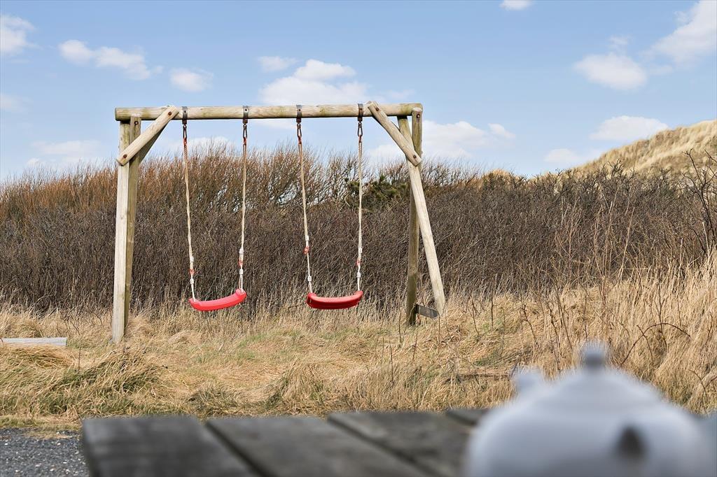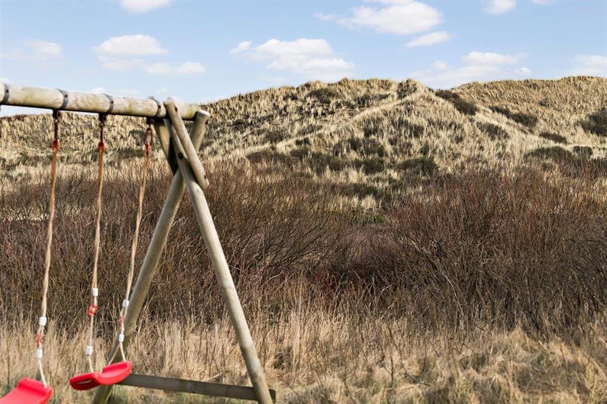 Im Südosten gibt es eine teilweise überdachte und geschlossende Terrasse mit Gartenmöbeln, Liegestühlen und einem Grill. Von der Terrasse können Sie den Blick in die Dünen genießen. Für die Kinder sind auf dem Naturgrundstück eine Schaukel und ein Sandkasten vorhanden.