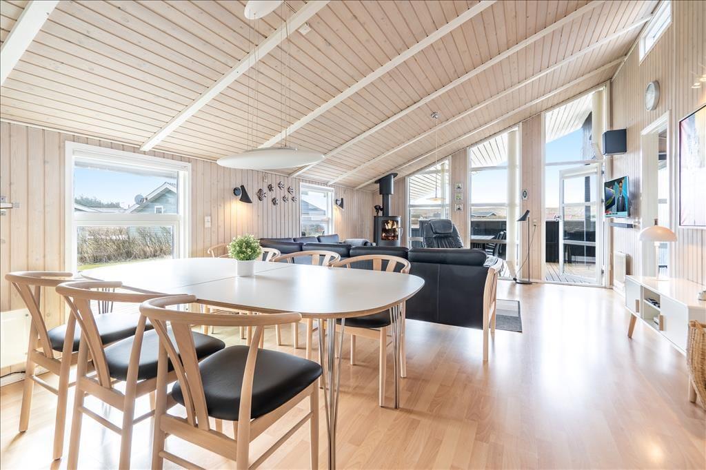 Dieses charmante Ferienhaus ist genau das Richtige, wenn Sie ein gut ausgestattetes Ferienhaus mit Platz für eine große Familie suchen. Ihnen stehen 4 Schlafzimmer für 6 Personen zur Verfügung. Das Haus ist hell und luftig, draußen gibt es große, sonnige Terrassen, und als Sahnehäubchen hat man hier einen Blick auf den Ringkøbing Fjord.