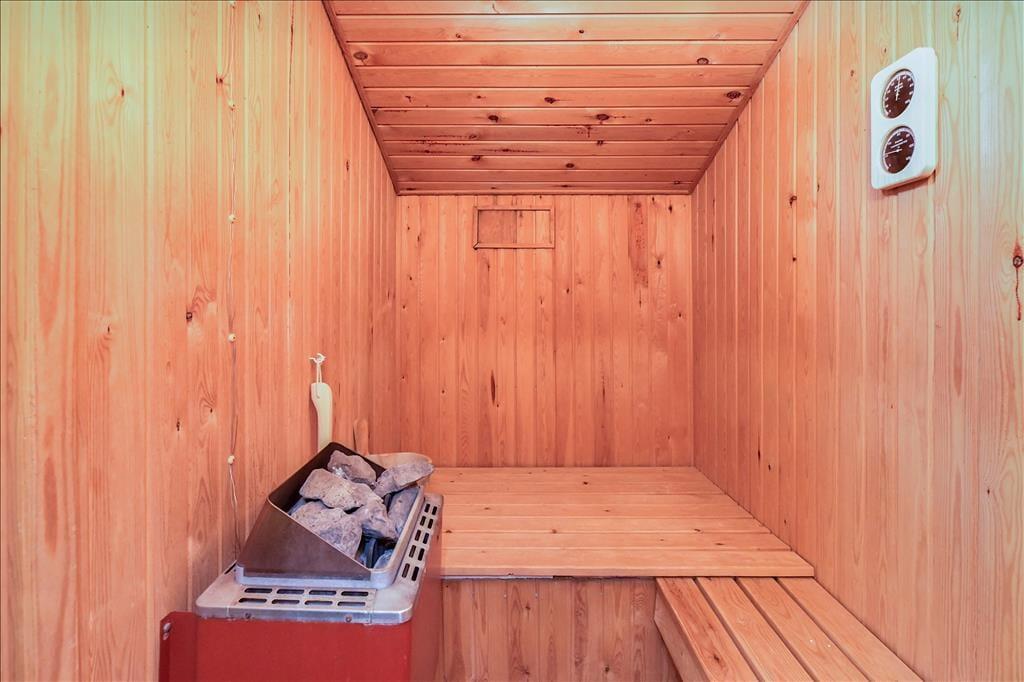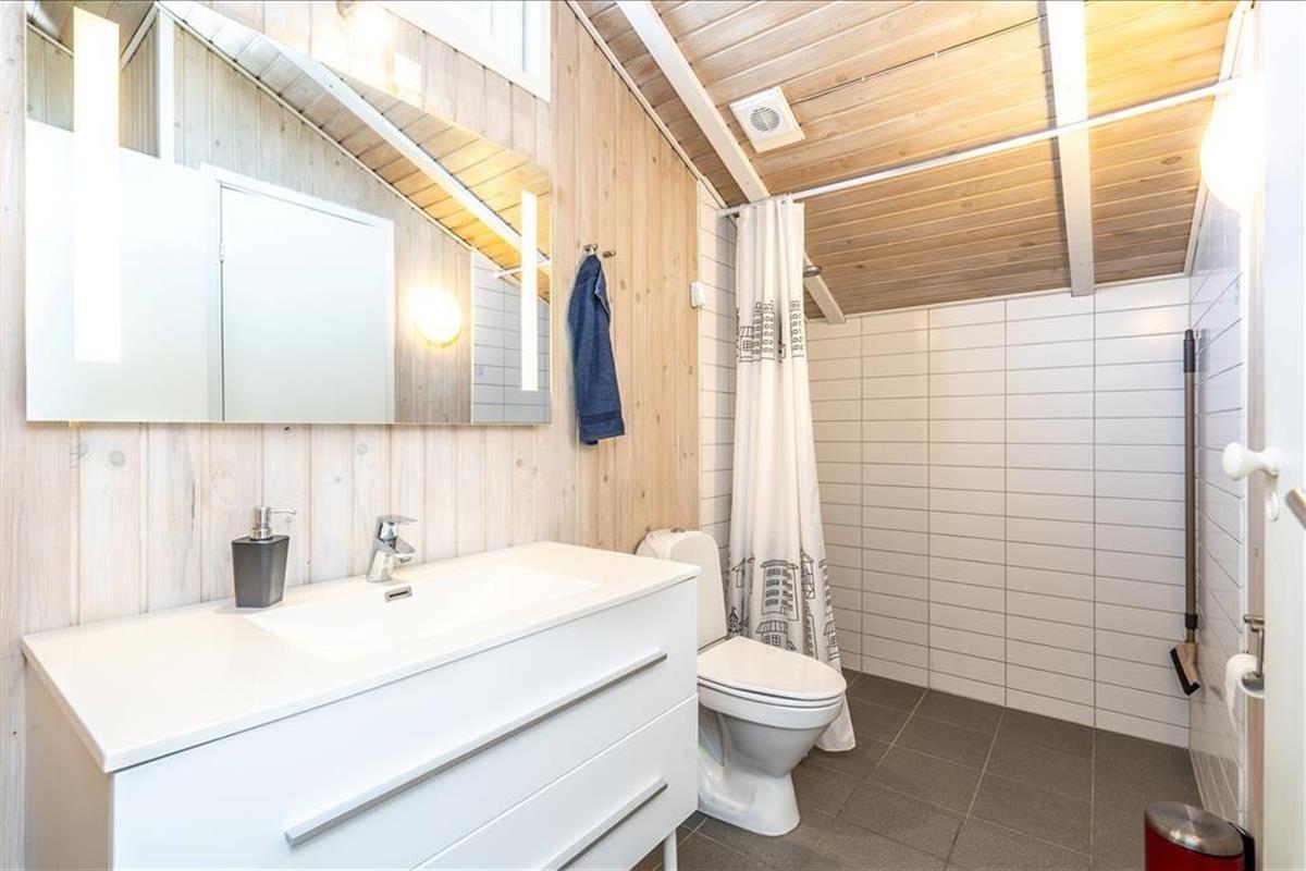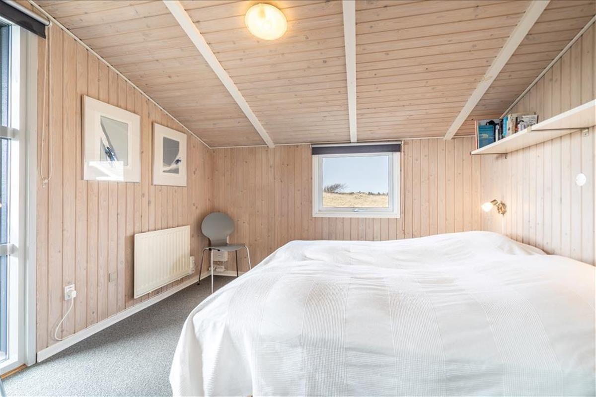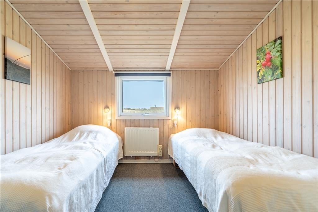Das Sommerhaus ist mit vier guten Schlafzimmern ausgestattet, die einigen von Ihnen zusammen die Möglichkeit eines Privatzimmers bieten. Die Zimmer befinden sich alle an der Nordseite des Hauses, und so hat der Wohnbereich, in dem Küche und Wohnzimmer ineinander übergehen, große Fenster nach Süden und Westen, die viel Licht hereinlassen. Gleichzeitig ermöglichen die gestaffelten Dachflächen Oberlichter, die Ihren Urlaub hell und luftig gestalten. Die Küche ist hell und schön eingerichtet, und der Geschirrspüler macht die Reinigung einfach und bequem. Das Wohnzimmer ist mit einer Essecke und einer Sofagruppe ausgestattet, wo Sie fernsehen oder die Aussicht auf die Natur genießen können, während der Holzofen wärmt. Das Ferienhaus ist mit einem Badezimmer mit Waschbecken, Fußbodenheizung, Dusche und Sauna ausgestattet.