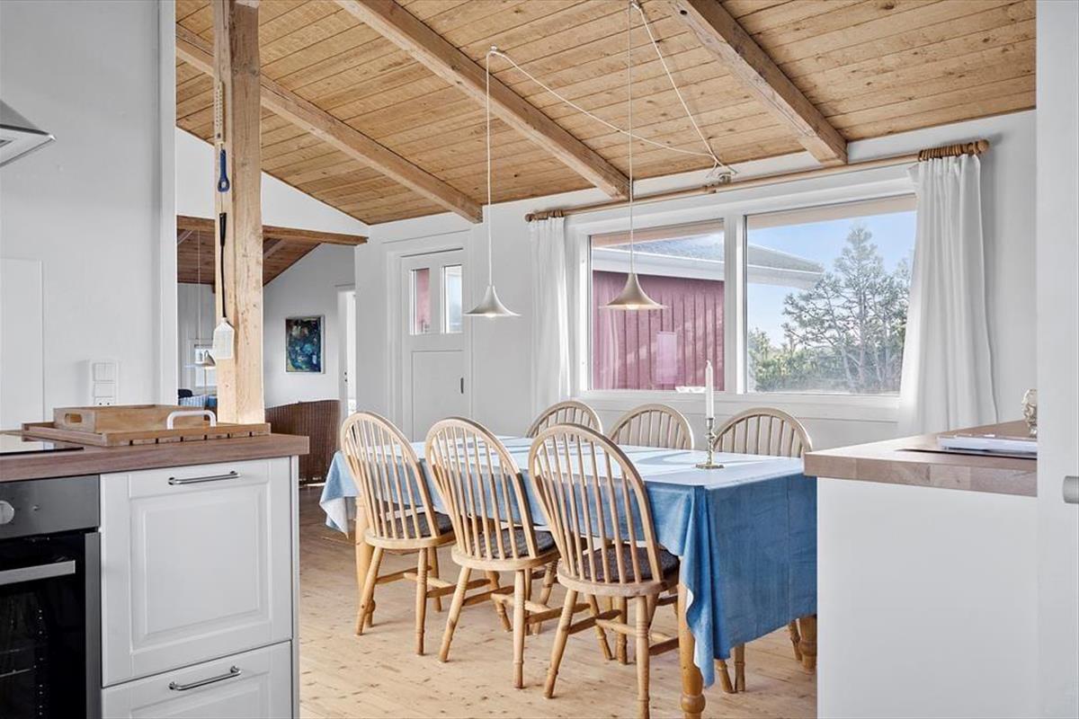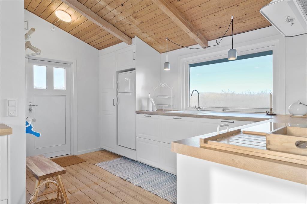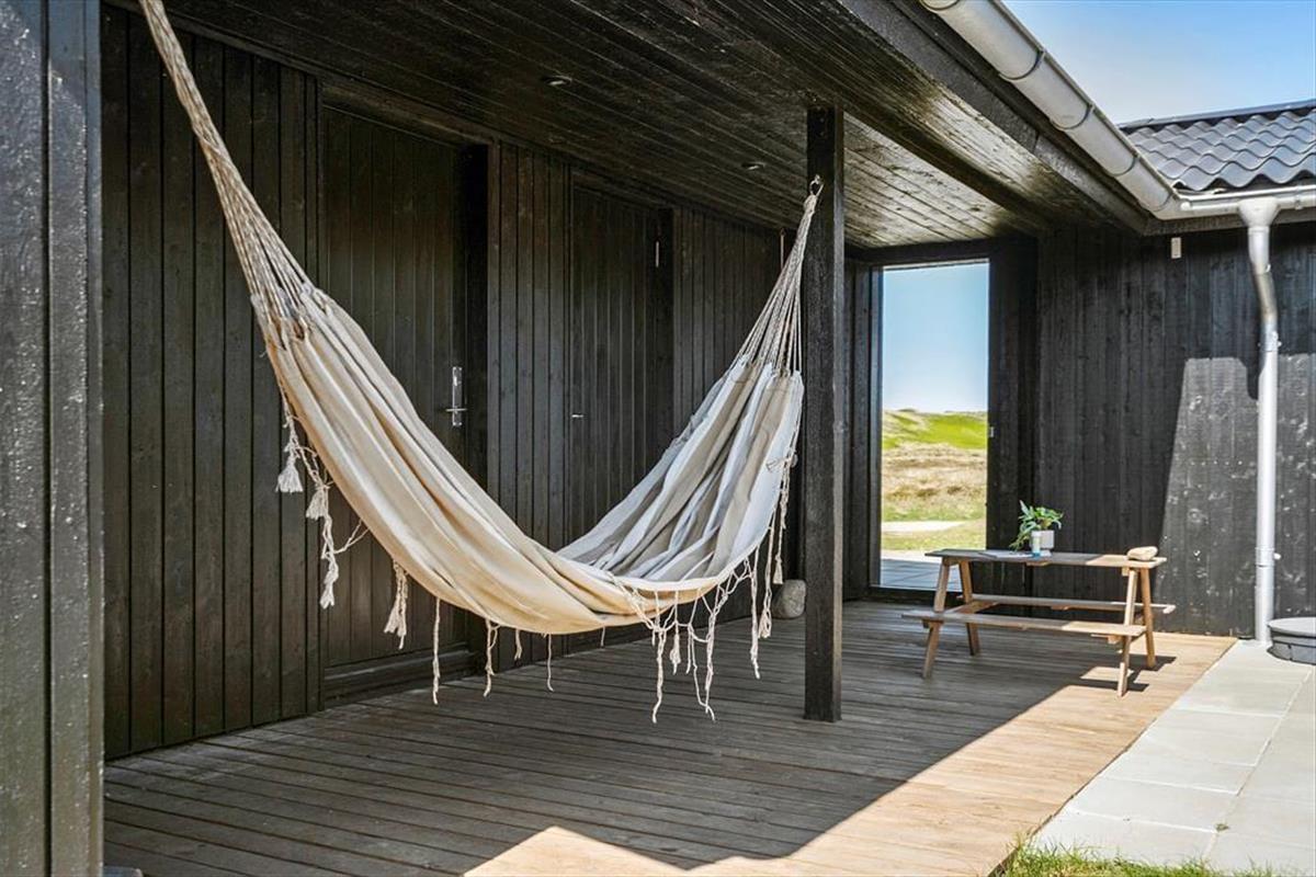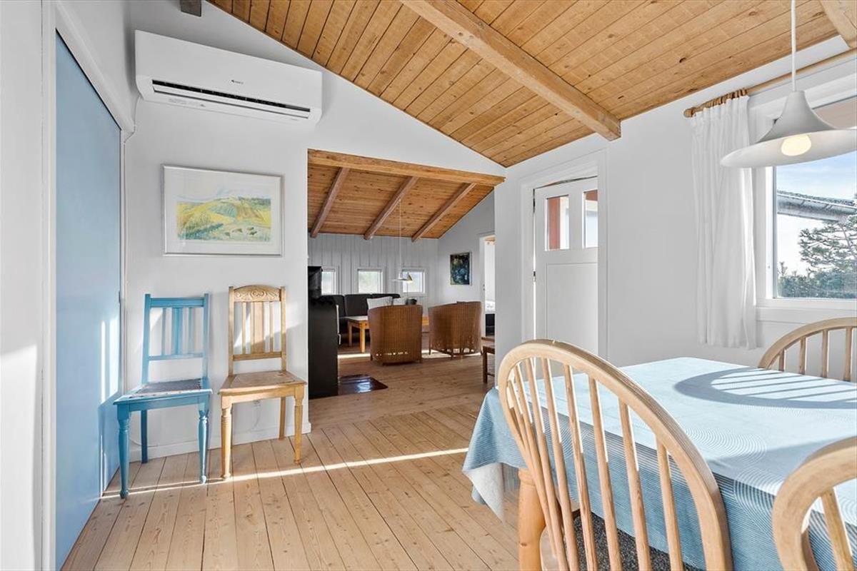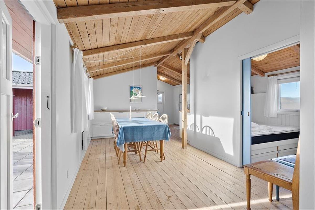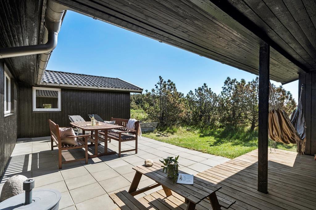 Das Grundstück wird durch unberührte, wildwachsende Dünenheide geprägt, wodurch es förmlich mit der umliegenden, reizvollen Natur verschmilzt. Wenige hundert Meter trennen Sie von der Dünenkette und vom langgestreckten Sandstrand, an dem Sie im Sommer wunderbar baden und während der anderen Jahreszeiten wohltuende Strandspaziergänge unternehmen können. Aargabs schöne Natur besticht mit zahlreichen guten Wanderpfaden und einem Fahrradweg, der sich von Nymindegab bis Søndervig durch ganz Holmsland Klit schlängelt. Am Ringkøbing Fjord genießen Sie weite Ausblicke und die milde, ruhige Fjordlandschaft. Fünf Minuten trennen Ihr Haus von Hvide Sande, wo Sie auf gute Surfspots und tolle Angelplätze an der großen Schleuse treffen. Der beliebte Fischereihafenort besticht zudem mit einer guten Auswahl an Geschäften und mehreren guten Lokalitäten.