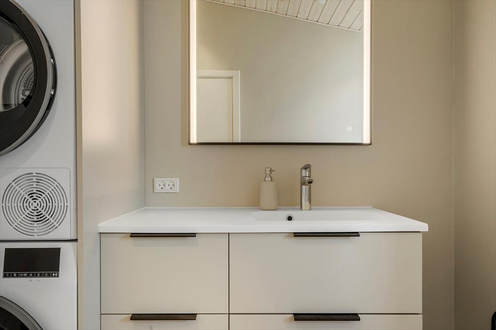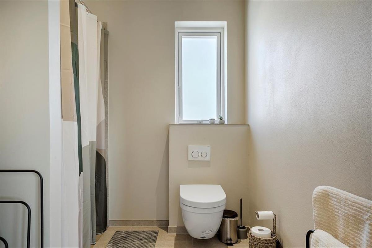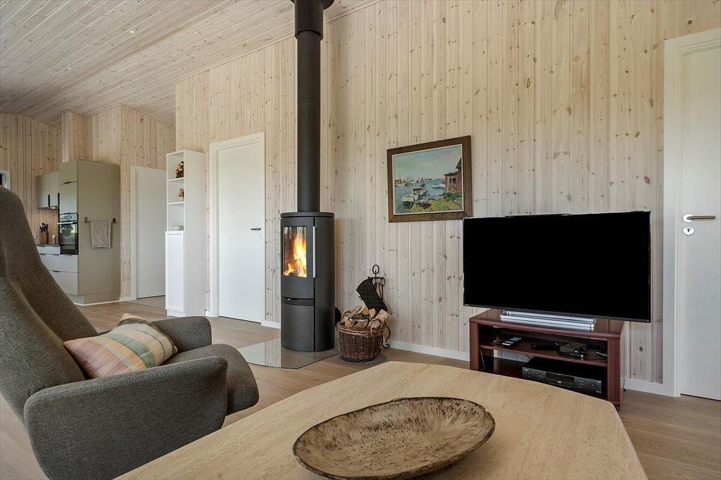 Im Süden steht dir eine schöne, teilweise überdachte Terrasse zur Verfügung, auf der du an Sommertagen mit blauem Himmel Mahlzeiten vom Grill in der Sonne servieren kannst. Und auf dem überdachten Teil hast du sowohl Schutz als auch Unterschlupf, wenn das Wetter von Westen her abkühlt. Das Gelände ist mit einer praktischen Rasenfläche angelegt. Das lädt die Jüngsten und alle jung gebliebenen zu Garten- und Ballspielen ein.