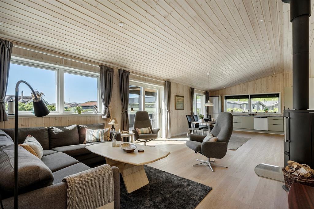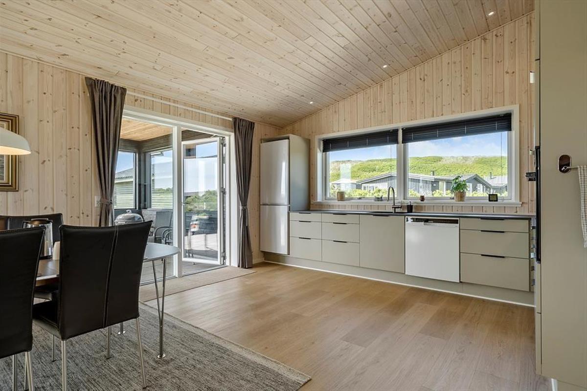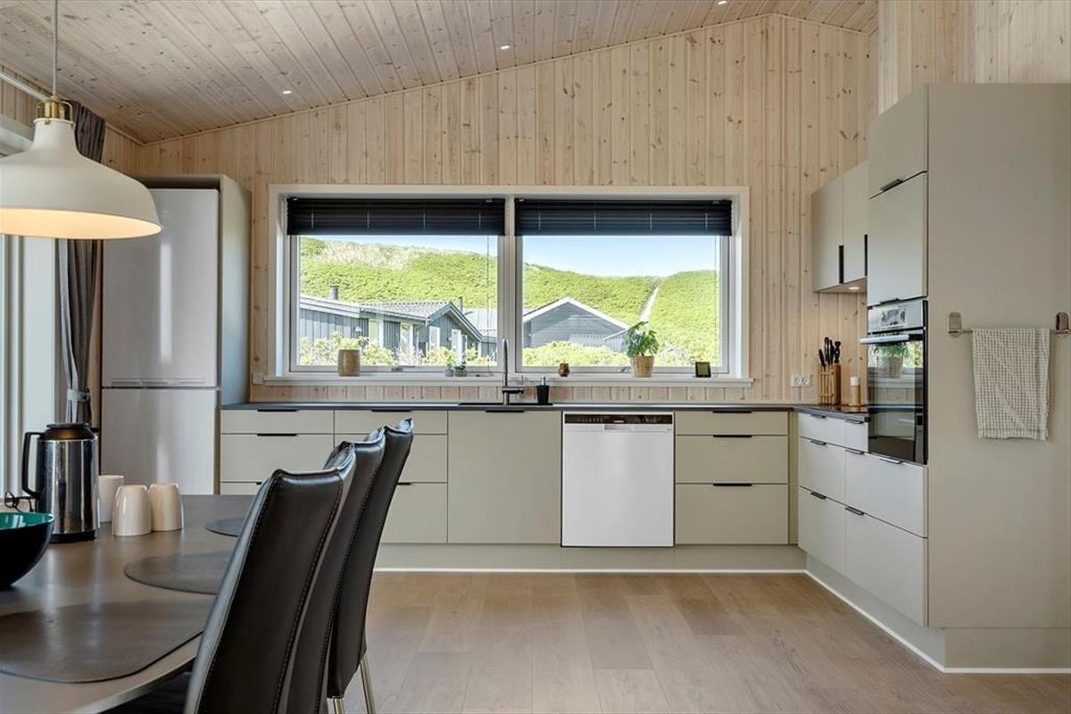 Mit den 200 Meter zum Strand brauchst du nur die Dünen durchqueren und schon bist du an den blauen Wellen der Nordsee. An Sommertagen ist ein Bad in dem salzigen Wasser erfrischend und wenn die Natur in der Nebensaison ihre Kraft zeigt, kannst du diese mit einer frischen Tour an der brausenden Wasserkante erleben. Das Ferienhaus liegt in Aargab zwischen der Nordsee und dem Ringkøbing Fjord, und die hügelige westjütländische Dünenheide lädt zu Wanderspaziergängen oder Fahrradausflügen ein. Für die Jüngsten gibt es viel Platz, alle können die Umgebung erkunden, und es ist richtig schön, einen Drachen am Strand steigen zu lassen. In Hvide Sande, nur fünf Autominuten von der Adresse entfernt, herrscht reges Treiben. Hier findest du Geschäfte, Cafés und gute Restaurants, aber auch Supermärkte für deinen Einkauf. Surfausrüstung oder Angelrute dabei? Den ganzen Tag kannst du am oder auf dem Wasser verbringen, denn in der Gegend gibt es viele Angelseen und Angelplätze an der Schleuse in Hvide Sande, und es gibt Surfspots sowohl am Fjord als auch am Meer.