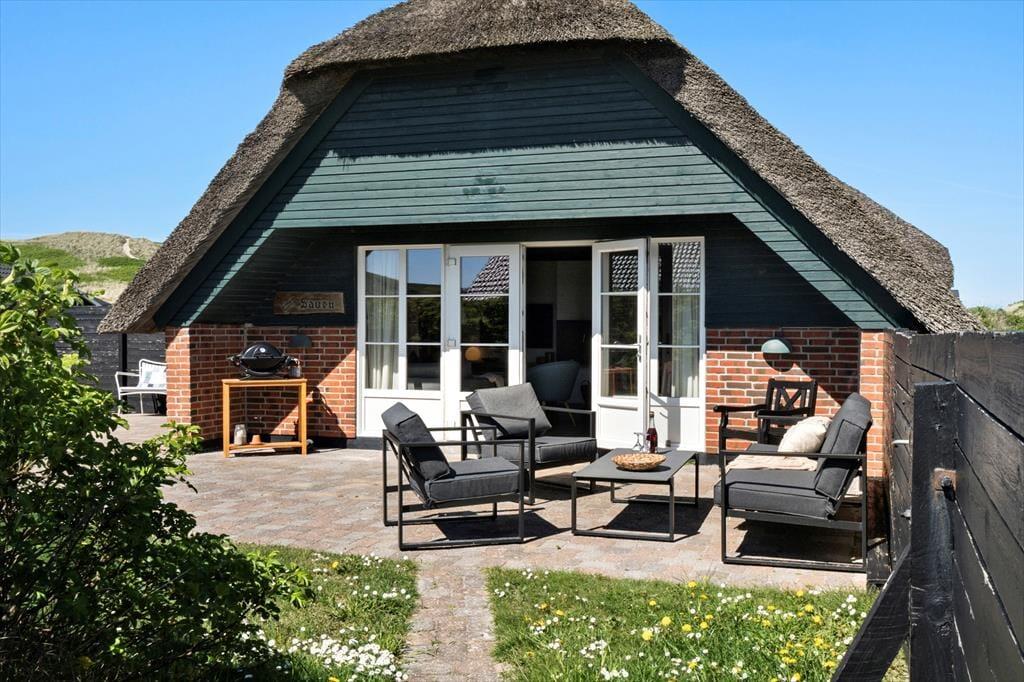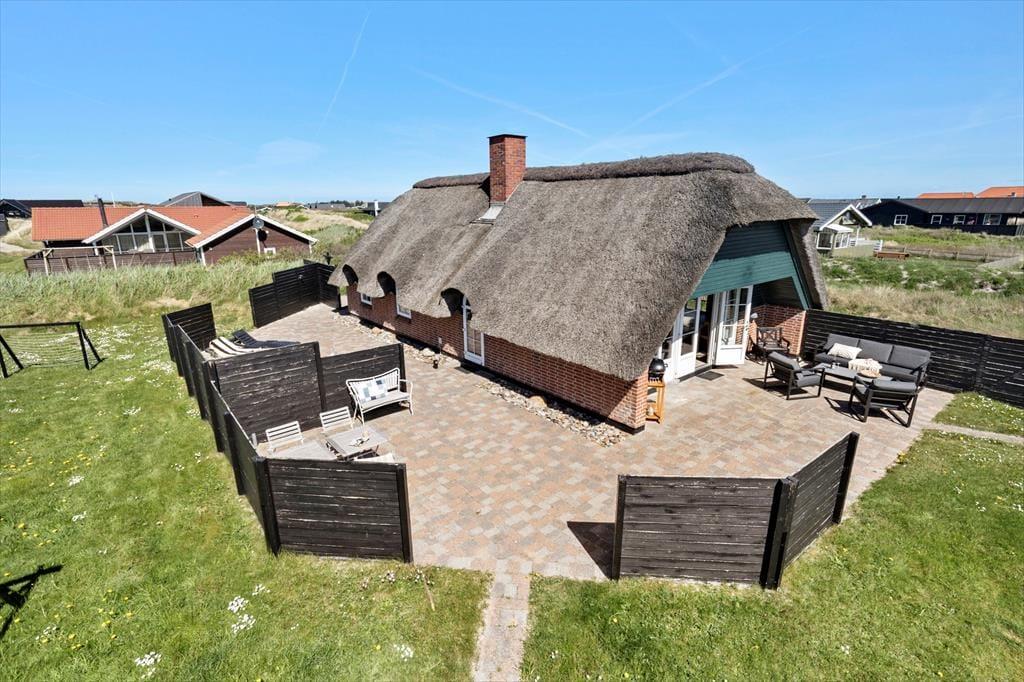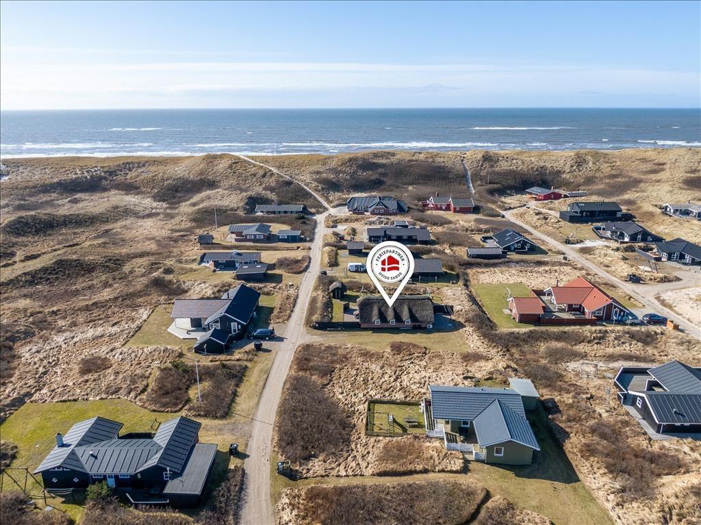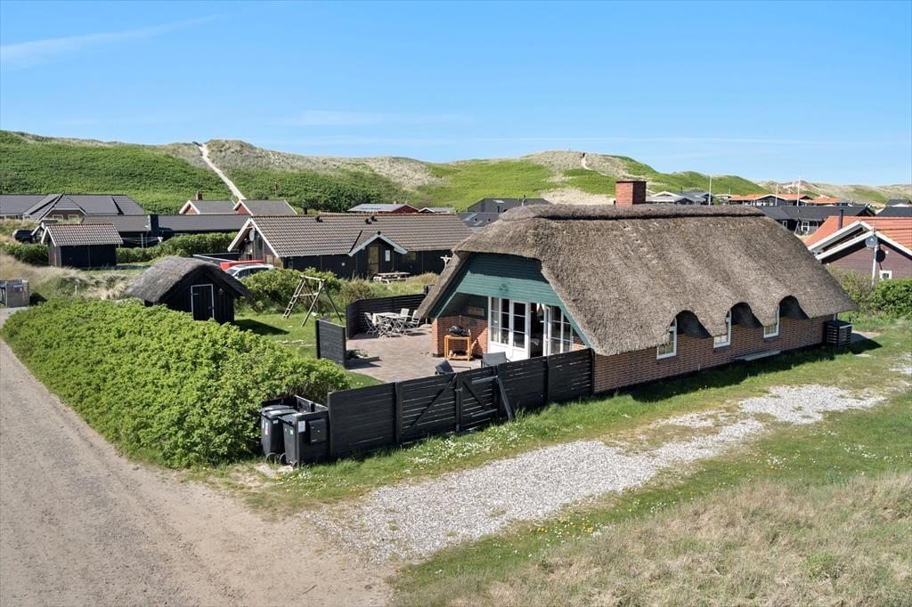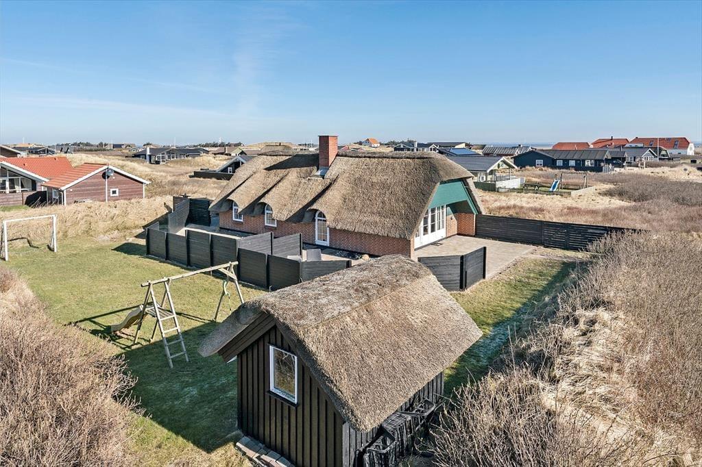 Dieses reetgedeckte Ferienhaus für sechs Personen eignet sich mit seiner Sandkiste und der Rasenfläche mit Platz zum Ballspielen sehr gut für Familien mit Kindern. Nur wenige Schritte trennen Sie von der Nordsee. Sie wohnen inmitten der reizvollen Natur Aargabs und des Ringkøbing Fjord.