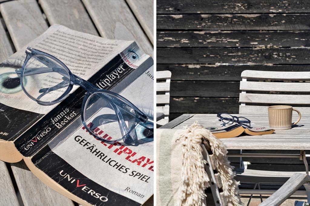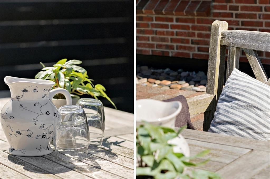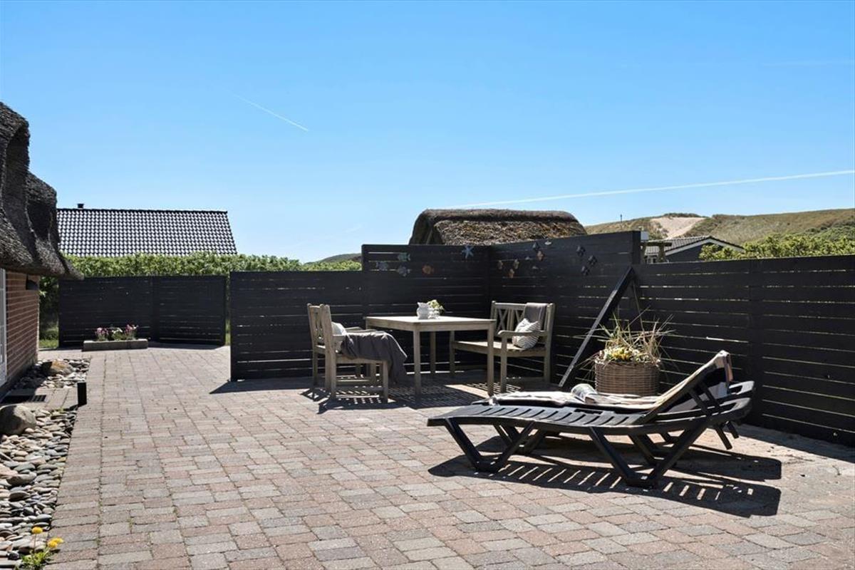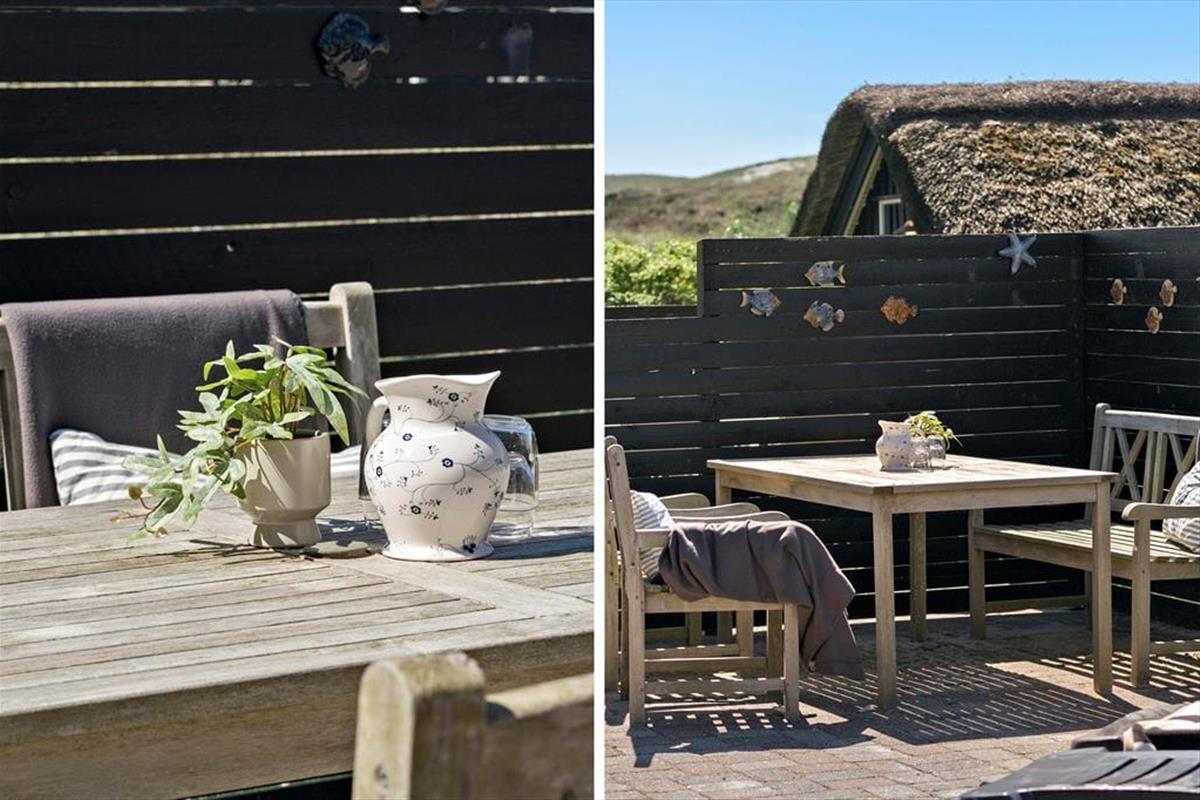 Das Ferienhaus ist im Süden, Westen und Norden von Terrassen mit geschützten Zäunen umgeben, auf denen Sie die sonnigen Sommertage mit köstlichen Mahlzeiten in der Sonne verbringen können. (Grillen darf nur mit aufgestellten Gasgrills und wegen des Reetdaches kein offenes Feuer) Auch für die Kleinsten der Familie gibt es hier viel Platz zum Spielen und Ballspielen, denn das Gelände ist mit einer Rasenschaukel angelegt und Fußballtor.