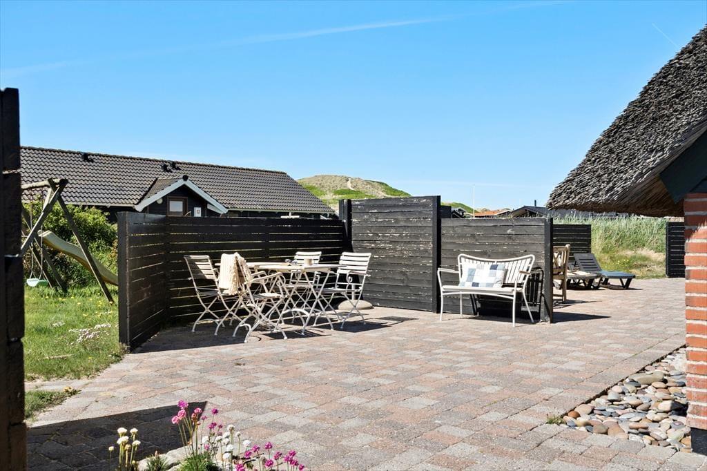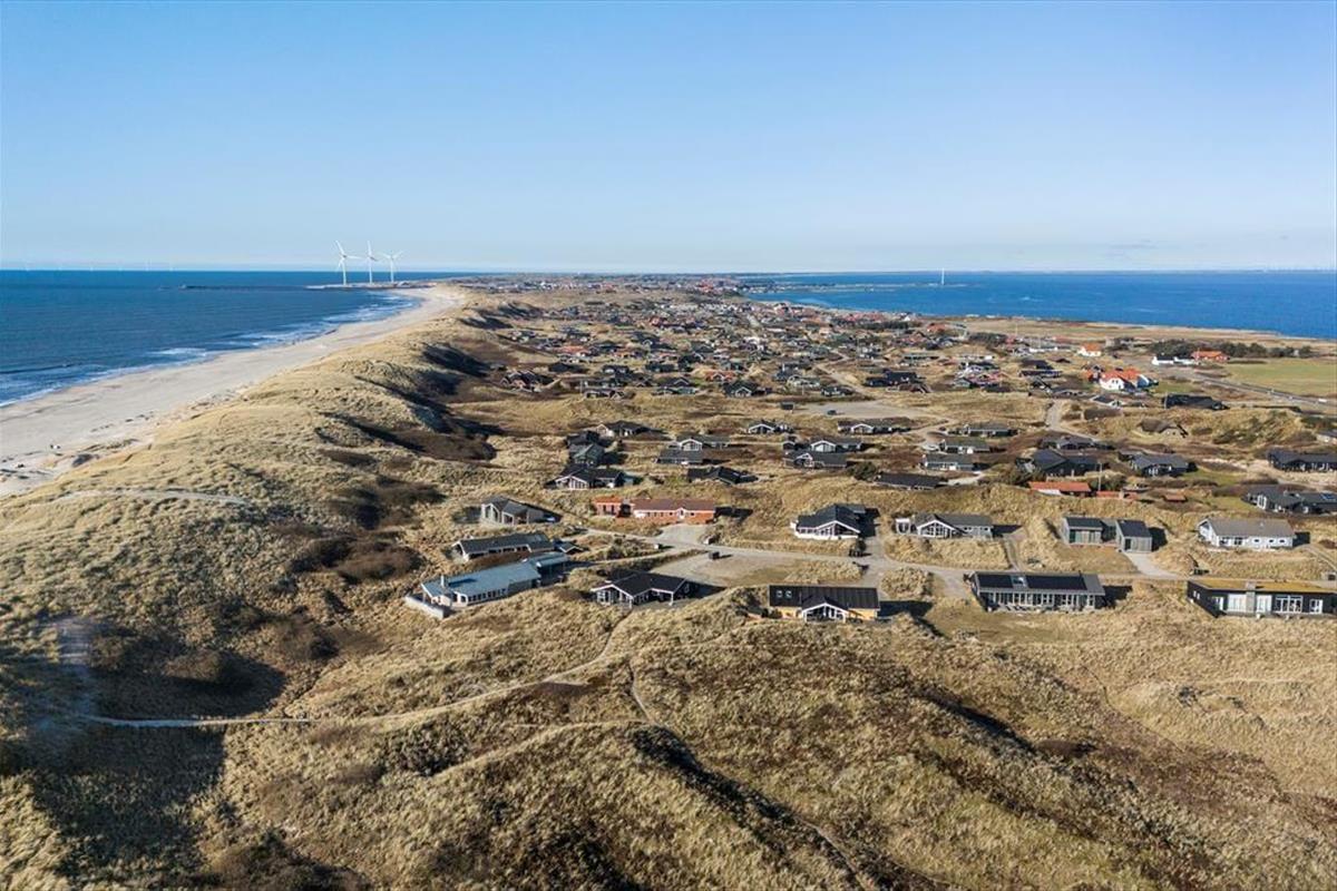 Auf den Terrassen können Sie sich allabendlich niederlassen und dabei zuschauen, wie die Sonne den Himmel in orangefarbene Töne taucht und langsam hinter den rund 200 Meter entfernten Dünen versinkt. Noch beeindruckender sind die Sonnenuntergänge, wenn Sie sie von einem der Dünenwipfel aus bewundern. Dank der kurzen Entfernung zur Nordsee werden Sie sich gern und oft am Strand aufhalten. Alternativ laden zahllose Wanderpfade und ein Fahrradweg, der von Süd nach Nord durch die wunderschöne, hügelige Dünenlandschaft Holmsland Klits führt, zu Spaziergängen und Radtouren ein. Die Umgebung von Hvide Sande ist ein wahres Mekka für Wassersportler und Angler. Surfer treffen an Meer und Fjord auf tolle Spots. Angler dürfen sich auf mehrere Angelseen und die beliebte Schleuse in Hvide Sande freuen, die Tag für Tag zahlreiche Angler anzieht. Der beliebte Hafenort, der nach rund fünf Minuten Fahrtzeit erreicht ist, überzeugt mit schönen Geschäften, mehreren Einkaufsmöglichkeiten und guten Lokalitäten.