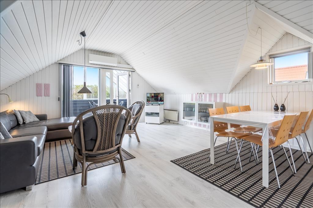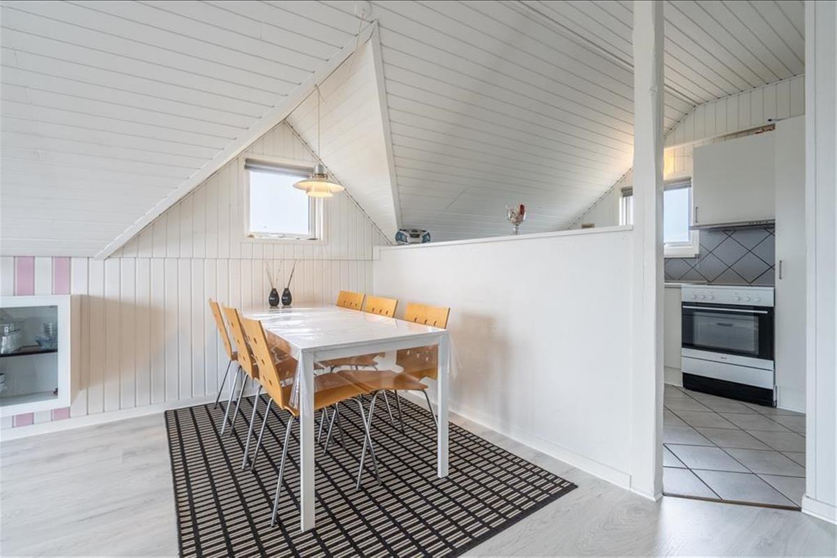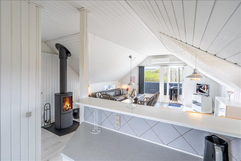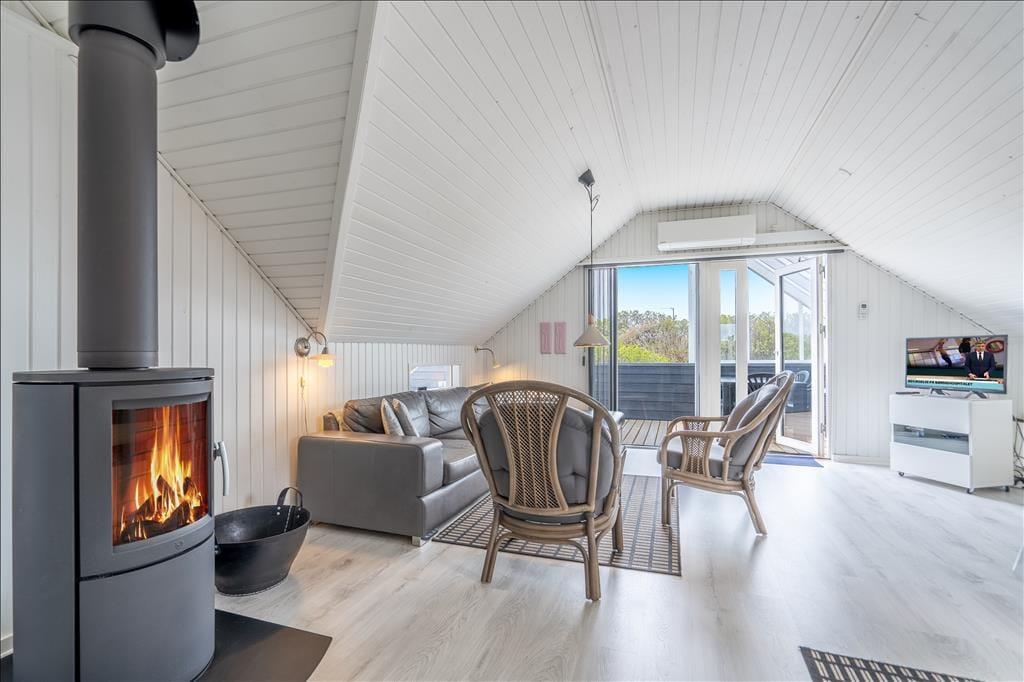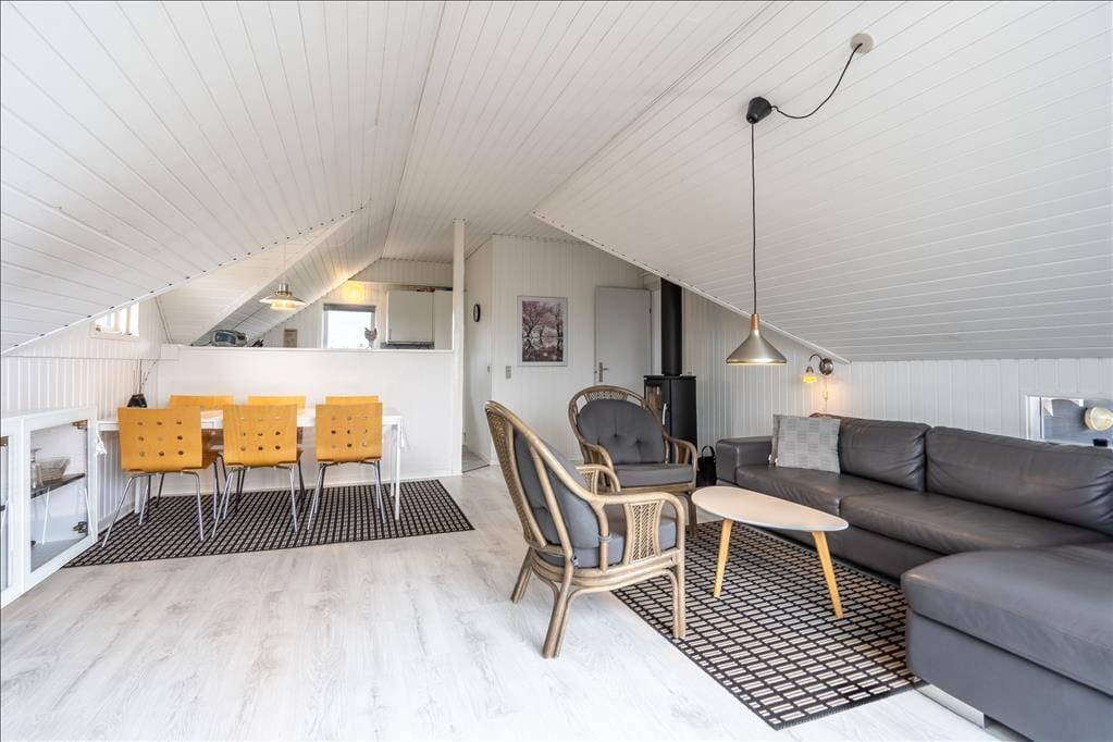 Dieses klassisch eingerichtete Ferienhaus mit hellen, schrägen Decken ist sehr gemütlich. Besonders, wenn im Ofen ein Feuer lodert und Sie es sich in der Sofaecke mit einem Buch oder Film so richtig gemütlich machen.