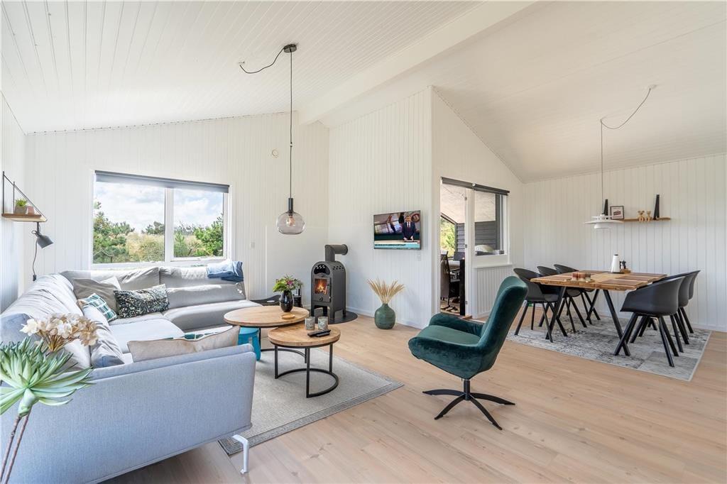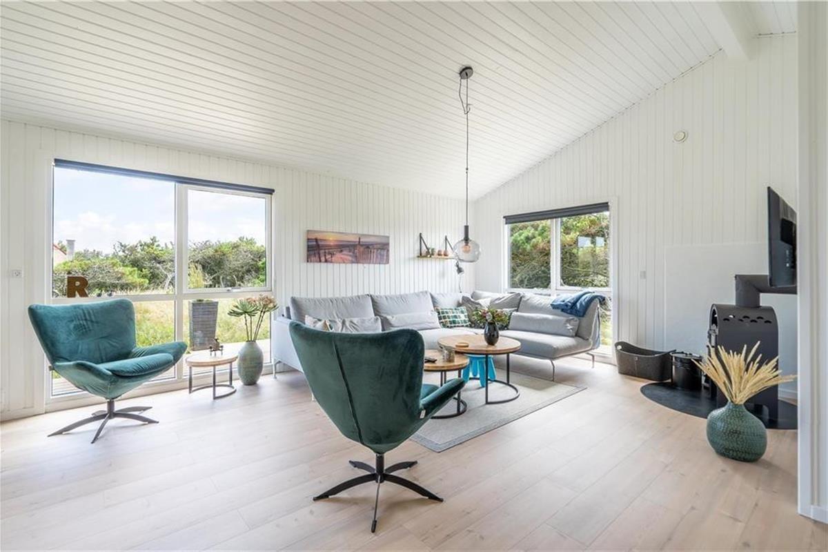 Inmitten der wunderschönen Landschaft zwischen Nordsee und Ringkøbing Fjord erwartet Sie dieses große, toll modernisierte Ferienhaus für sechs Personen. Zahlreiche Sonnenstunden und den Blick auf den Fjord genießen Sie auf der gen Osten weisenden Terrasse. Im Hausinneren laden ein stimmungsvoller Wohnraum und der Whirlpool im Badezimmer zu erholsamen, entspannten Momenten ein.