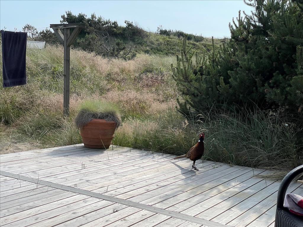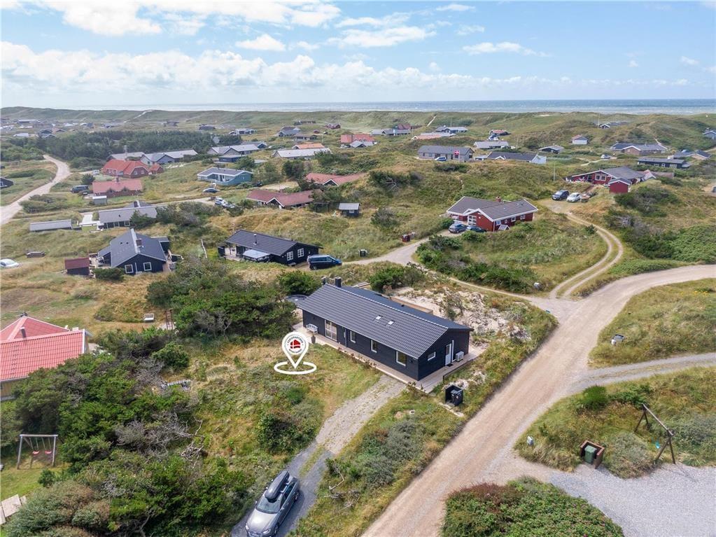 Der Weg Tingodden schlängelt sich durch die reizvolle Dünenlandschaft zwischen Nordsee und Ringkøbing Fjord. Ihr hochgelegenes Grundstück besticht mit einem wunderbaren Blick über die schöne Natur ringsum. Nach 350 Metern erreichen Sie den Aargab Strand. Surfer, SUP-Boarder und andere Wassersportler wird es an den ein wenig nördlich am Fjordufer gelegenen Surfspot Westwind Syd ziehen. Die Dünenheide lädt zu schönen Spaziergängen und Radtouren ein. Im nahegelegenen Fischereihafenort Hvide Sande treffen Sie auf mehrere Supermärkte, interessante Einzelhandelsgeschäfte, gute Fischhändler und eine breite Auswahl an schönen Lokalitäten.