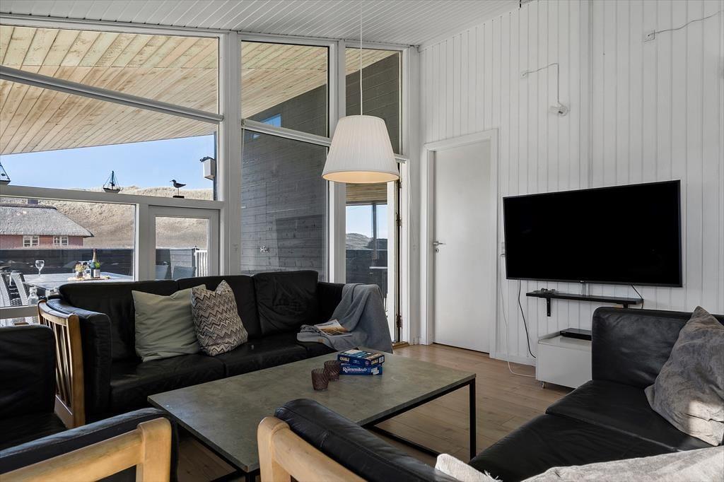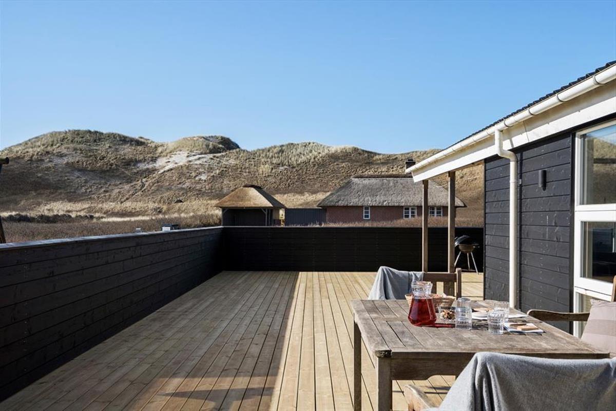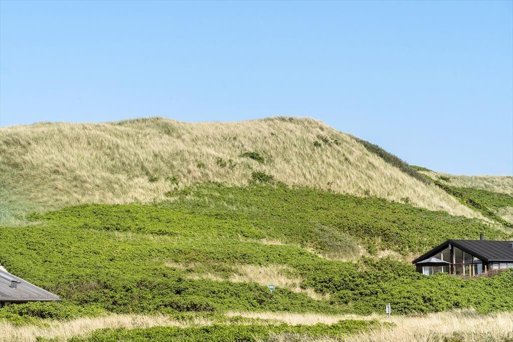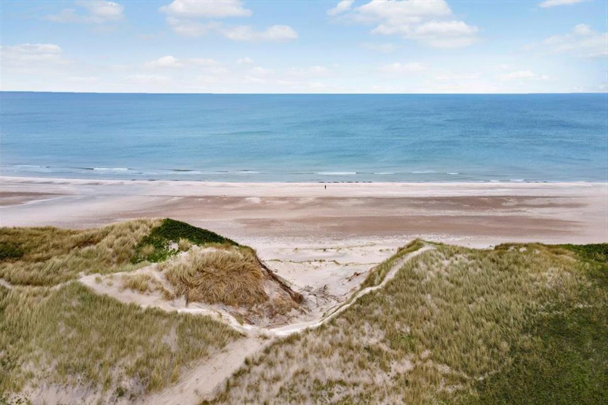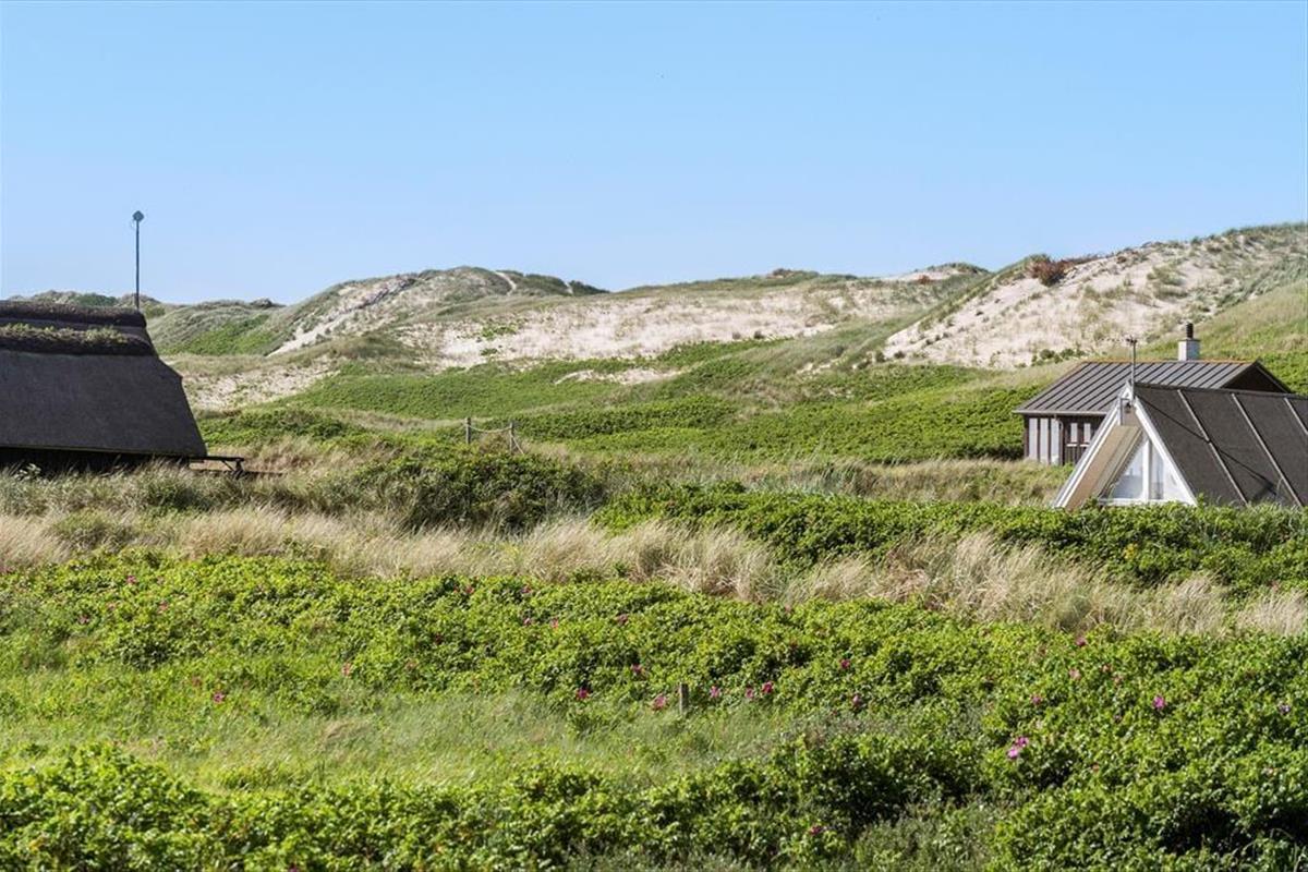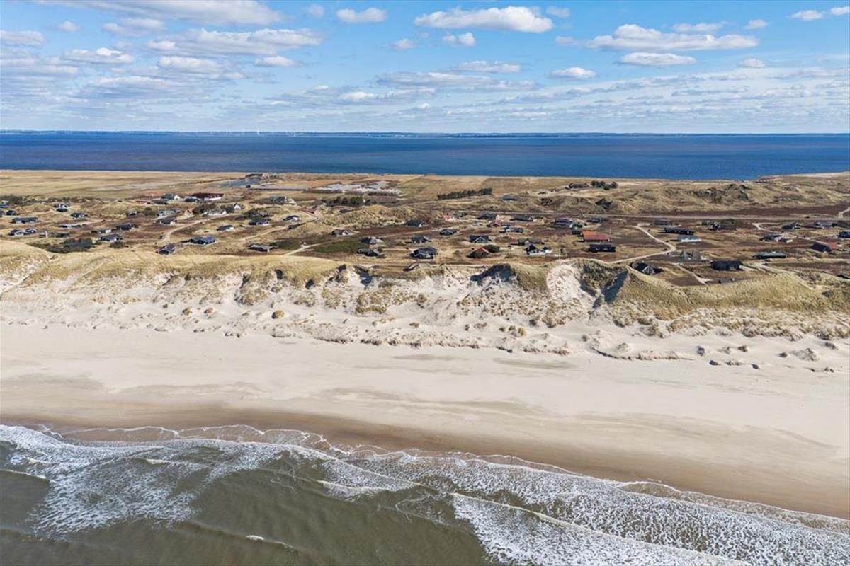 Wohnraum und Terrasse verwöhnen mit einem reizvollen Ausblick auf die äußerste Dünenreihe Aargabs. Der Ausblick erinnert Sie zu jeder Zeit daran, wie angenehm nah Sie am Strand wohnen. Es dauert nur wenige Minuten, bis Sie oben auf den Dünen stehen und weit über die Nordsee blicken. Am Strand können Sie nach Herzenslust baden, mit den Kindern im warmen Sand spielen, Ihren Drachen steigen lassen und lange Spaziergänge unternehmen. Holmsland Klit ist eine schmale Nehrung zwischen Nordsee und Ringkøbing Fjord. Das Wasser ist zu beiden Seiten schnell erreicht. Daher gilt die ausgesprochen schöne Gegend als Eldorado für Angler, Windsurfer, SUP-Boarder und andere Wassersportler. Bei Radfahrern und Wanderern ist die Gegend ebenfalls sehr beliebt. Dank der Nähe zum interessanten Fischereihafenort Hvide Sande, können Sie Ihre Urlaubstage problemlos mit einem Restaurantbesuch oder einem großen Eis am Hafen ausklingen lassen.