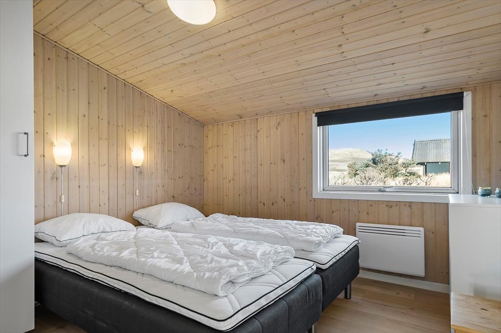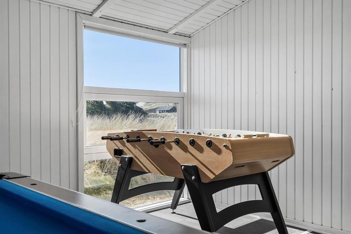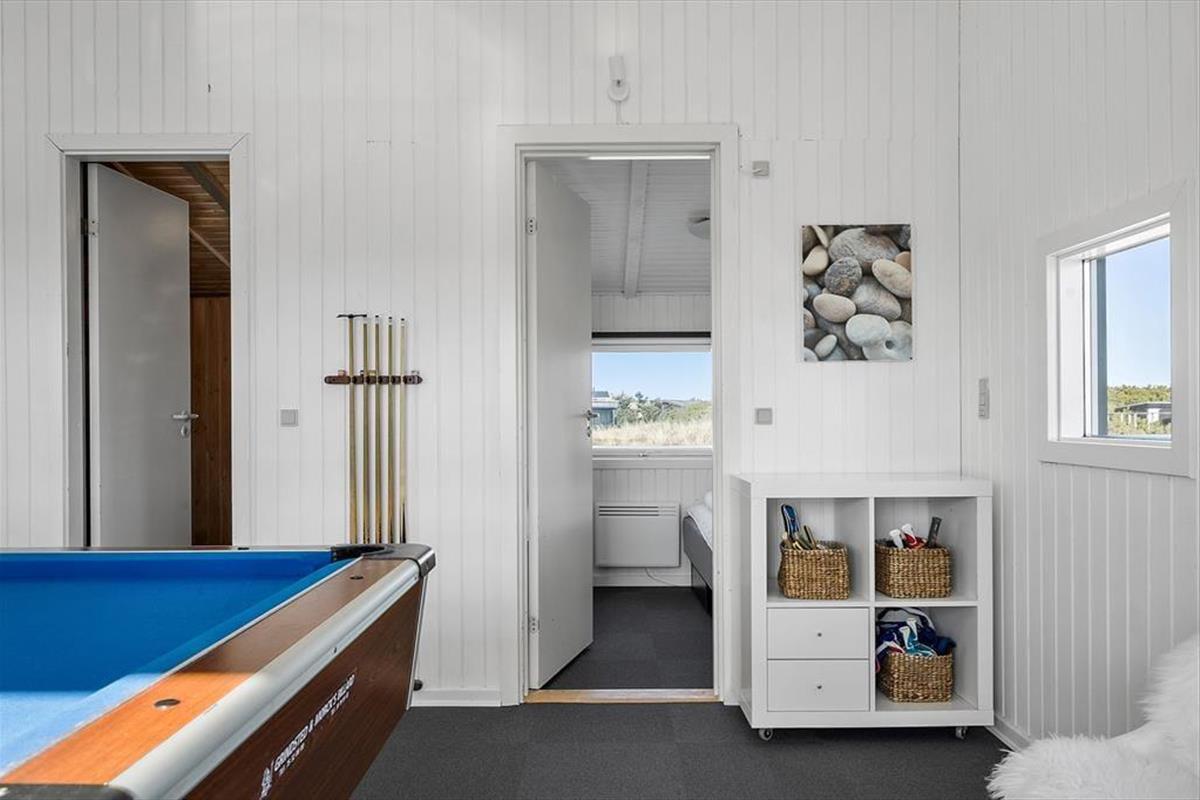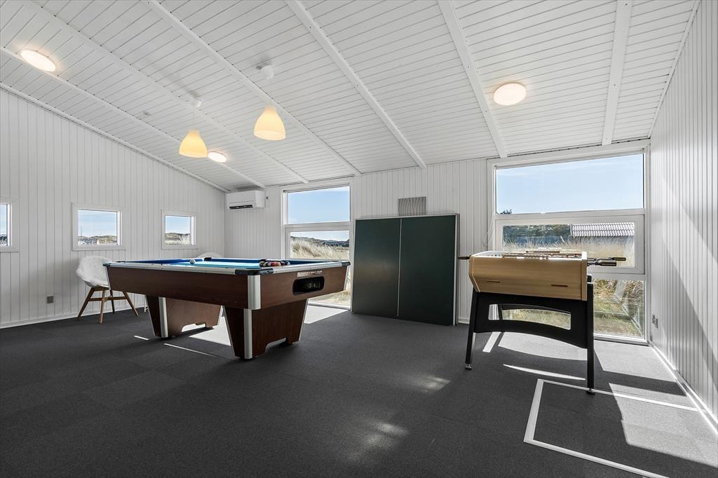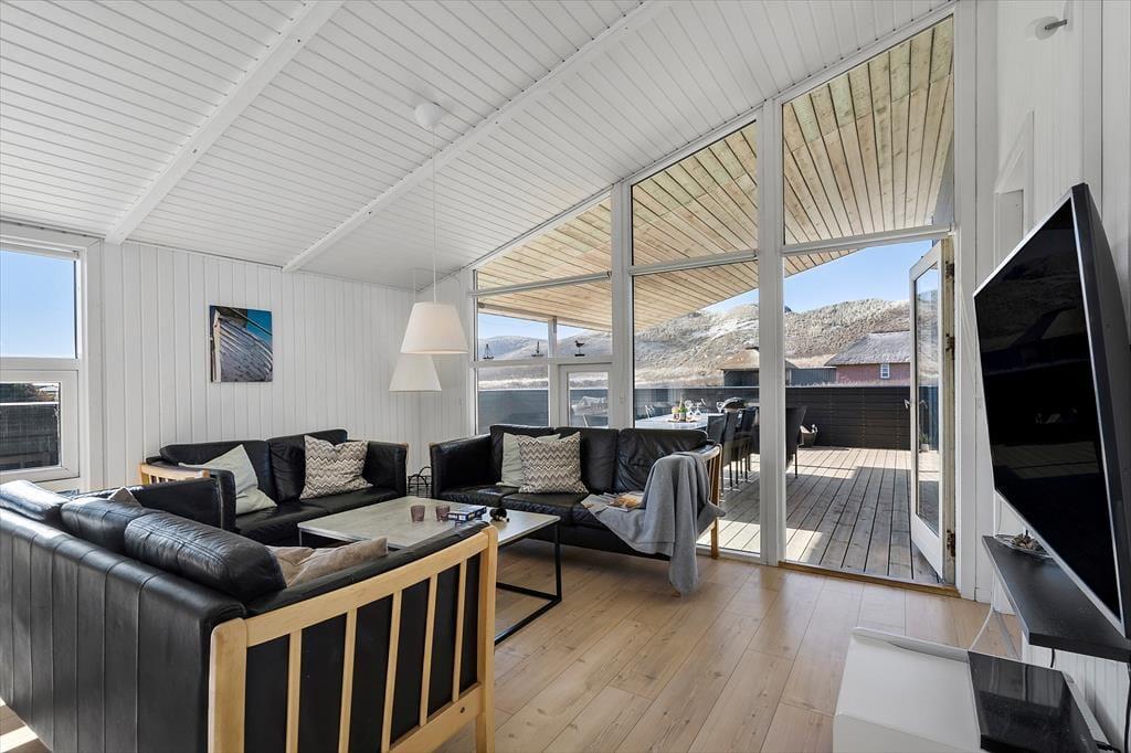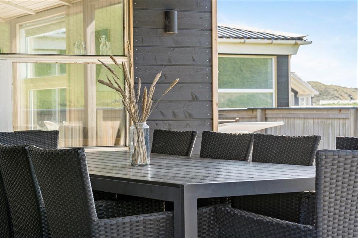 Wohnraum und Terrasse verwöhnen mit einem reizvollen Ausblick auf die äußerste Dünenreihe Aargabs. Der Ausblick erinnert Sie zu jeder Zeit daran, wie angenehm nah Sie am Strand wohnen. Es dauert nur wenige Minuten, bis Sie oben auf den Dünen stehen und weit über die Nordsee blicken. Am Strand können Sie nach Herzenslust baden, mit den Kindern im warmen Sand spielen, Ihren Drachen steigen lassen und lange Spaziergänge unternehmen. Holmsland Klit ist eine schmale Nehrung zwischen Nordsee und Ringkøbing Fjord. Das Wasser ist zu beiden Seiten schnell erreicht. Daher gilt die ausgesprochen schöne Gegend als Eldorado für Angler, Windsurfer, SUP-Boarder und andere Wassersportler. Bei Radfahrern und Wanderern ist die Gegend ebenfalls sehr beliebt. Dank der Nähe zum interessanten Fischereihafenort Hvide Sande, können Sie Ihre Urlaubstage problemlos mit einem Restaurantbesuch oder einem großen Eis am Hafen ausklingen lassen.