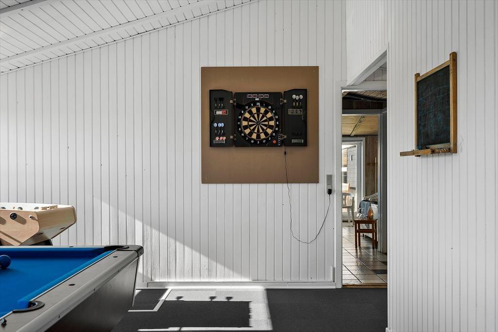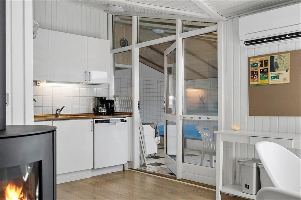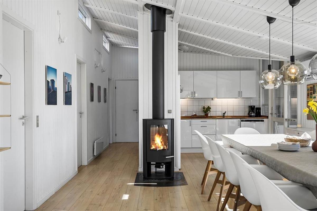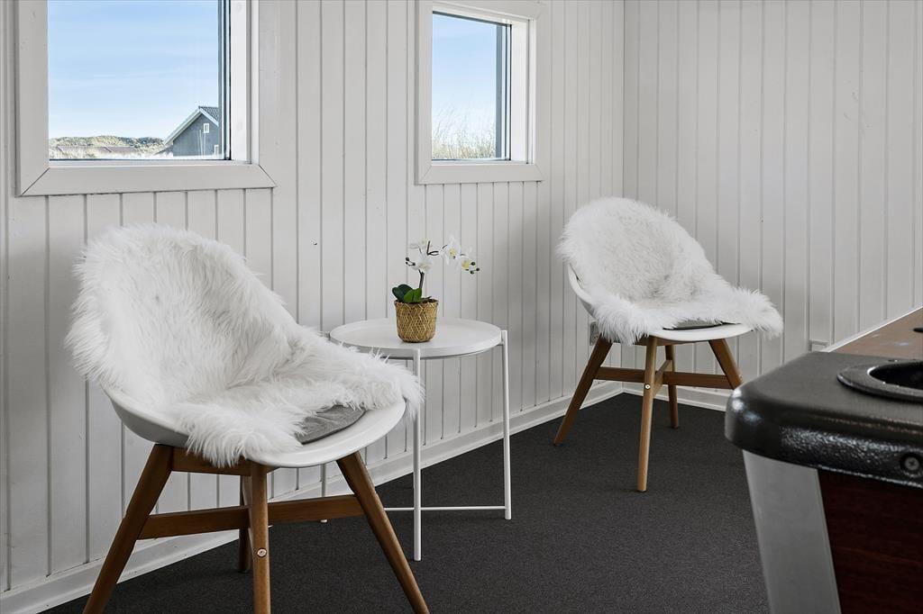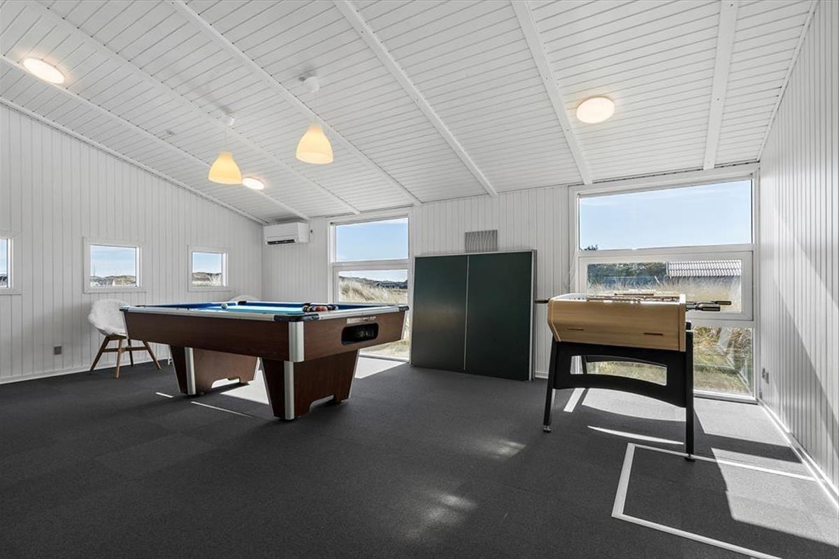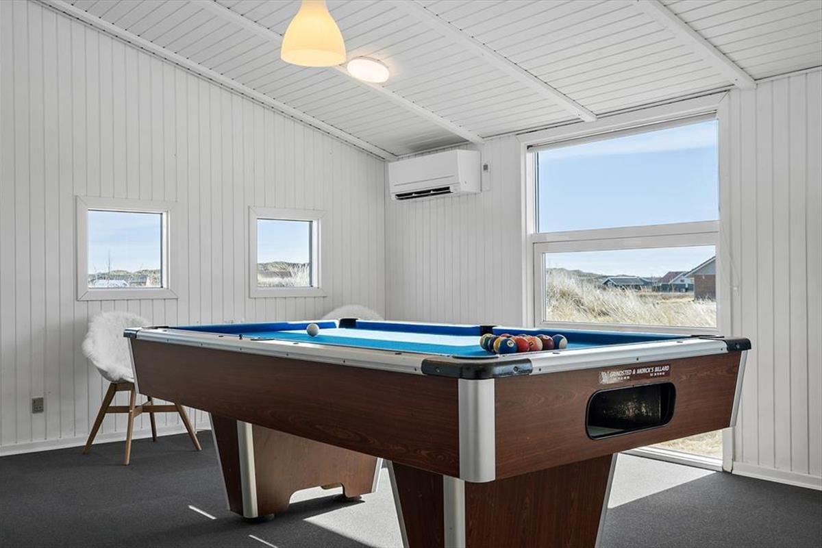 Wohnraum und Terrasse verwöhnen mit einem reizvollen Ausblick auf die äußerste Dünenreihe Aargabs. Der Ausblick erinnert Sie zu jeder Zeit daran, wie angenehm nah Sie am Strand wohnen. Es dauert nur wenige Minuten, bis Sie oben auf den Dünen stehen und weit über die Nordsee blicken. Am Strand können Sie nach Herzenslust baden, mit den Kindern im warmen Sand spielen, Ihren Drachen steigen lassen und lange Spaziergänge unternehmen. Holmsland Klit ist eine schmale Nehrung zwischen Nordsee und Ringkøbing Fjord. Das Wasser ist zu beiden Seiten schnell erreicht. Daher gilt die ausgesprochen schöne Gegend als Eldorado für Angler, Windsurfer, SUP-Boarder und andere Wassersportler. Bei Radfahrern und Wanderern ist die Gegend ebenfalls sehr beliebt. Dank der Nähe zum interessanten Fischereihafenort Hvide Sande, können Sie Ihre Urlaubstage problemlos mit einem Restaurantbesuch oder einem großen Eis am Hafen ausklingen lassen.