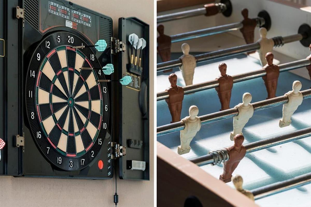 Mit seiner guten Raumaufteilung, die unter anderem sechs Schlafzimmer und zwei Badezimmer umfasst, bietet Ihnen dieses Haus einen schönen Rahmen für gelungene Urlaubstage. Das eine Badezimmer schließt an den Poolbereich, in dem Sie sich im Whirlpool entspannen und im 21 m² großen Pool vergnügen können. Der Poolbereich verwöhnt zusätzlich mit einer großen Sauna, die Ihrem Körper nach einem langen Strandspaziergang neue Energie verleiht. Spaß und Unterhaltung garantieren die Tischtennisplatte und der Tischkicker im Aktivitätsraum. Gemütlich geht es im Wohnraum zu. Dieser überzeugt mit einem Kaminofen, mit einem Flachbild-TV und einer offen integrierten Küche - ein perfekter Raum für gemeinsame Mahlzeiten, gemütliche Fernsehabende und gesellige Runden.