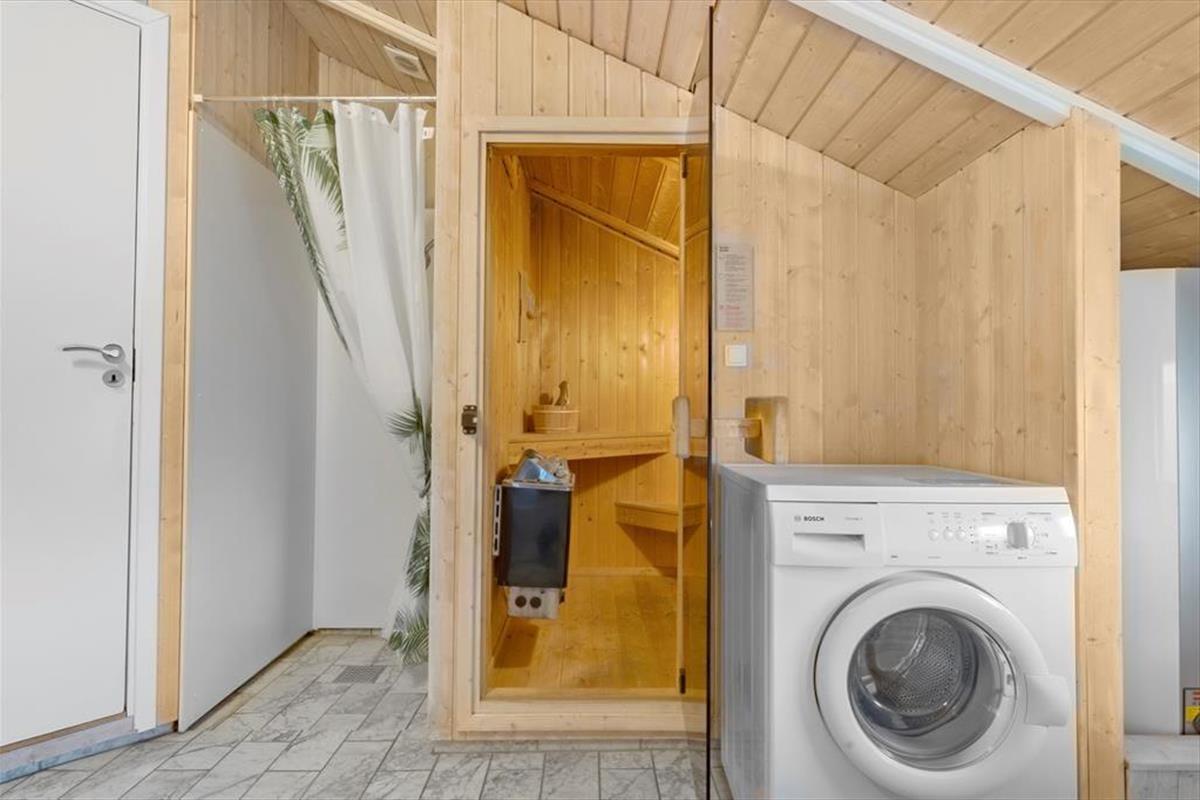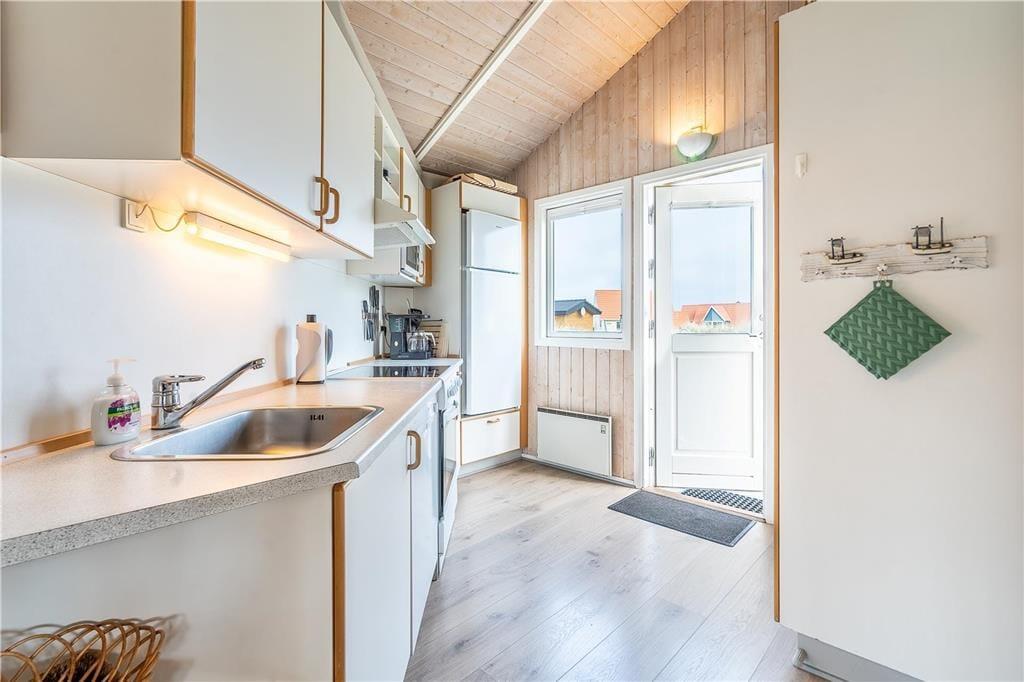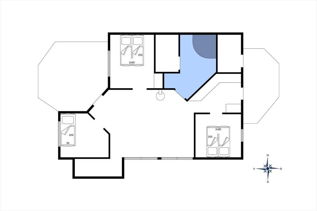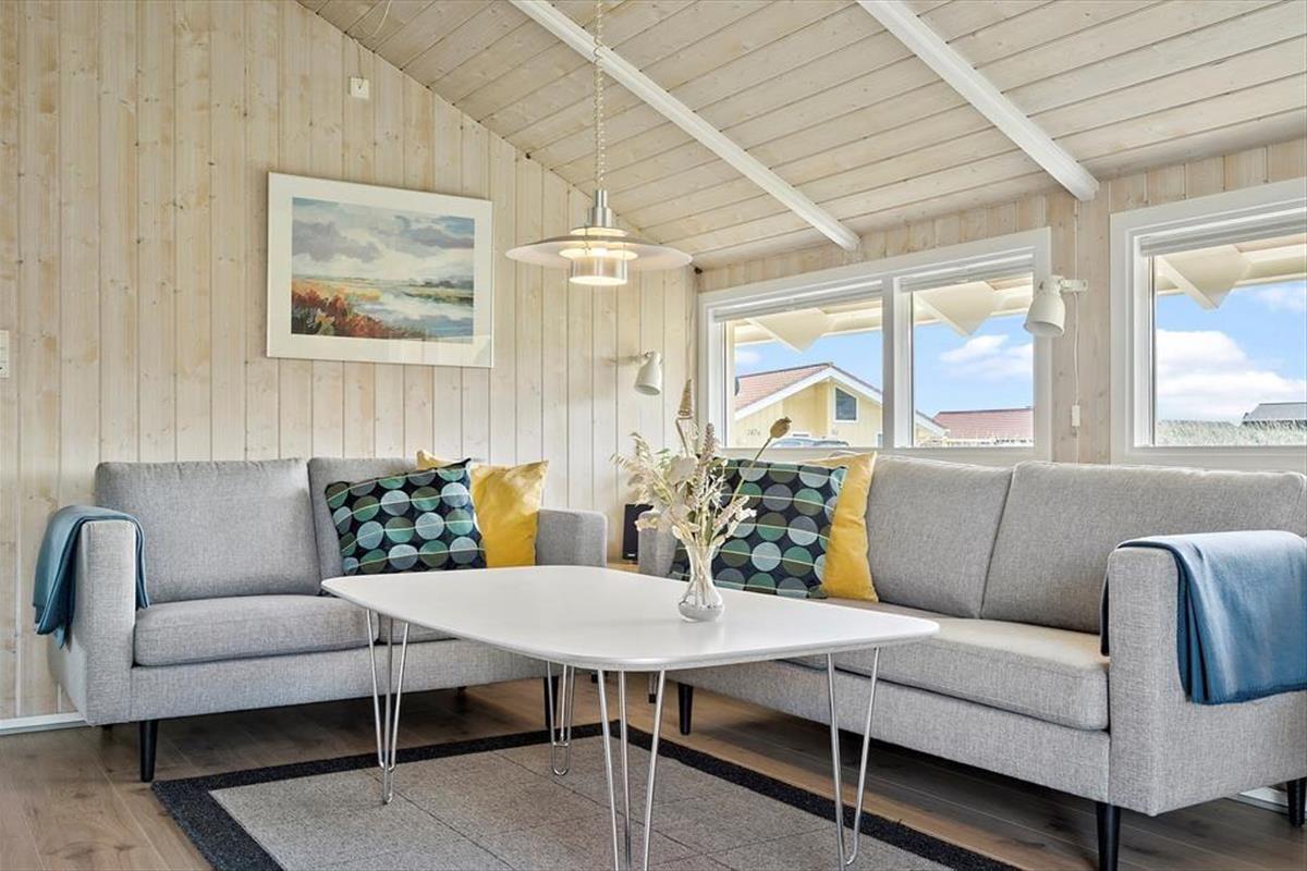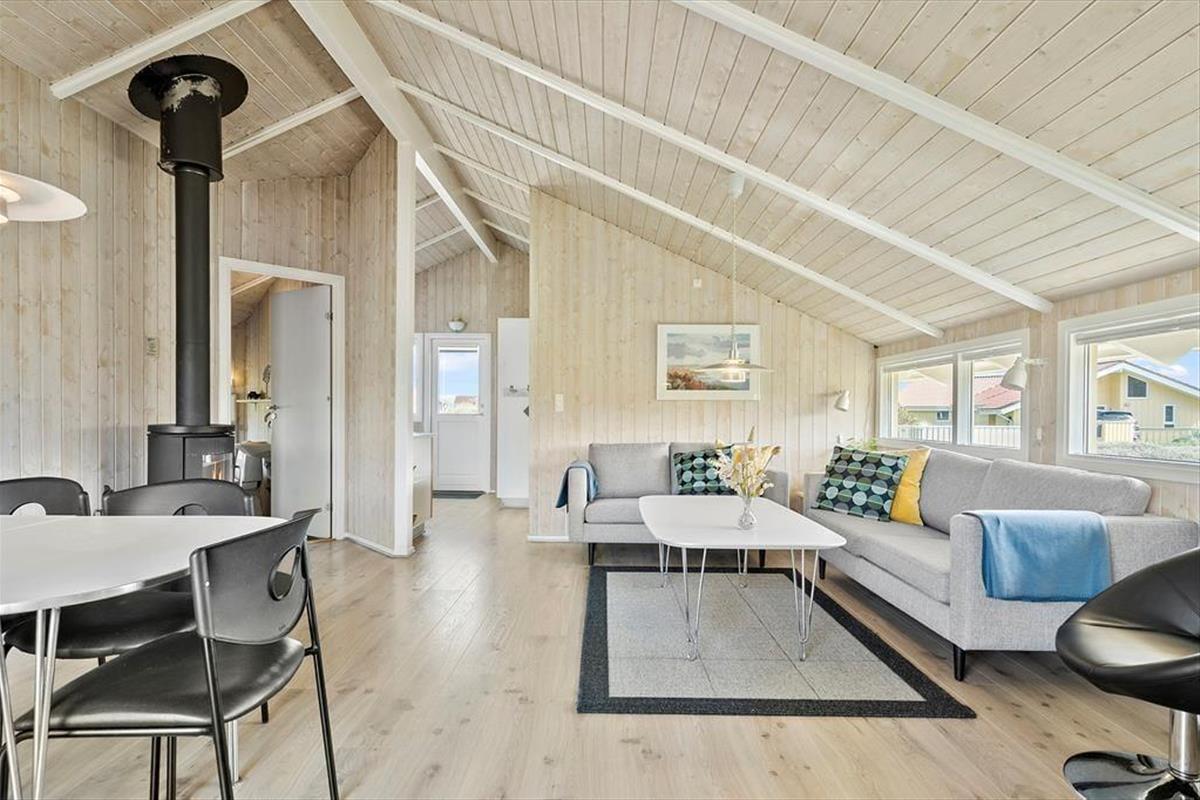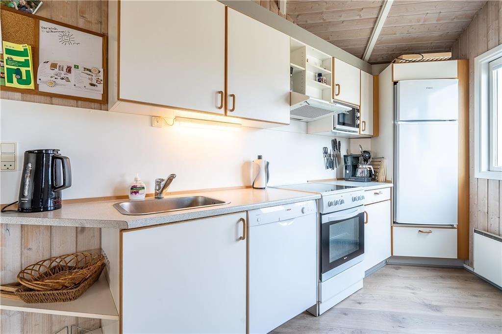 Das 74 m² große Ferienhaus bietet eine gelungene Raumaufteilung für fünf Personen. Es beinhaltet drei Schlafzimmer, ein Badezimmer, einen Wohnraum und eine Küche. Der Wohnraum und die Küche bilden eine offene Einheit. Hier genießen Sie das Beisammensein mit Ihren Lieben selbst während der Zubereitung der Mahlzeiten. Mitten im Raum befindet sich ein Kaminofen, und in der einen Ecke lädt eine Schlafnische zu einem Mittagsschläfchen oder einer ruhigen Lesestunde ein. Beste Erholung garantieren die Sauna und der Whirlpool im Badezimmer. Nach einem langen Urlaubstag an der Westküste gibt es wohl nichts Schöneres, als sich in der Sauna und im warmen Wasser zu entspannen und die Seele baumeln zu lassen.