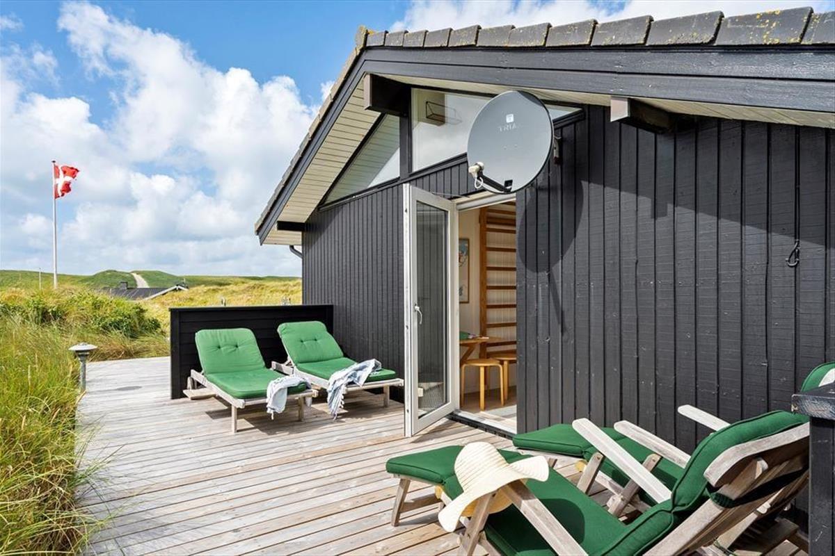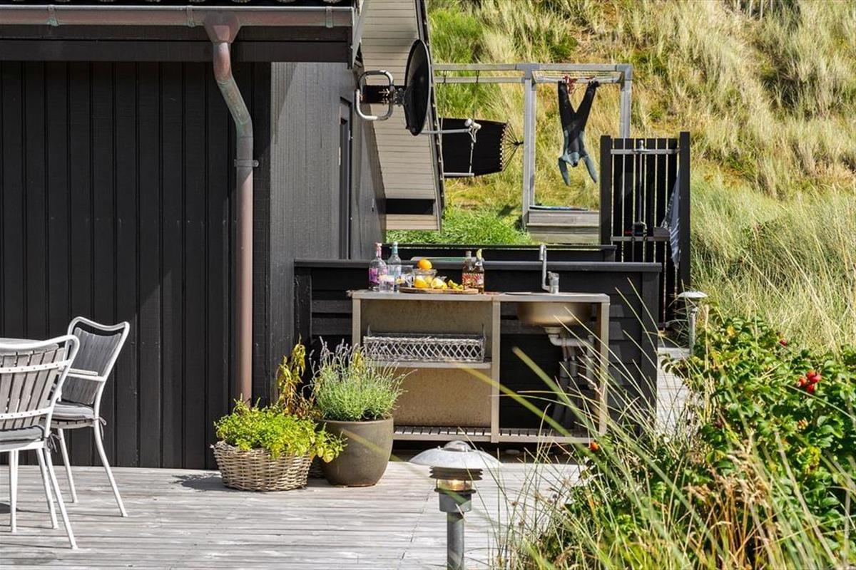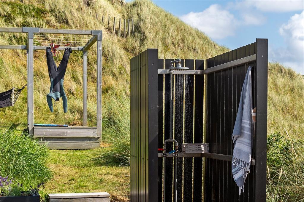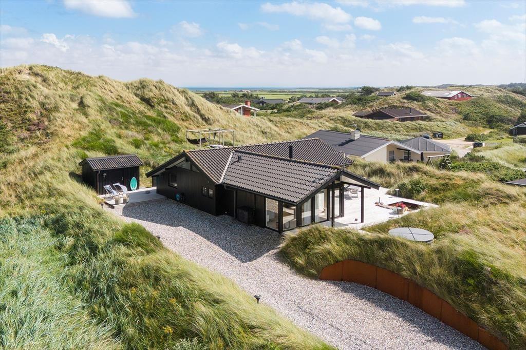 Das Haus ist wunderschön in den Dünen gelegen. Man fühlt sich der Natur ganz nahe, auch wenn man im stilvollen Wohnzimmer entspannt oder in der offenen Küche Brötchen backt und Abendessen zubereitet. Sie werden sicher auch bemerken, dass das Licht so nahe an der Küste etwas ganz Besonderes ist, und durch die großen Wohnzimmerfenster des Hauses hat die Sonne reichlich Gelegenheit, ins Innere zu blicken. Der gesamte Innenbereich ist hell – nicht nur im Wohnbereich, sondern auch in den drei einladenden Schlafzimmern sowie im Gäste-WC und Badezimmer. Letzteres verfügt außerdem sowohl über einen Whirlpool als auch über eine Sauna, sodass der Urlaub auf Wunsch zu einem echten Wellness-Aufenthalt werden kann.